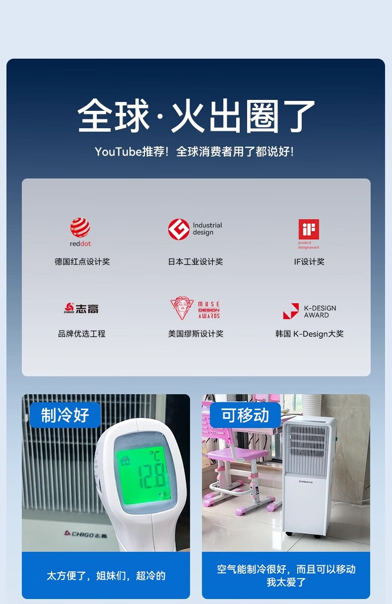 CHIGO sales TOP1 1 second quick cooling mobile air conditioner single cooling movable air conditioning and refrigeration all-in-one machine without outdoor unit kitchen indoor no exhaust duct vertical small air conditioner small 1 horse single cooling top 500 genuine