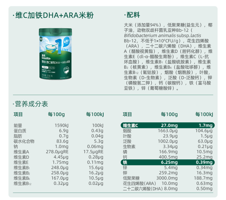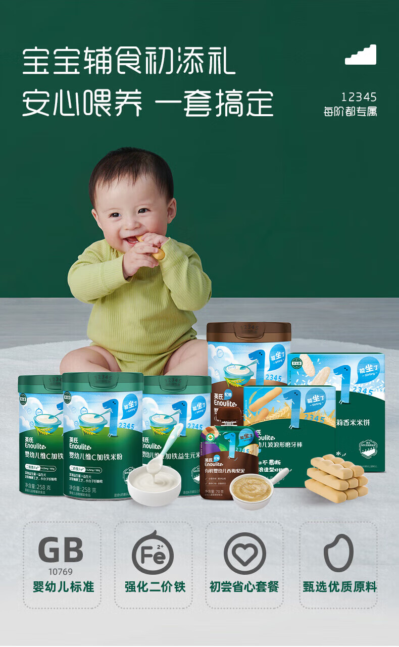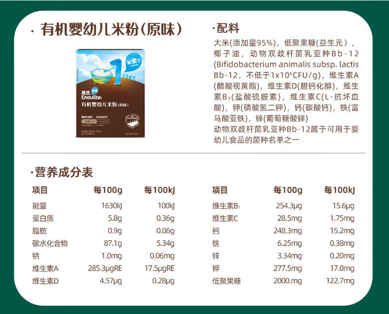 Engnice Special Zone for babies over 6 months old Infants and young children high-iron rice flour supplement snacks fruit puree rice cakes organic vitamin C plus iron original flavor 248g*1 can