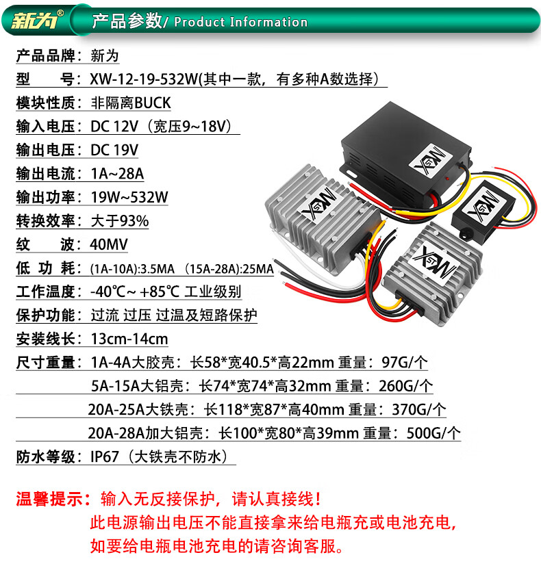 12V to 19V power converter 12V to 19V DC booster DC-DC module 1A to 25A 8A large aluminum shell