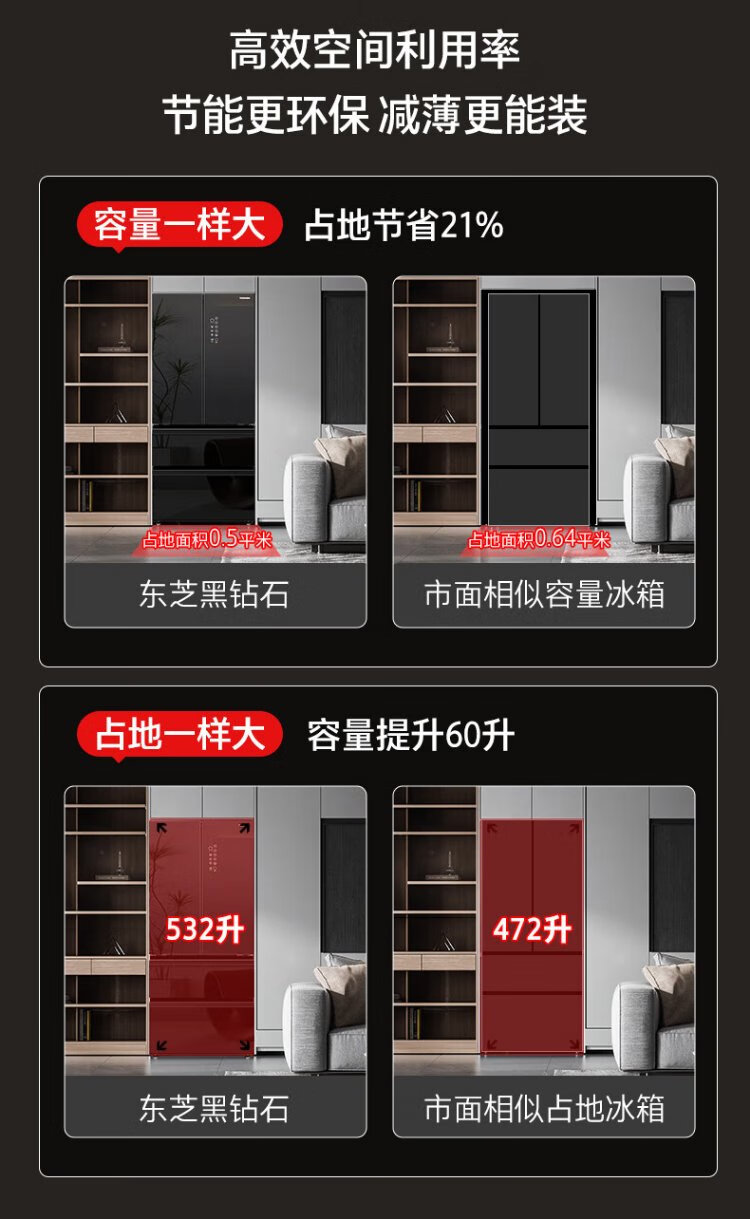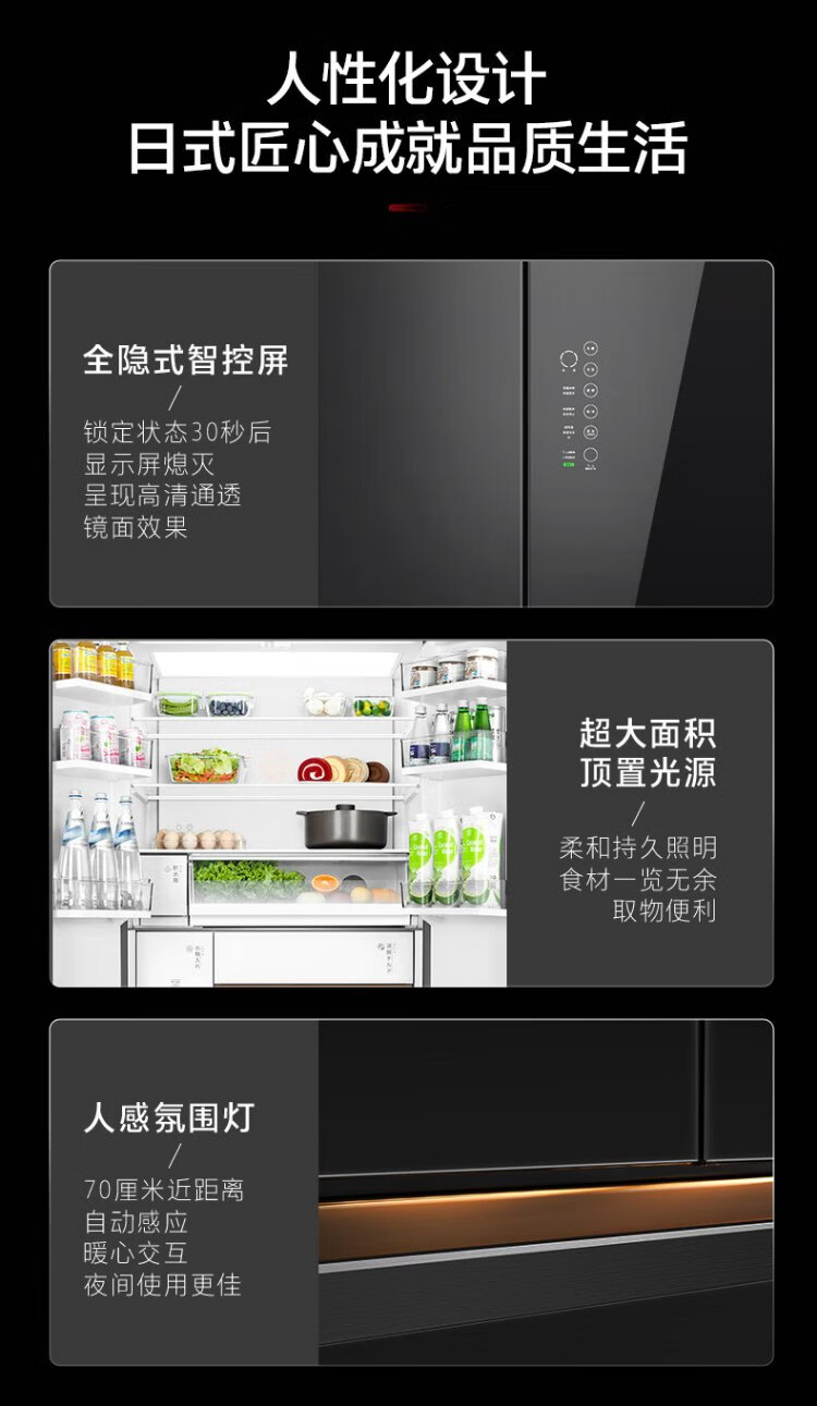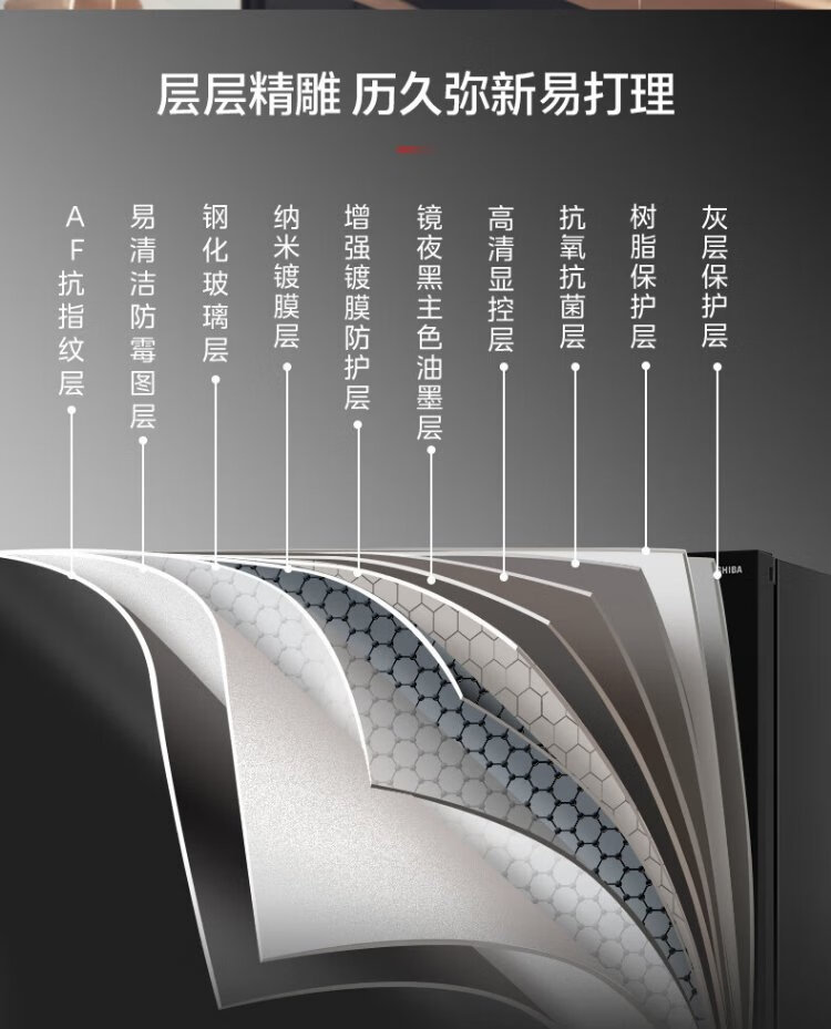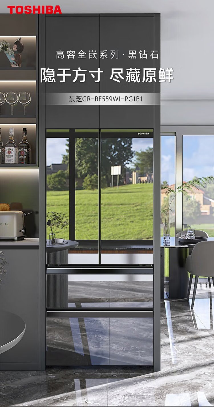 TOSHIBA Black Diamond 559 French multi-door high-capacity fully flush-embedded large-capacity automatic ice-making mirror glass first-class energy efficiency air-cooled frost-free state-subsidized household zero-embedded refrigerator GR-RF559WI-PG1B1 Mirror Night Black-Deep