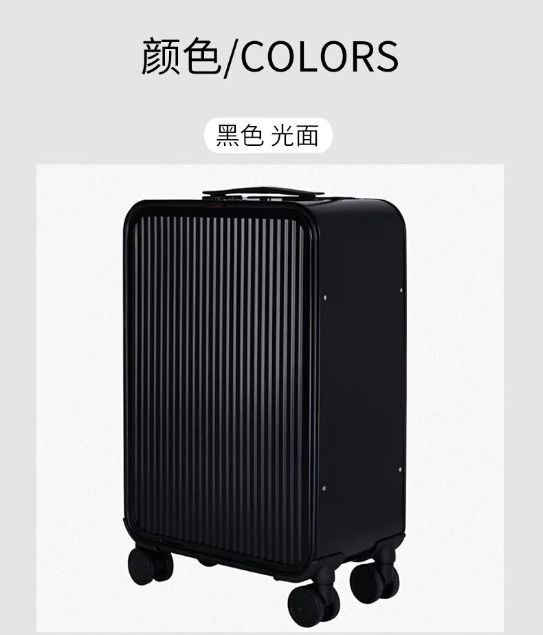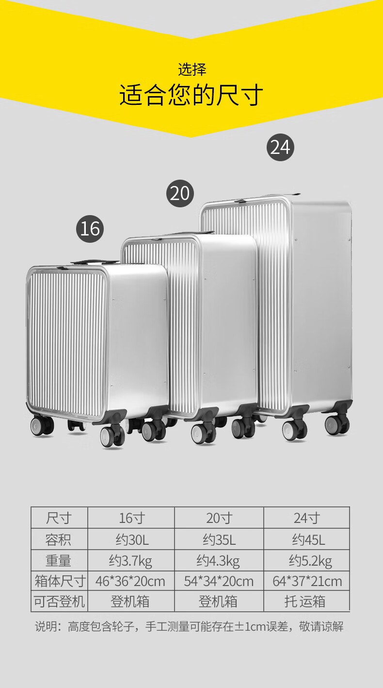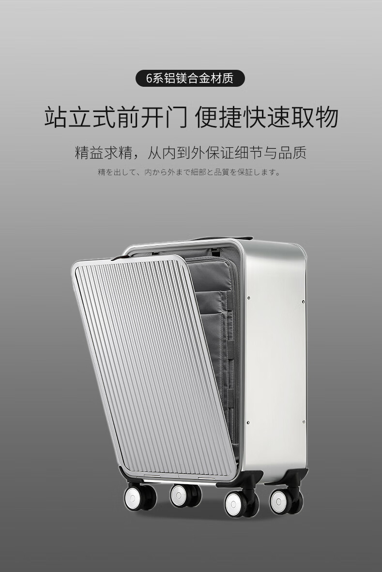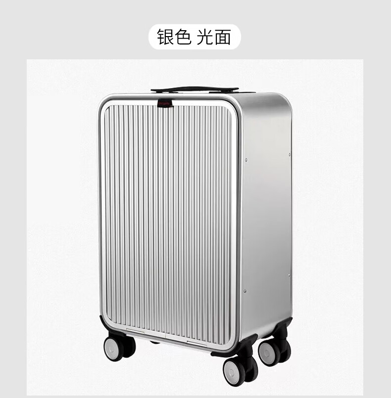 Yuemeng front-opening boarding case all-aluminum magnesium alloy business travel suitcase 20 side-opening trolley case for men and women silver glossy 20 inches - can hold 15-16 inch computers - can be boarded