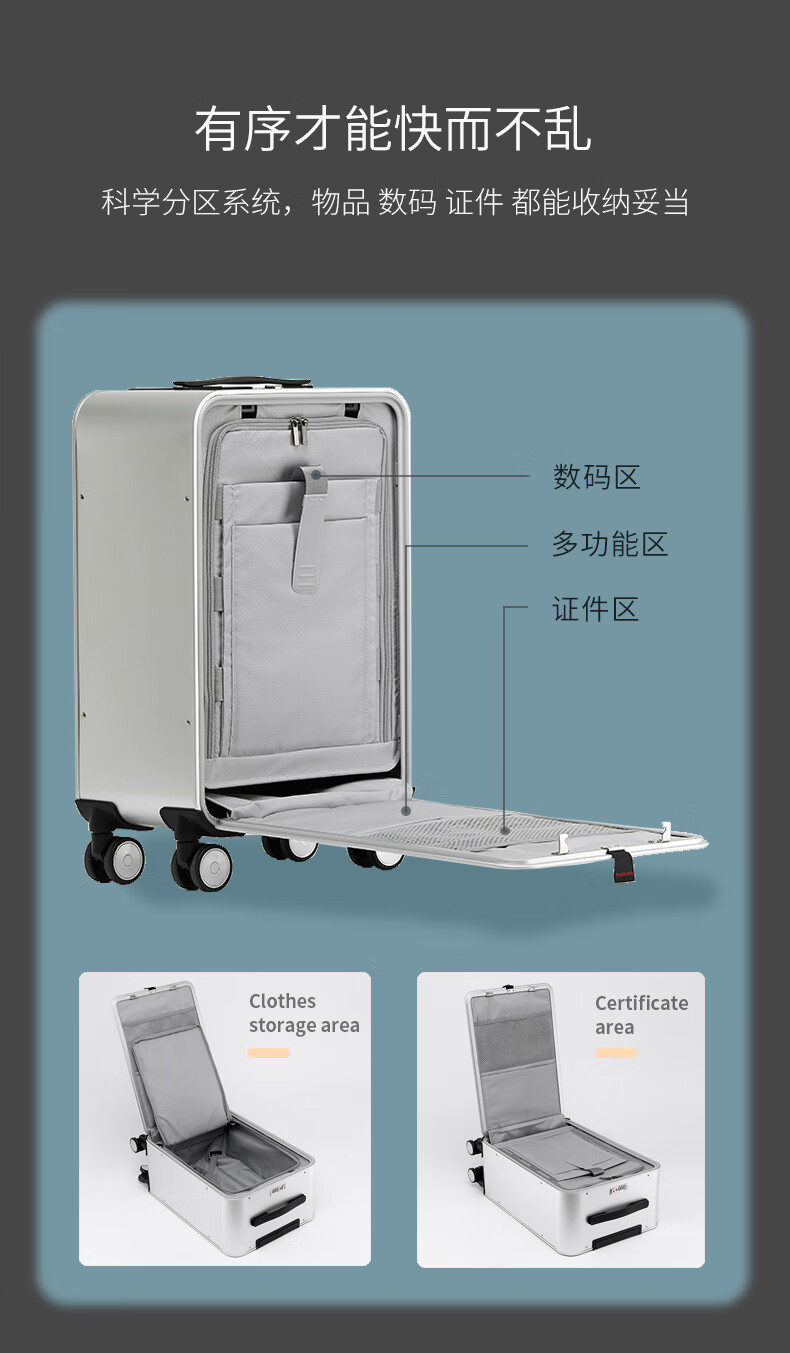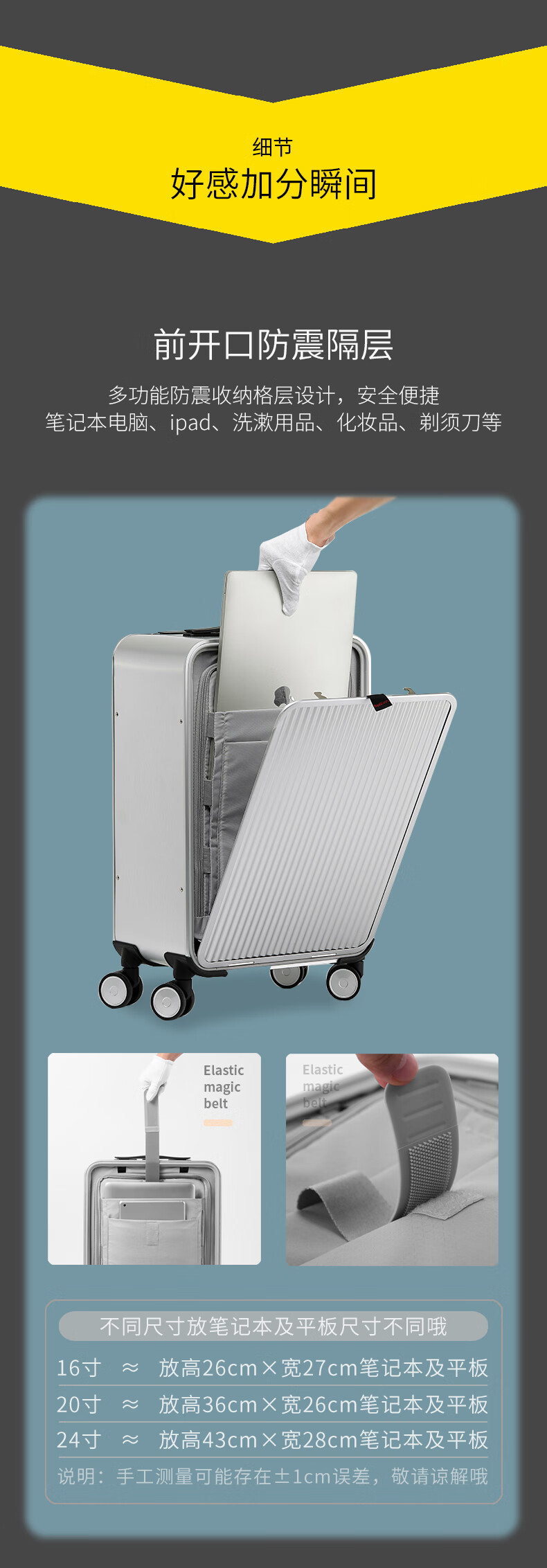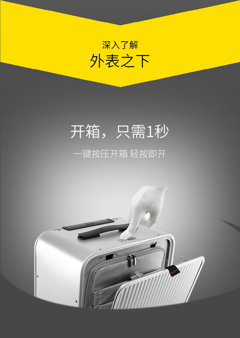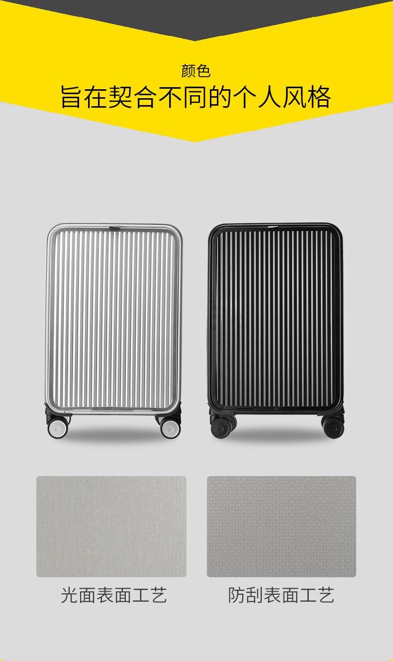 Yuemeng front-opening boarding case all-aluminum magnesium alloy business travel suitcase 20 side-opening trolley case for men and women silver glossy 20 inches - can hold 15-16 inch computers - can be boarded