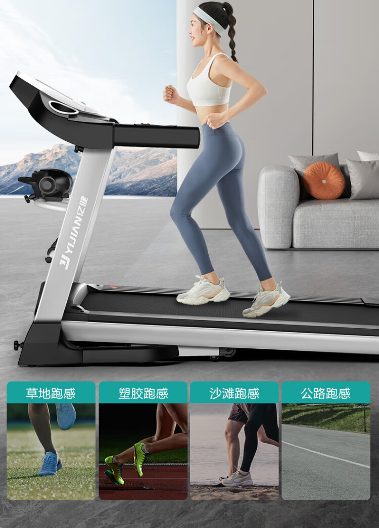 YIJIAN Treadmill Household Noise Reduction Small Foldable Walking Machine Light Commercial Grade Treadmill Indoor Fitness Equipment E3 Color Screen Various Types - Stainless Steel Base/AI Flexible Shock Absorption