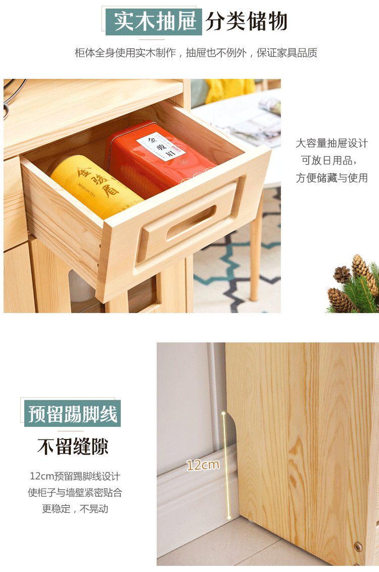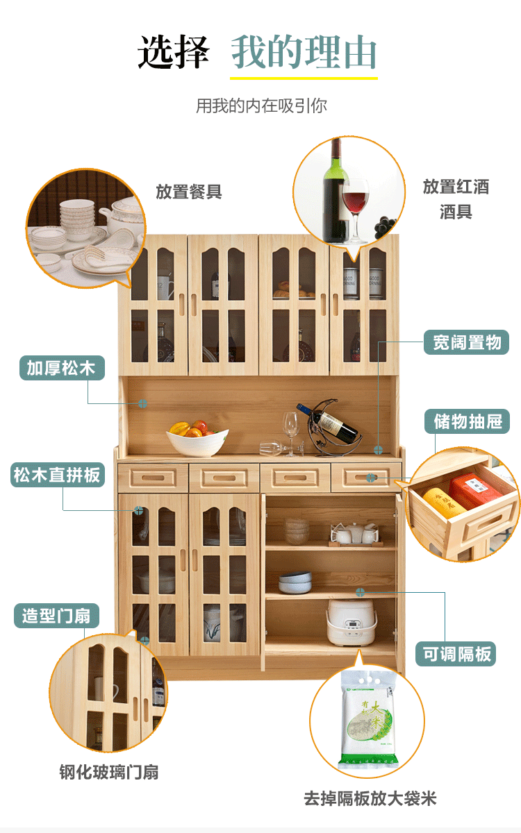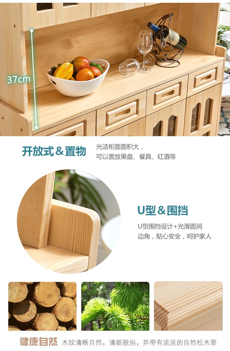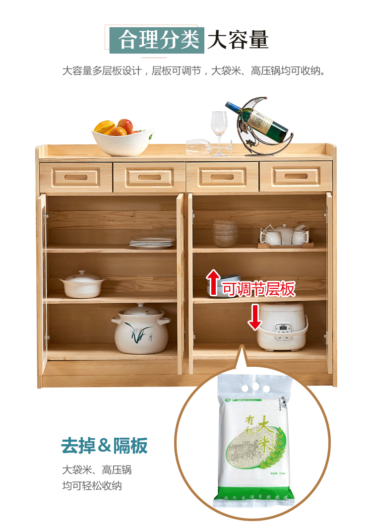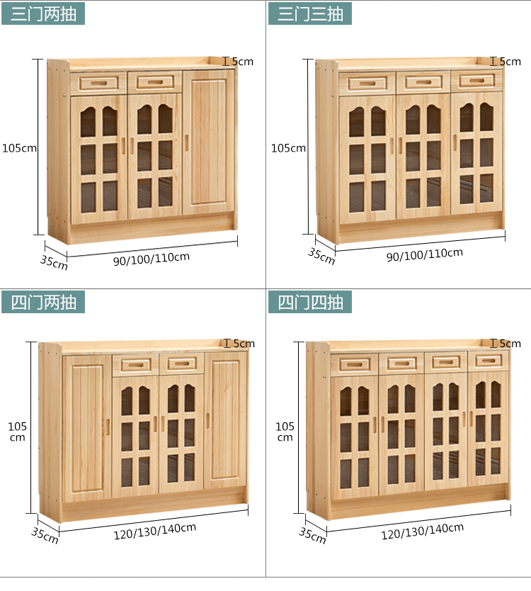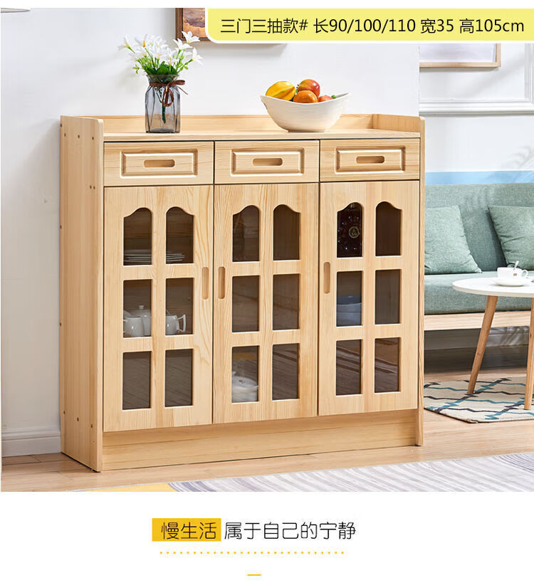 Fazhi Life 2026 new sideboard restaurant solid wood storage cabinet Nordic living room shelf multi-functional storage cabinet wine cabinet sideboard three doors two drawers 90 long 35 wide 105 high