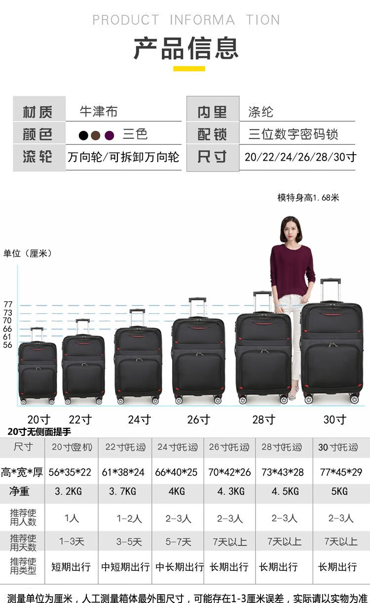 Liyaodou new large-capacity suitcase Oxford trolley suitcase for male and female students trendy suitcase Korean style canvas password box leather suitcase non-waterproof Oxford cloth caster 20 inches can be boarded for personal short-term travel