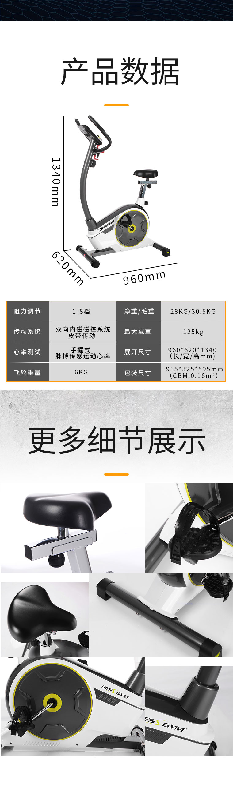 BESSGYM Vertical Exercise Bike BG-8708 Household Silent Two-way Internal Magnetic Magnetic Control Adjustable Resistance Indoor Exercise Bike