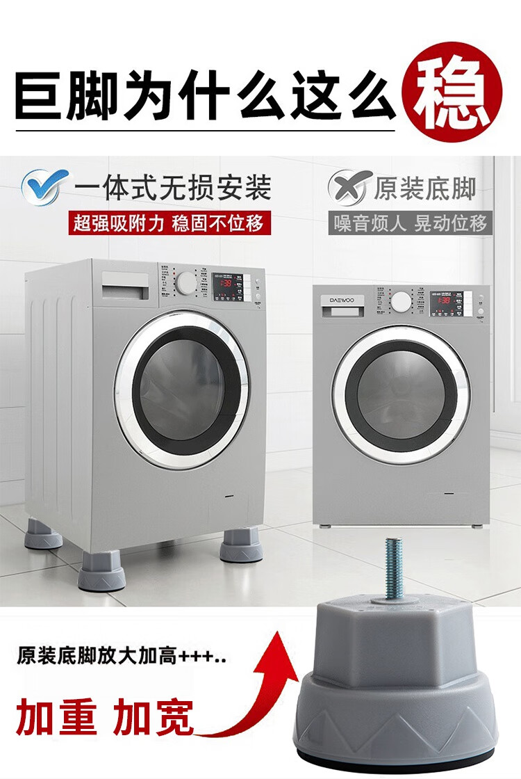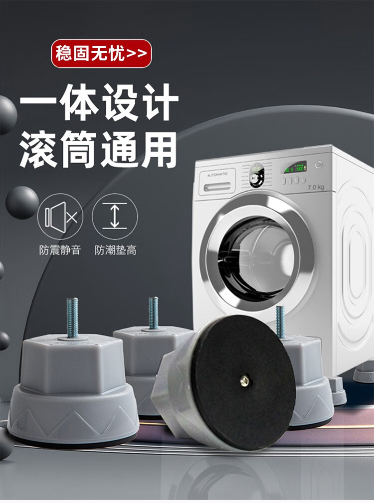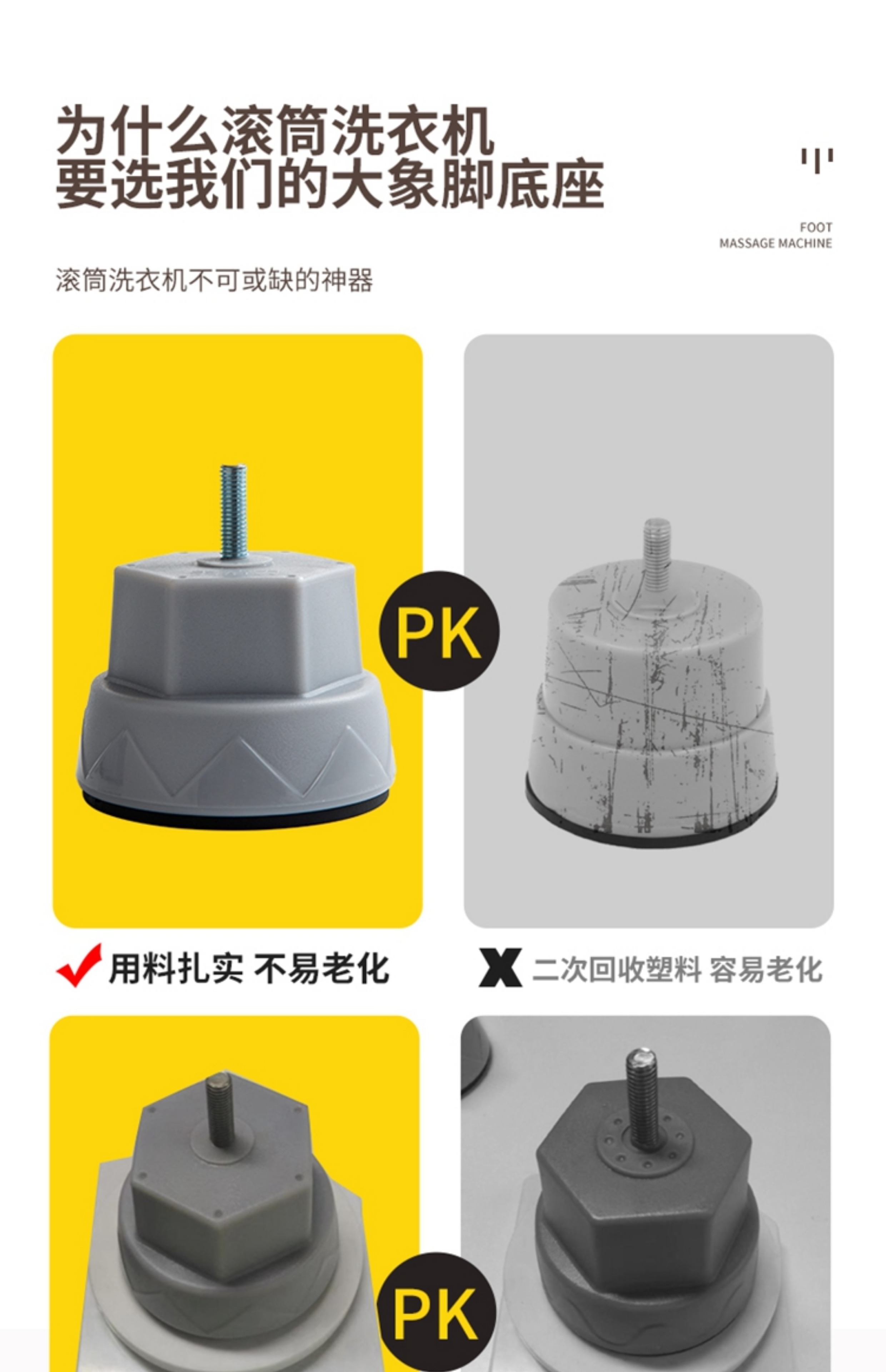 Suitable for Haier/Little Swan drum washing machine base frame elephant legs and feet Casarte/Panasonic/Siemens fully automatic 8/10 kg shock-proof pads, high and stable shock-absorbing foot pads, dedicated for drums, solid elephant feet, 4 pieces - gray 1 layer