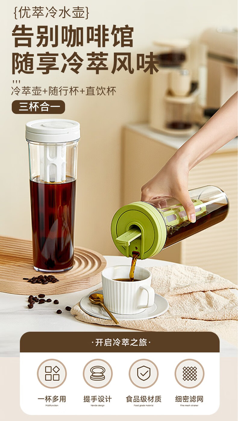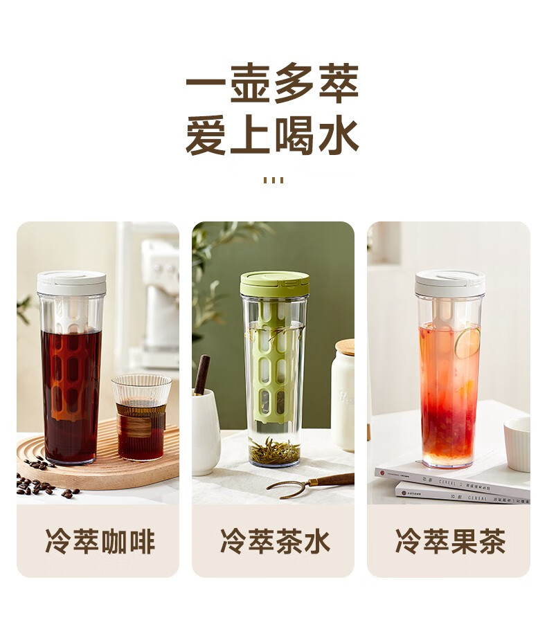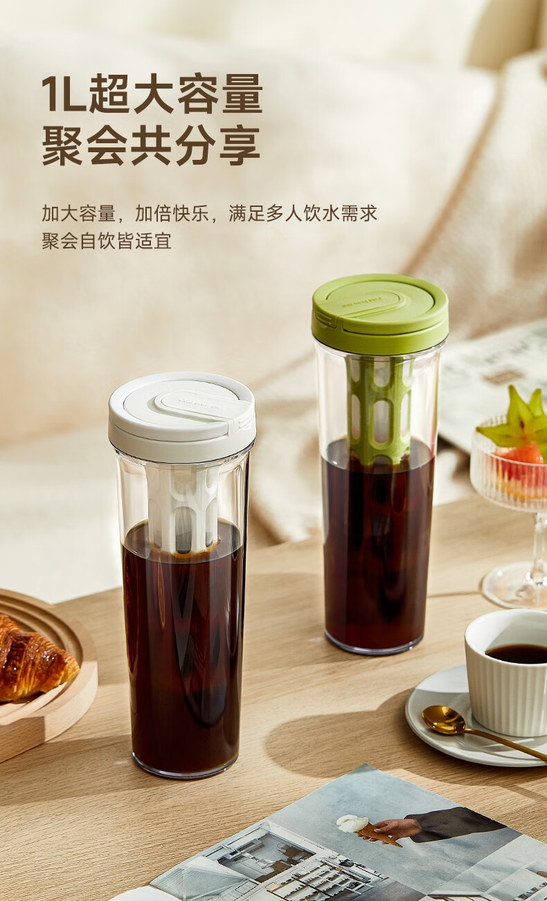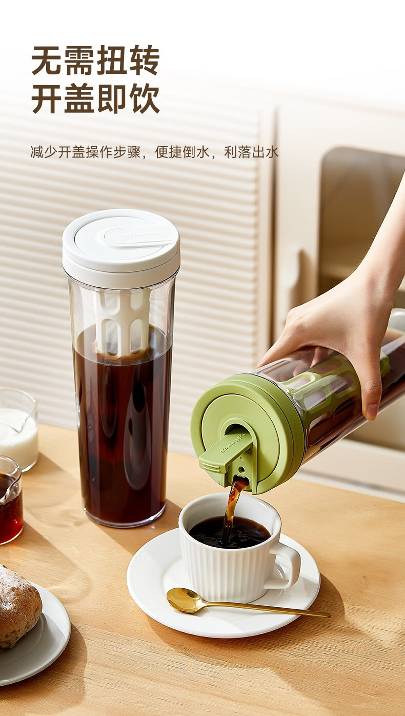 PAKCHOICE Cold Brew Coffee Pot, Cold Brew Cup, Cold Brew Tea Bottle, Coffee Cold Brew Pot, Infusion Bottle, Cold Water Bottle, Cold Brew Teapot, White Portable 1L