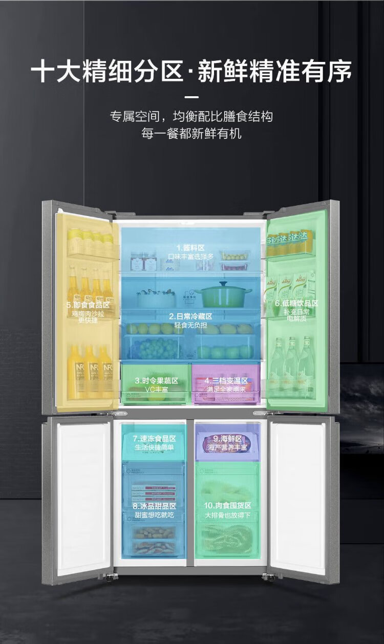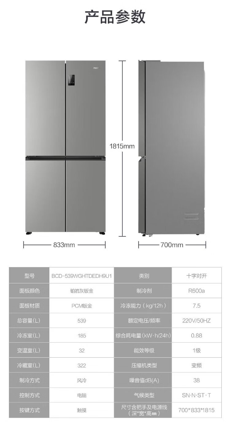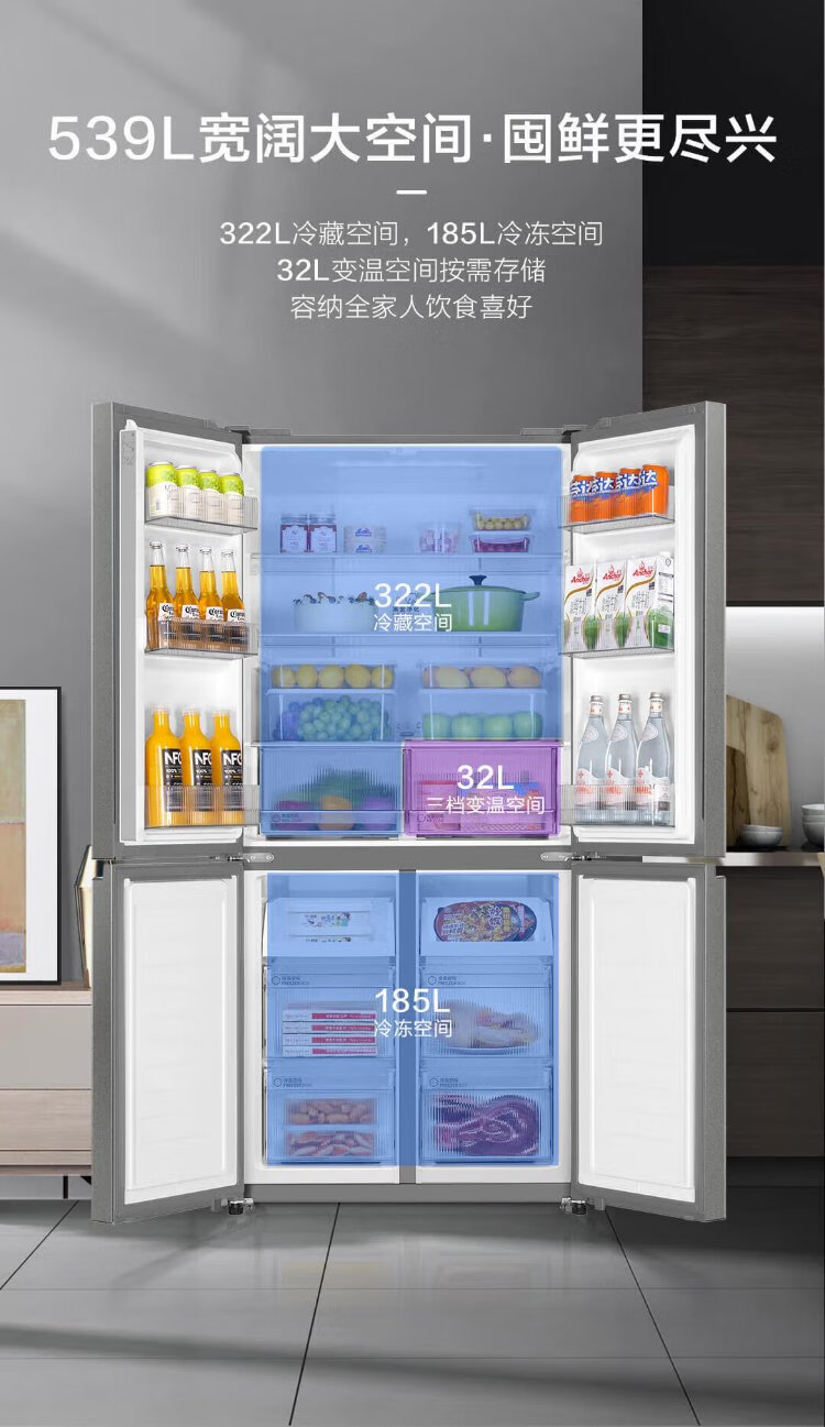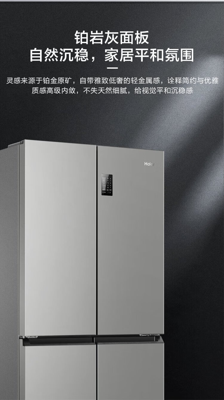 Haier refrigerator four-door 539-liter cross-door household smart dual-frequency large-capacity three-speed variable temperature space first-class energy-efficiency refrigerator 539L platinum rock gray + mother and baby exclusive space + black gold purification