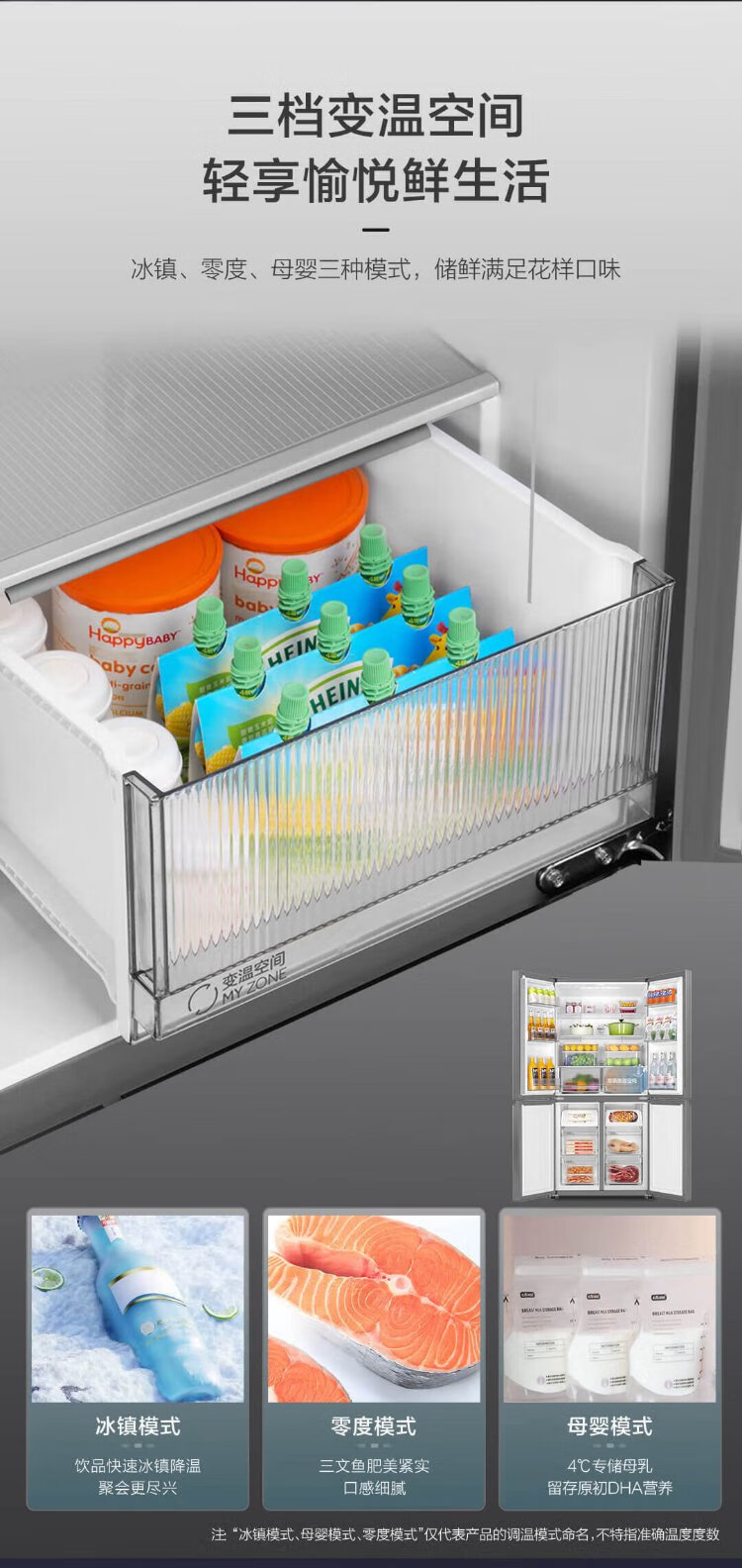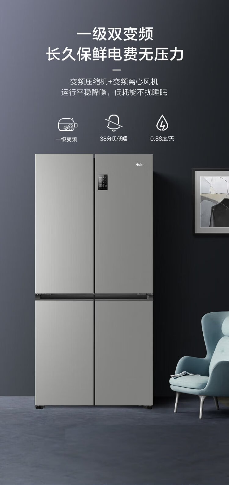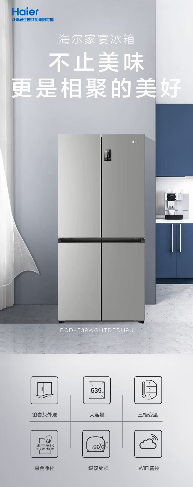 Haier refrigerator four-door 539-liter cross-door household smart dual-frequency large-capacity three-speed variable temperature space first-class energy-efficiency refrigerator 539L platinum rock gray + mother and baby exclusive space + black gold purification