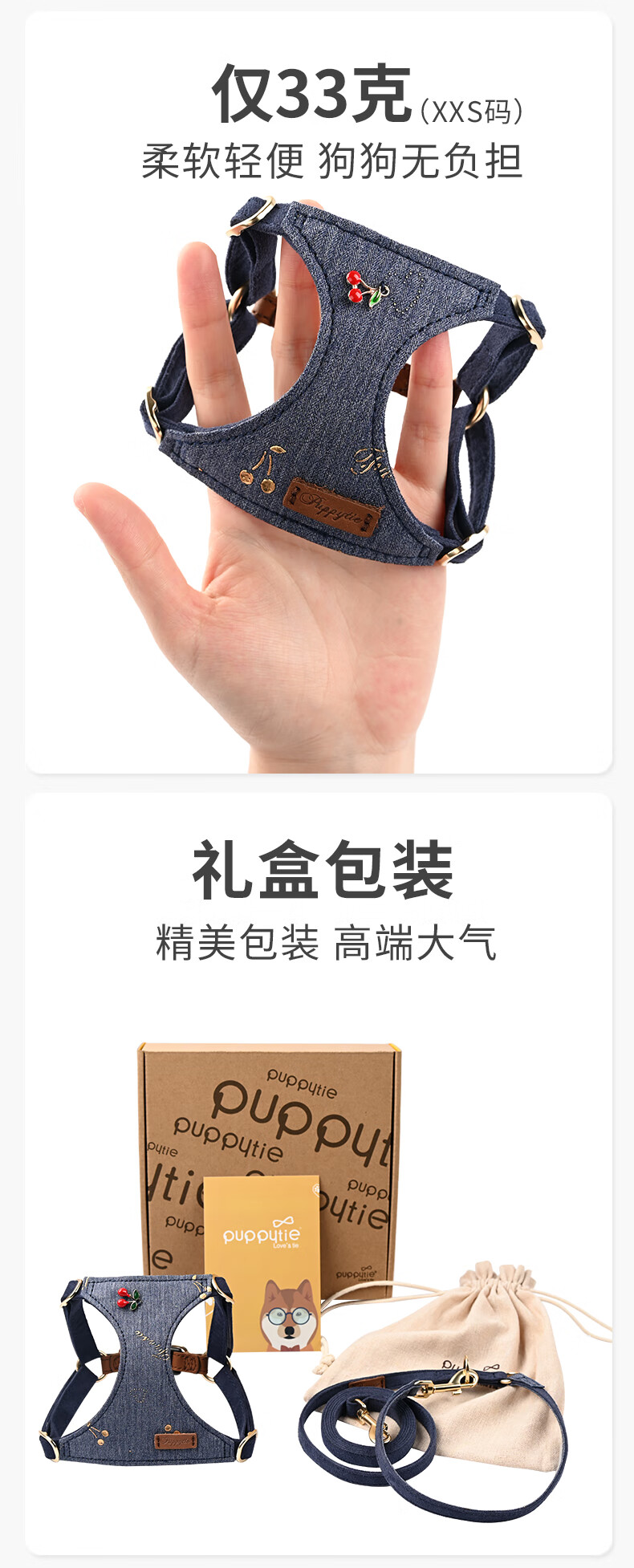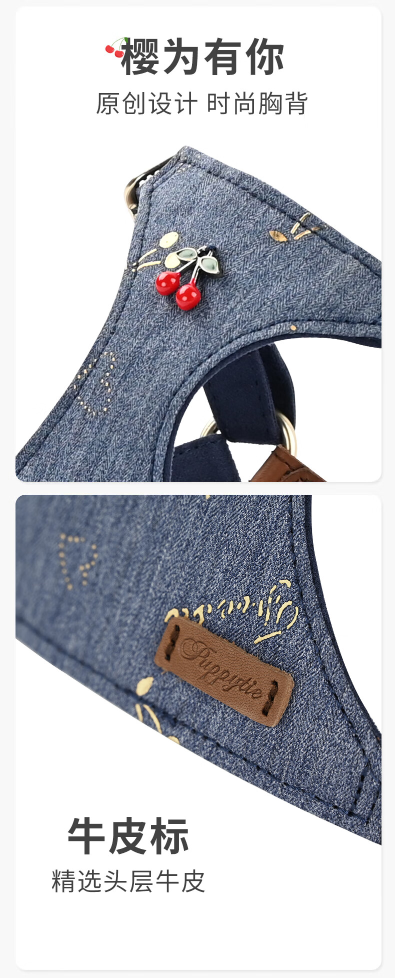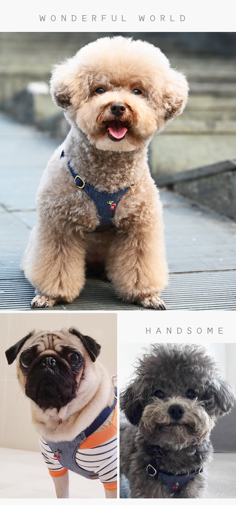Puppytie Pet Supplies Dog Vest Style Dog Rope Dog Rope Adjustment Cute Small Dog Harness Teddy Leash Cowboy Sweetheart - Harness (Leash Not Included) XXS Code - Recommended 1-6 catties