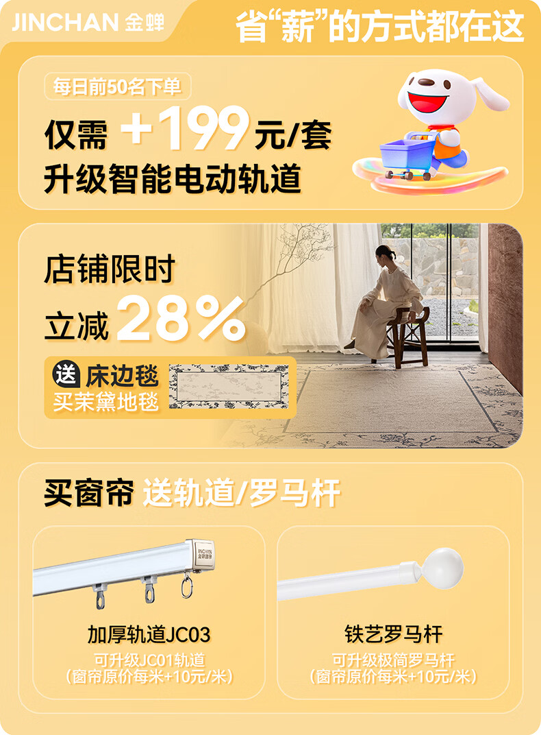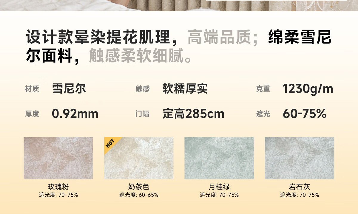 Jinchan customized full blackout curtain fabric Shaoxing Keqiao Chenille living room bedroom bay window electric track integrated household Mr sample gift package (cloth + yarn) door-to-door measurement and installation Add to favorites and purchase After ordering, free sample measurement meters