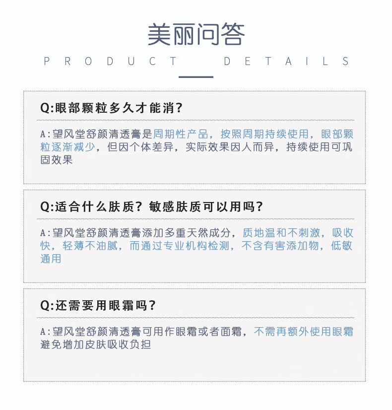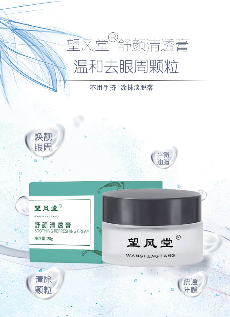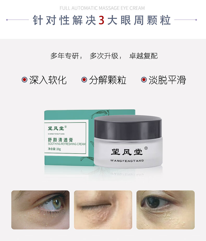 Wangfengtang Shuyan Cream Jinyan removes fat under the eyes and eye circles. Wangfengtang Wangfengtang Shuyan Clear Cream comes in a box.