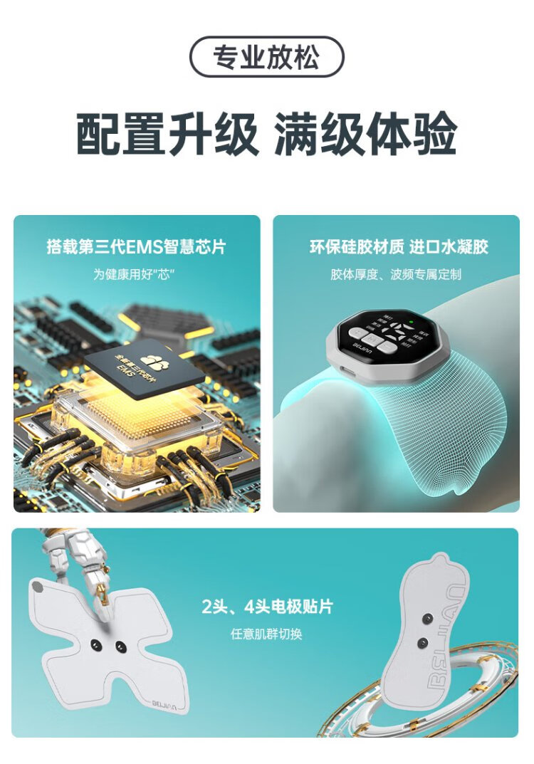 Beijian Electric Stimulation 3.0 Muscle Exerciser Calf Massager Fascia Tape Relaxation Electrotherapy Fitness Equipment Home Host + 2 Double Heads + 2 Four Heads (Gift One Glucosamine Massage Cream)