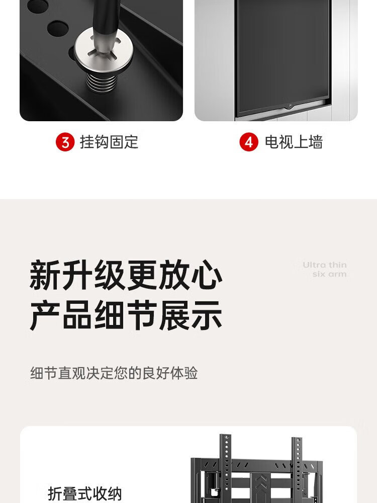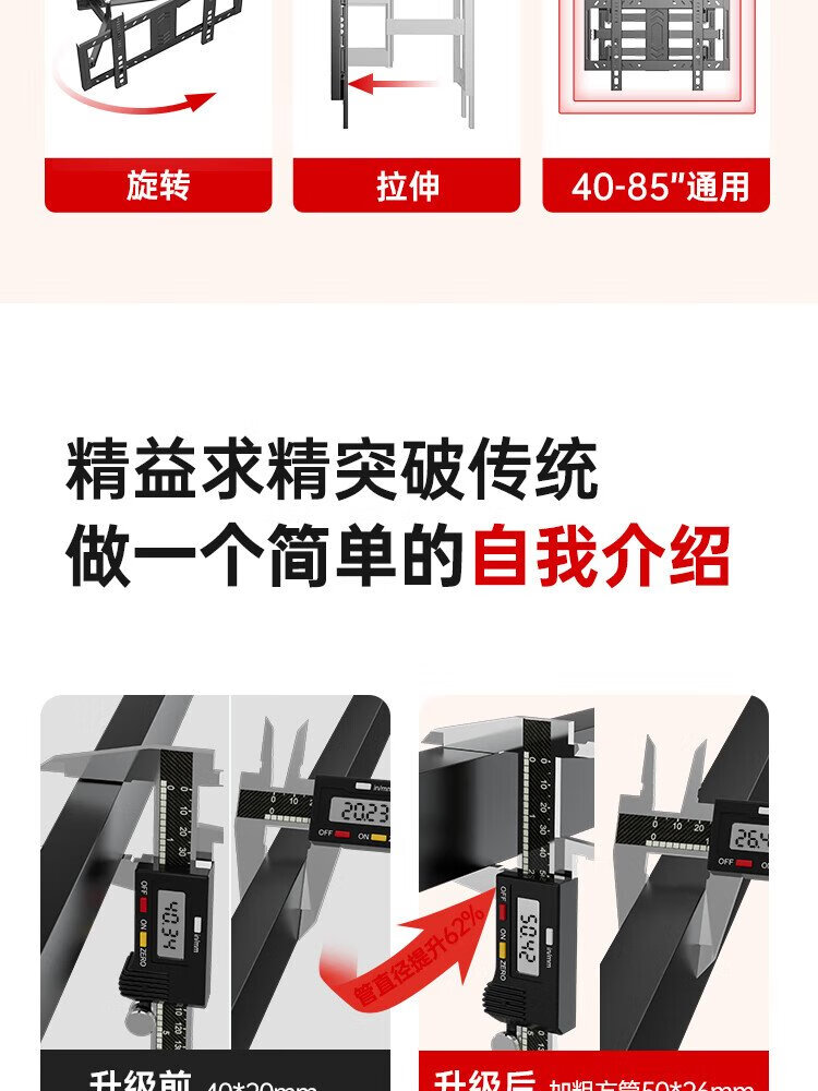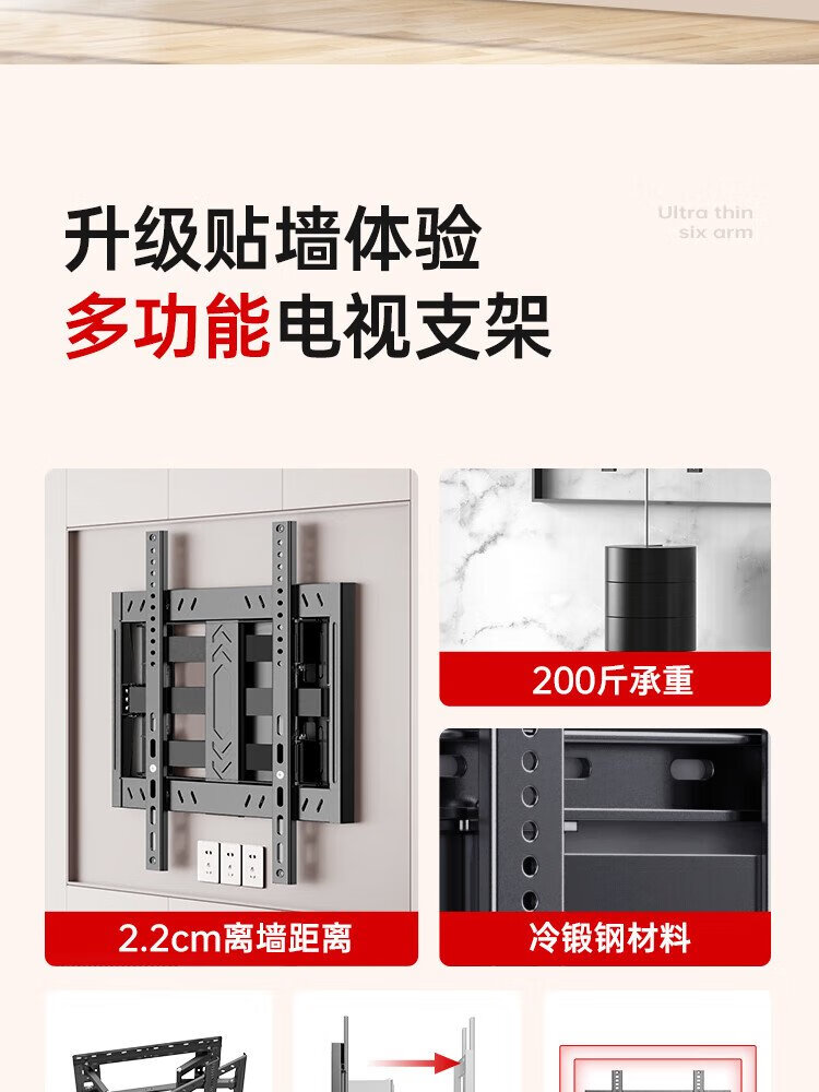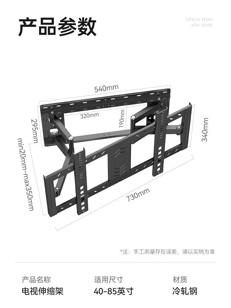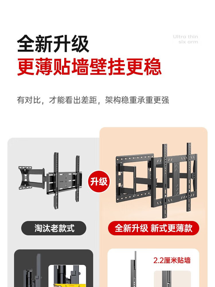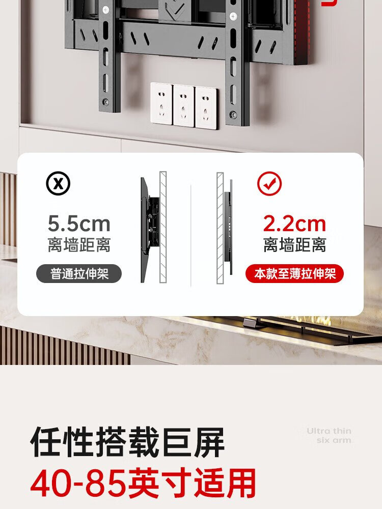 Zijian TV Mount (32-150 inches) Ultra-thin TV Rotating Telescopic Bracket Large Screen Universal Wall Mount Suitable for Xiaomi Skyworth TCL Hisense Sony Thin Model (up to Thin Wall 2.2CM)/40-85 inches Universal