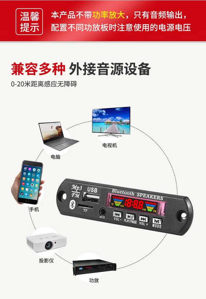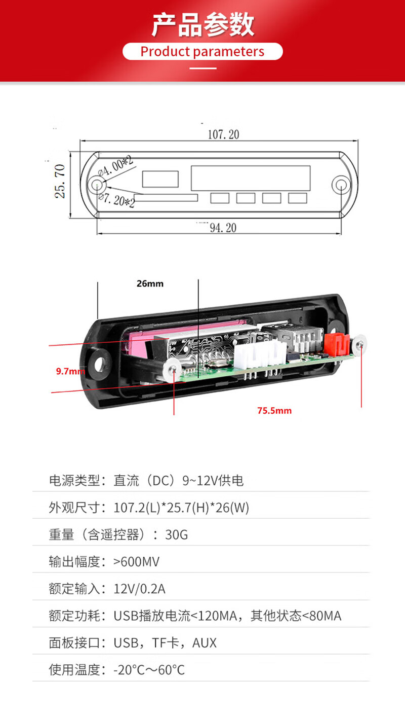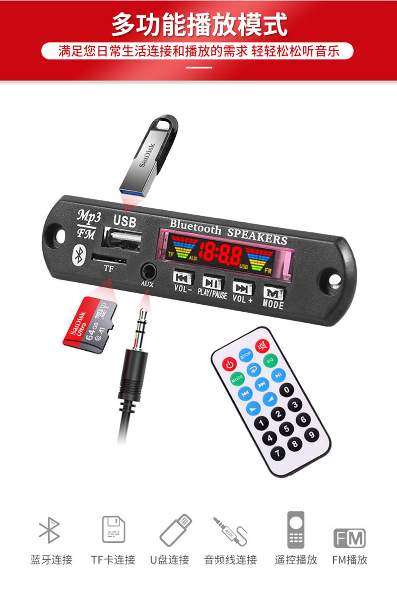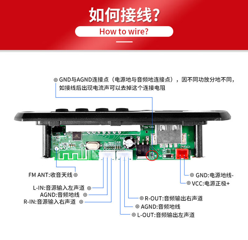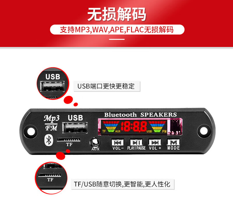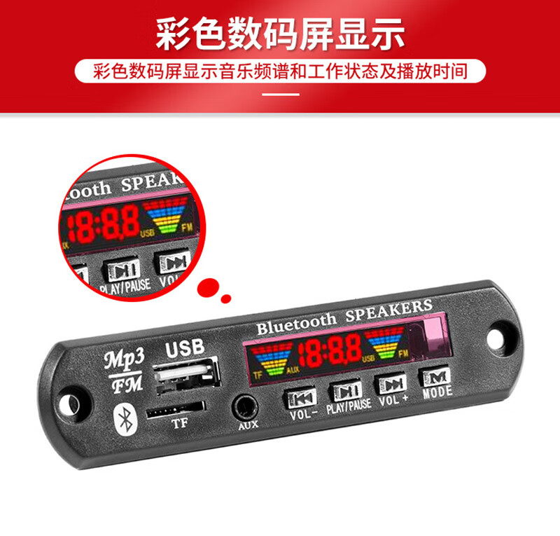 DC12V Bluetooth 5.2 car MP3 decoder board FM radio motherboard receiver stereo two-channel DIY audio without power amplifier