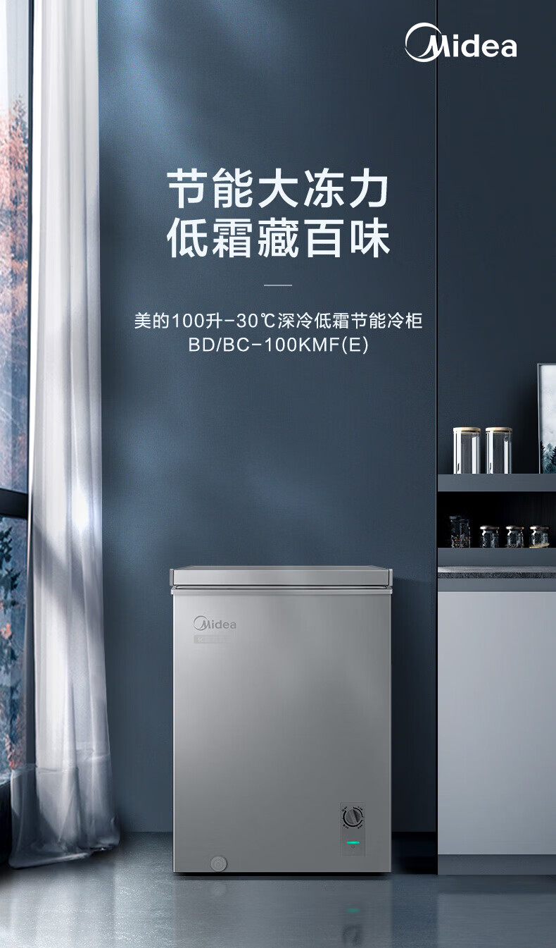 Midea Freezer Household 100/143/200 Liter KMF Freezer Single Temperature Refrigeration Freezing Preservation Small Freezer No Need for Frequent Defrosting First Level Energy Efficiency Power Saving Refrigerator Frost Reduction New Year's Eve Frost Reduction 80% First Level Energy Efficiency 100L 100KMF (E) Gray