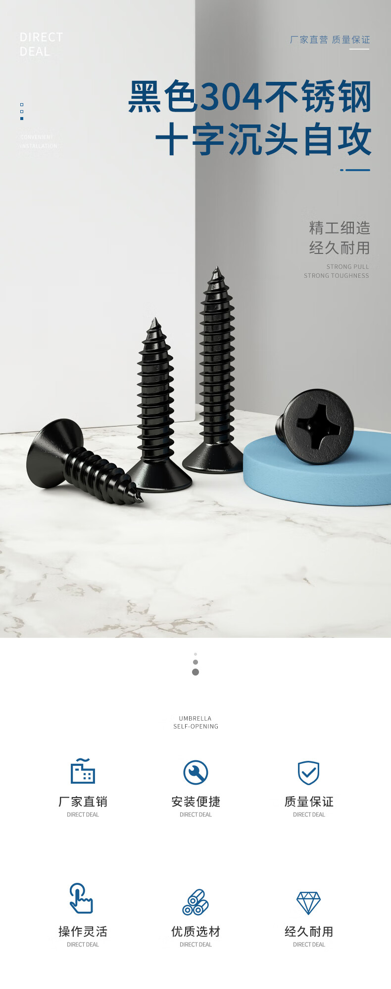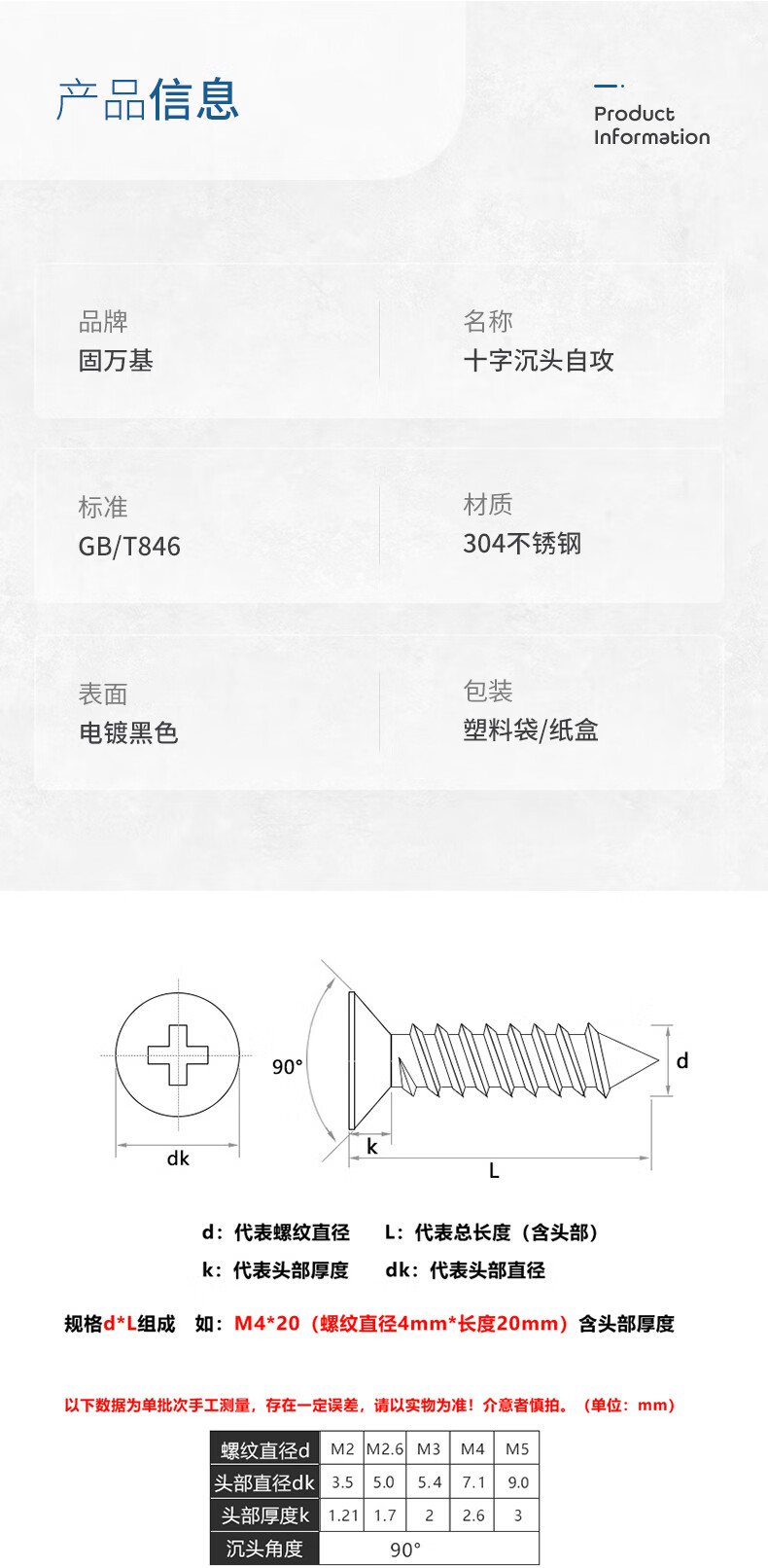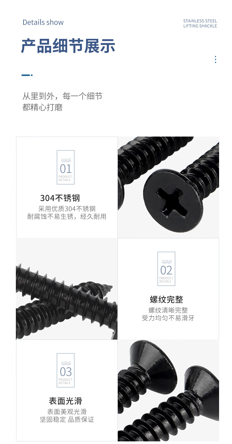 GUWANJI 304 stainless steel self-tapping screws cross flat head screws black countersunk head screws woodworking screws M2.6*8 200 pieces