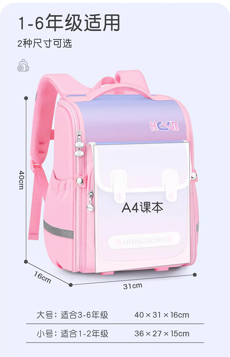 Chunlong (CHUNLONG) children's schoolbags, primary school girls, third to sixth grade, one and two burden reduction boys, waterproof backpack, lightweight, small pink HC368