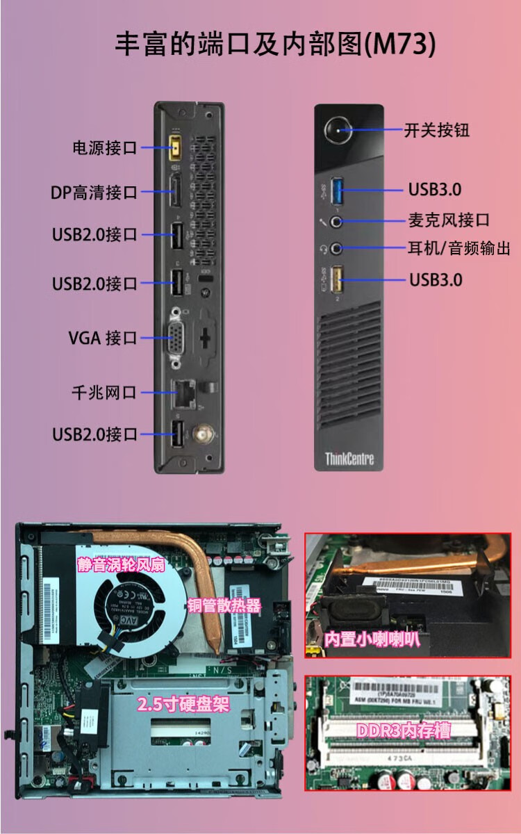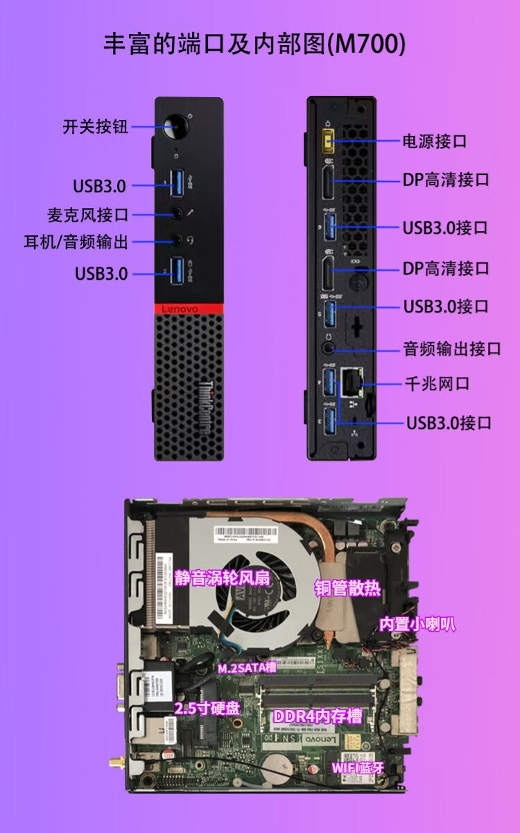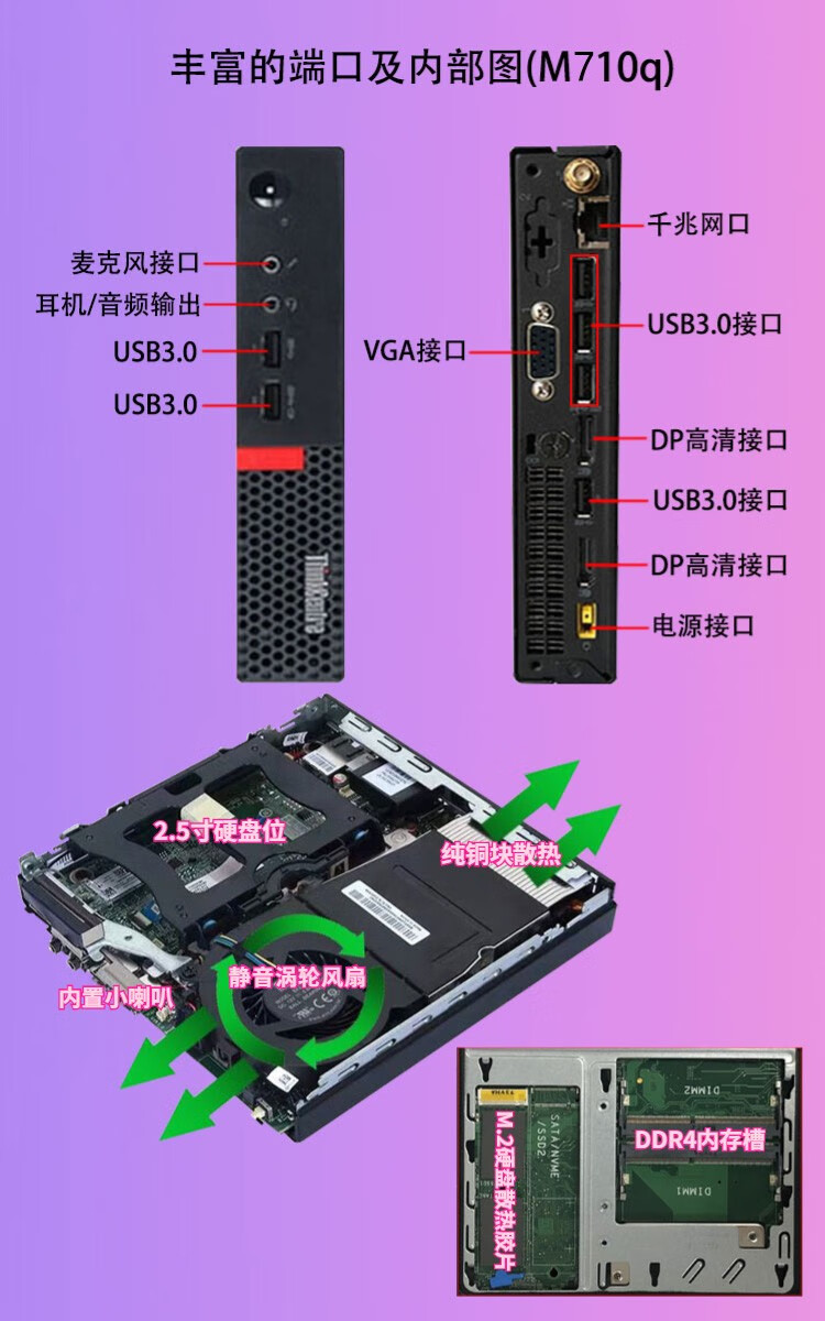 Lenovo mini host second-hand micro desktop mini computer I7 six-core M710q tenth generation M730q portable office commercial home 4K I7-7700T/8G/256G high-speed solid state 95% new