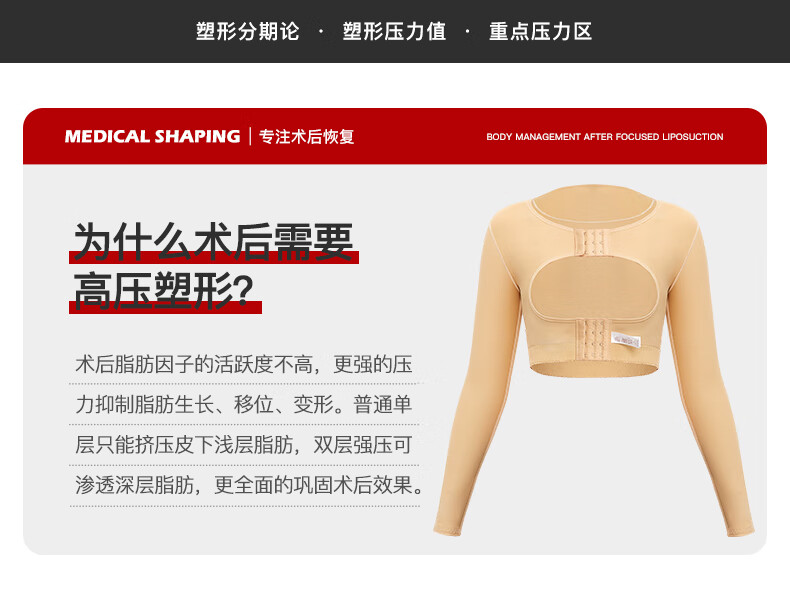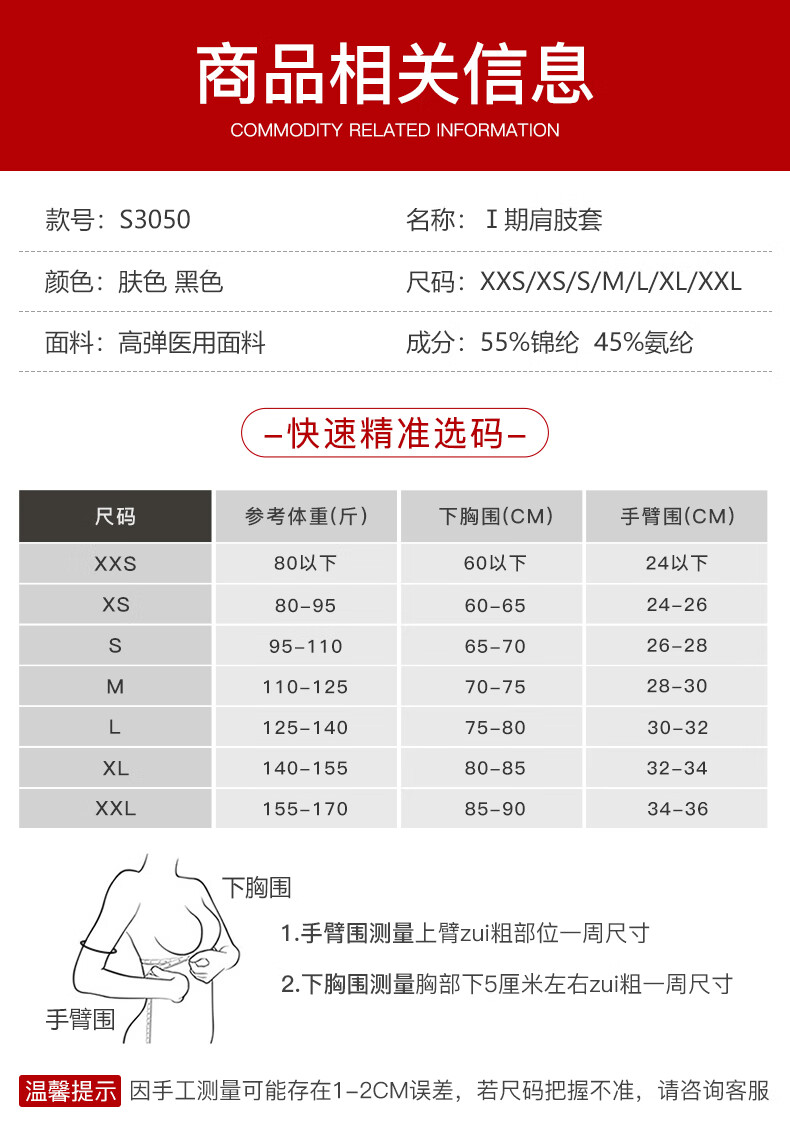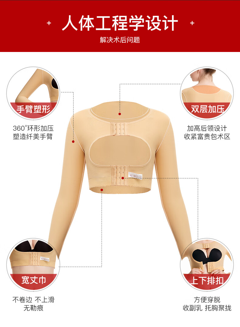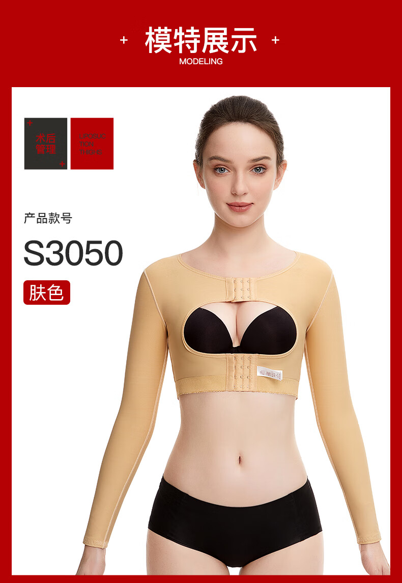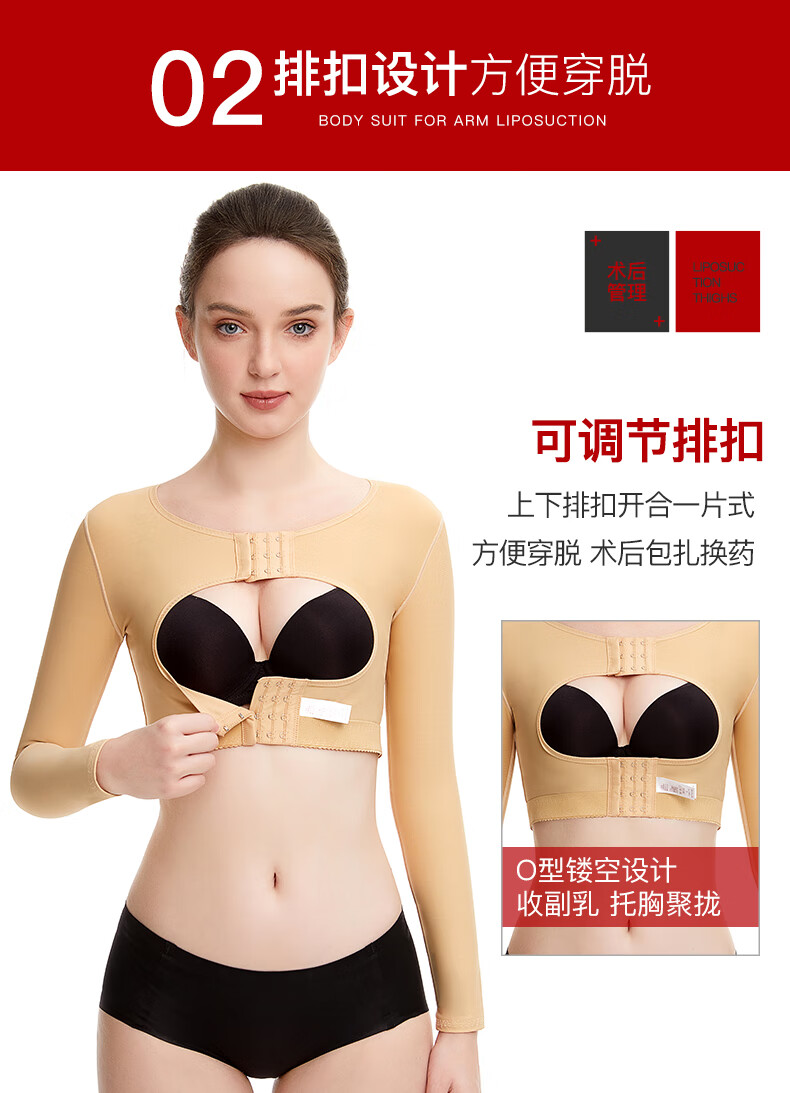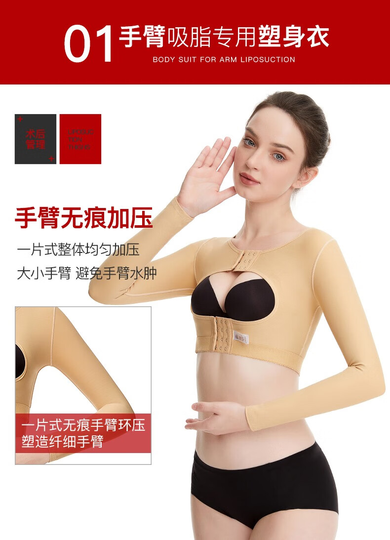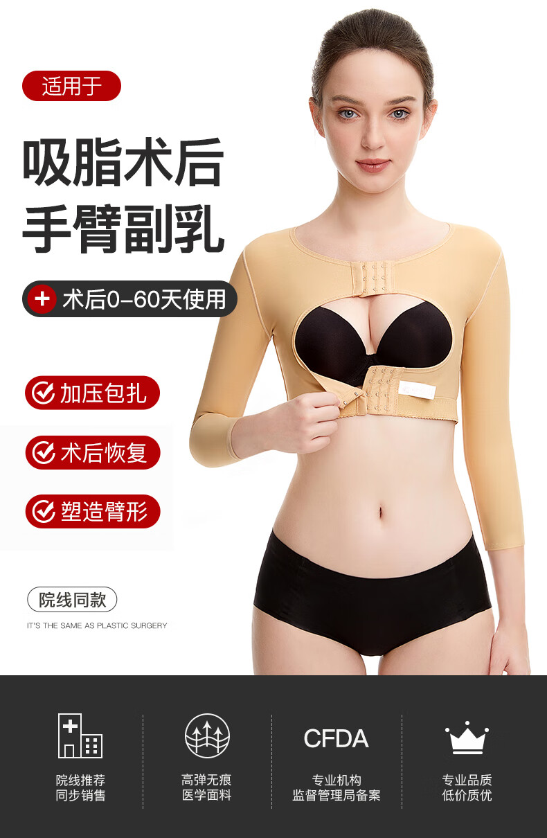 Huai Meiyuan after arm liposuction, shapewear after liposuction, arm cuffs, arm restraints, breast support, breast support correction, special shapewear, skin color, three-quarter sleeves, antibacterial fabric S, recommended weight 95-110 pounds