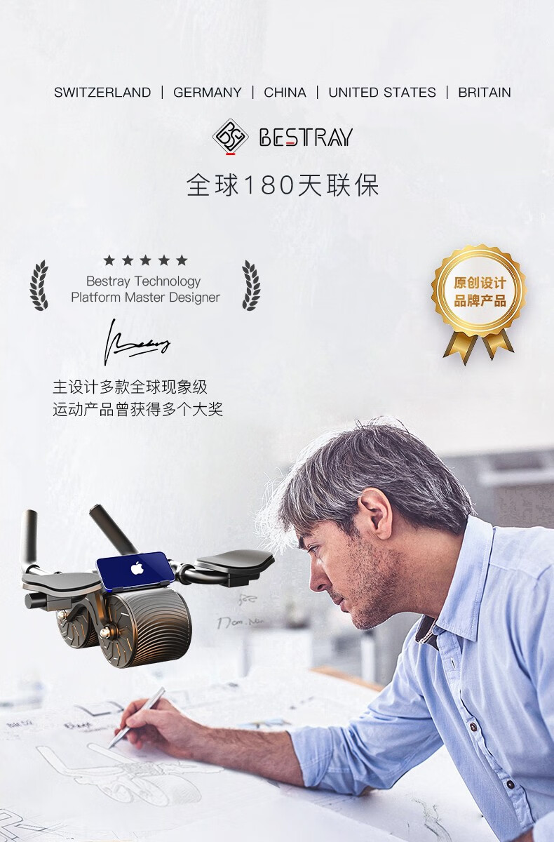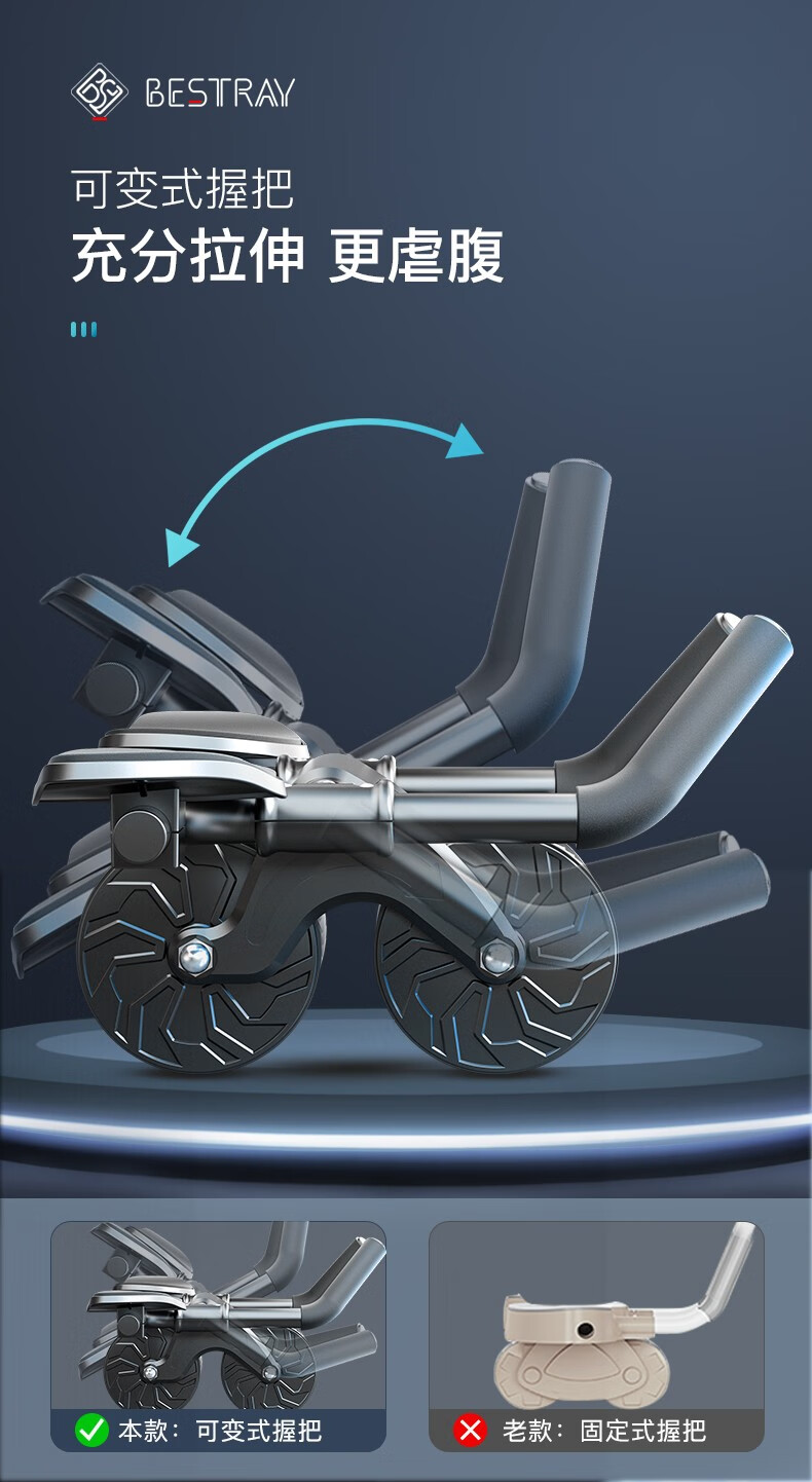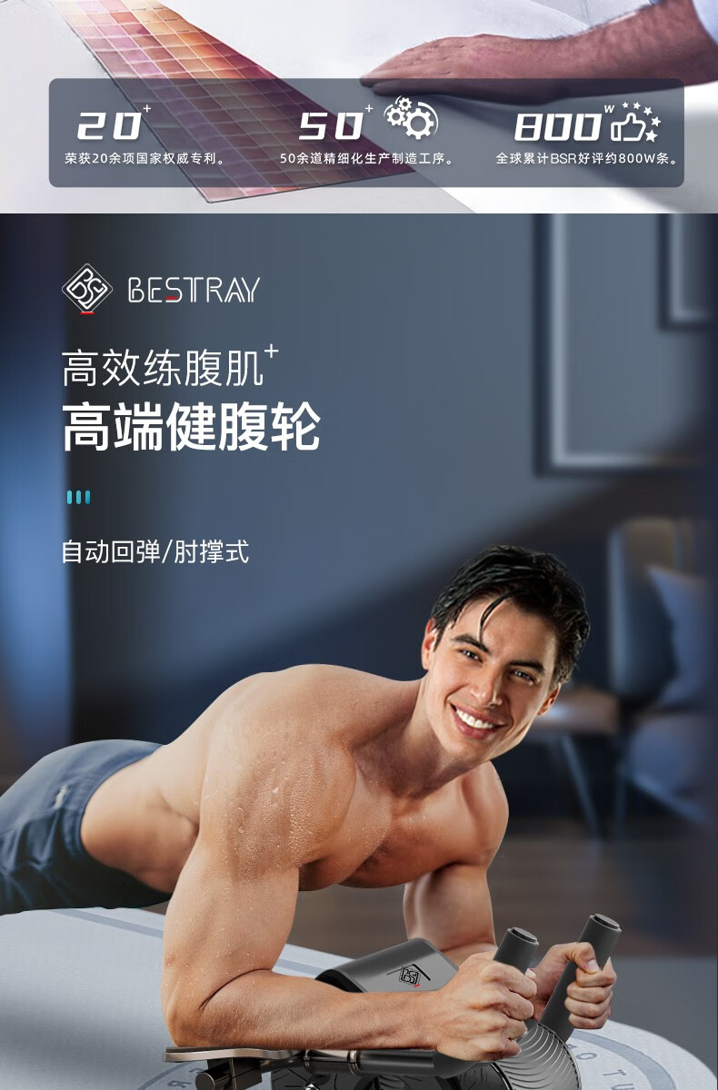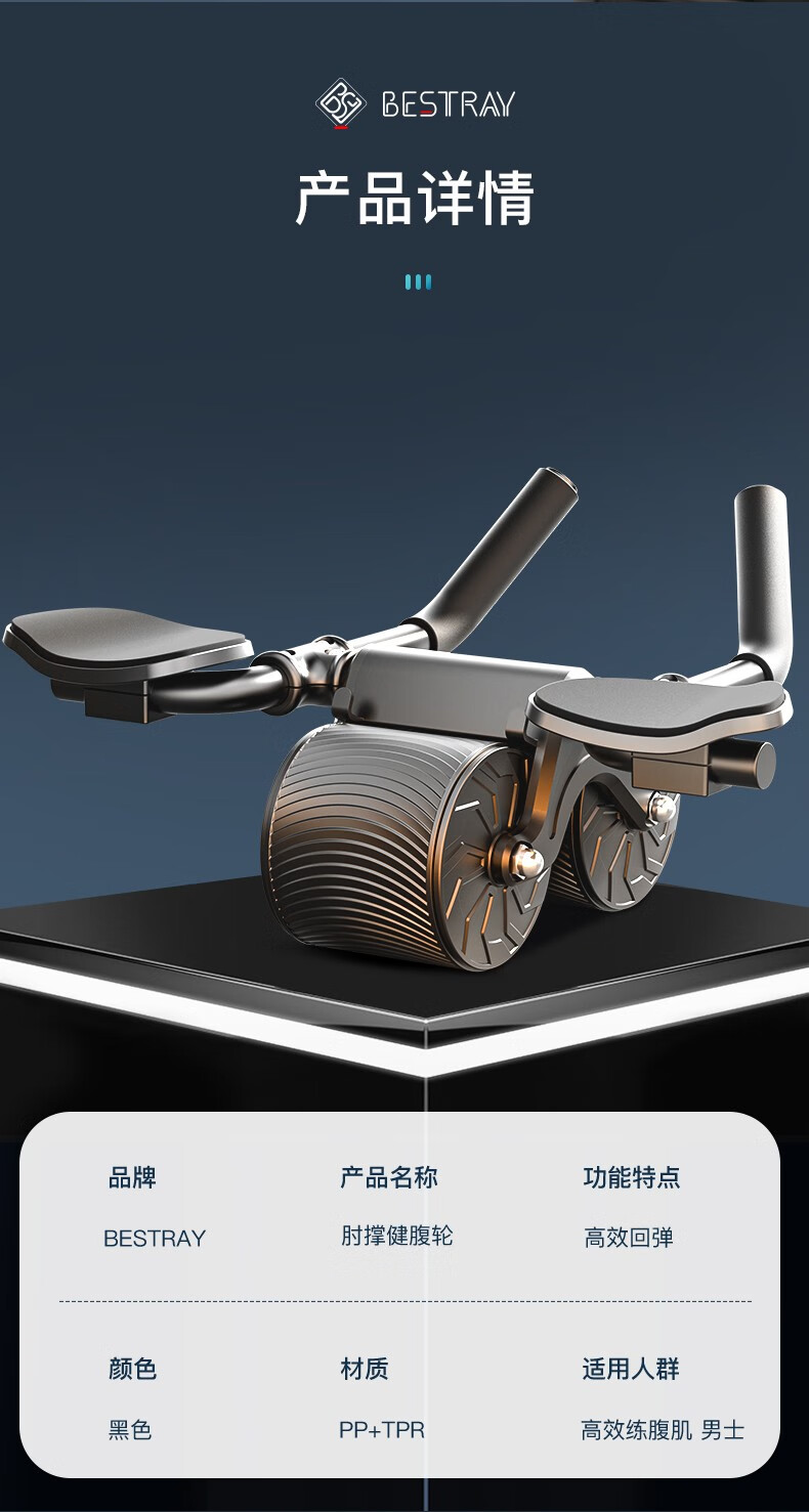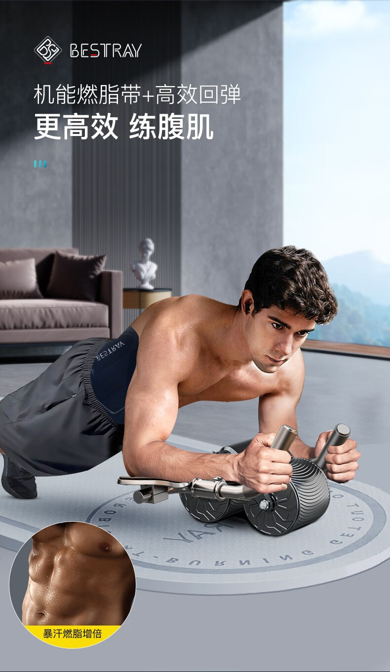 BSR Abdominal Wheel Automatic Rebound Elbow Support Men's Abdominal Wheel Slimming Belly Crunches Flat Support Fitness Equipment Gift Black (Sweat Belt + Kneeling Pad)