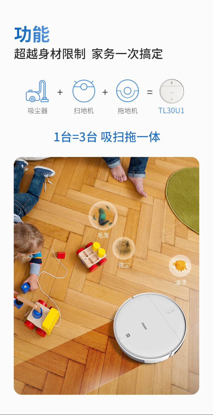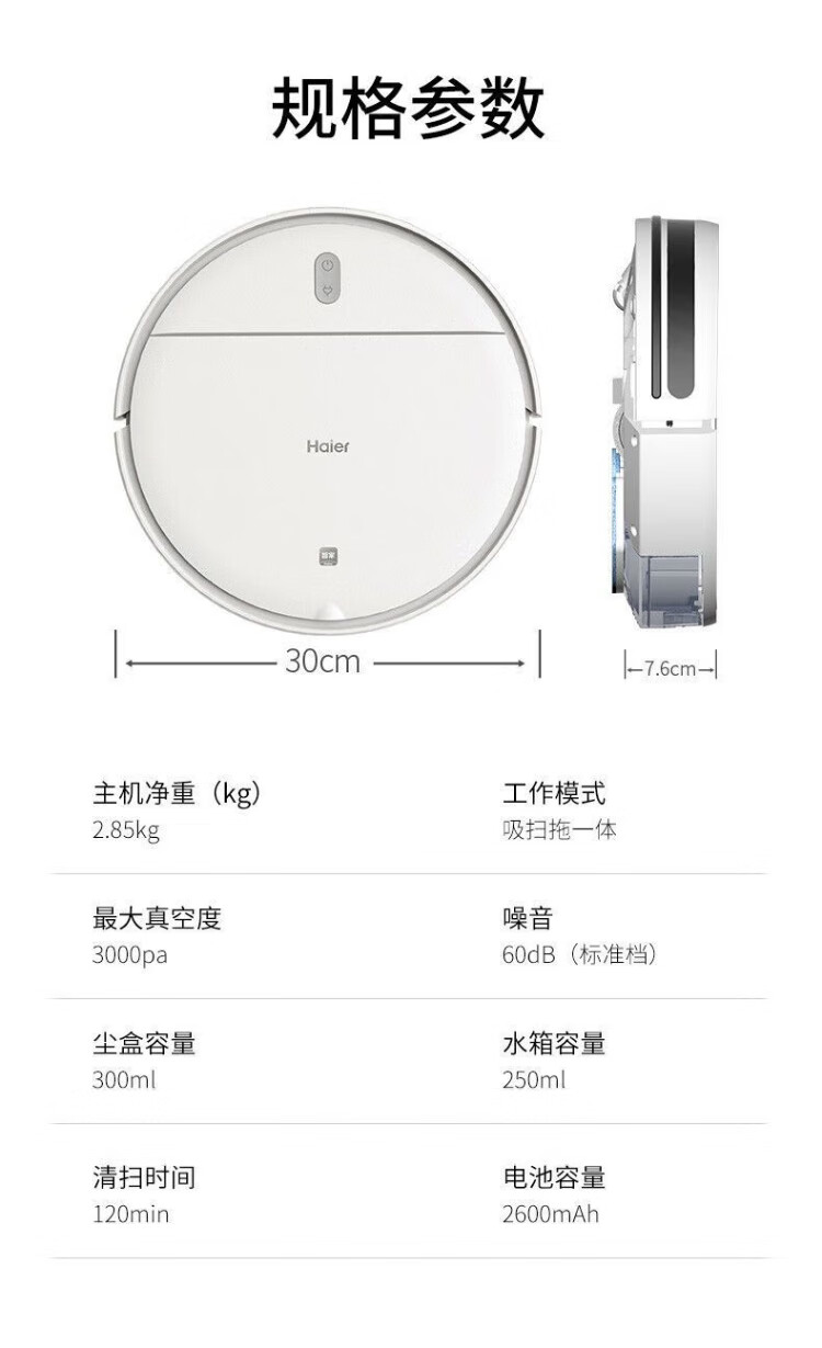 Haier sweeping robot, all-in-one sweeping and mopping home fully automatic intelligent mopping, sweeping and mopping, three-in-one edge cleaning, can be scheduled for automatic recharge, TL30U1, official standard configuration + multiple configurations (a set of mop + filter)