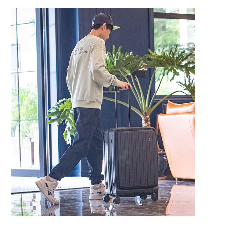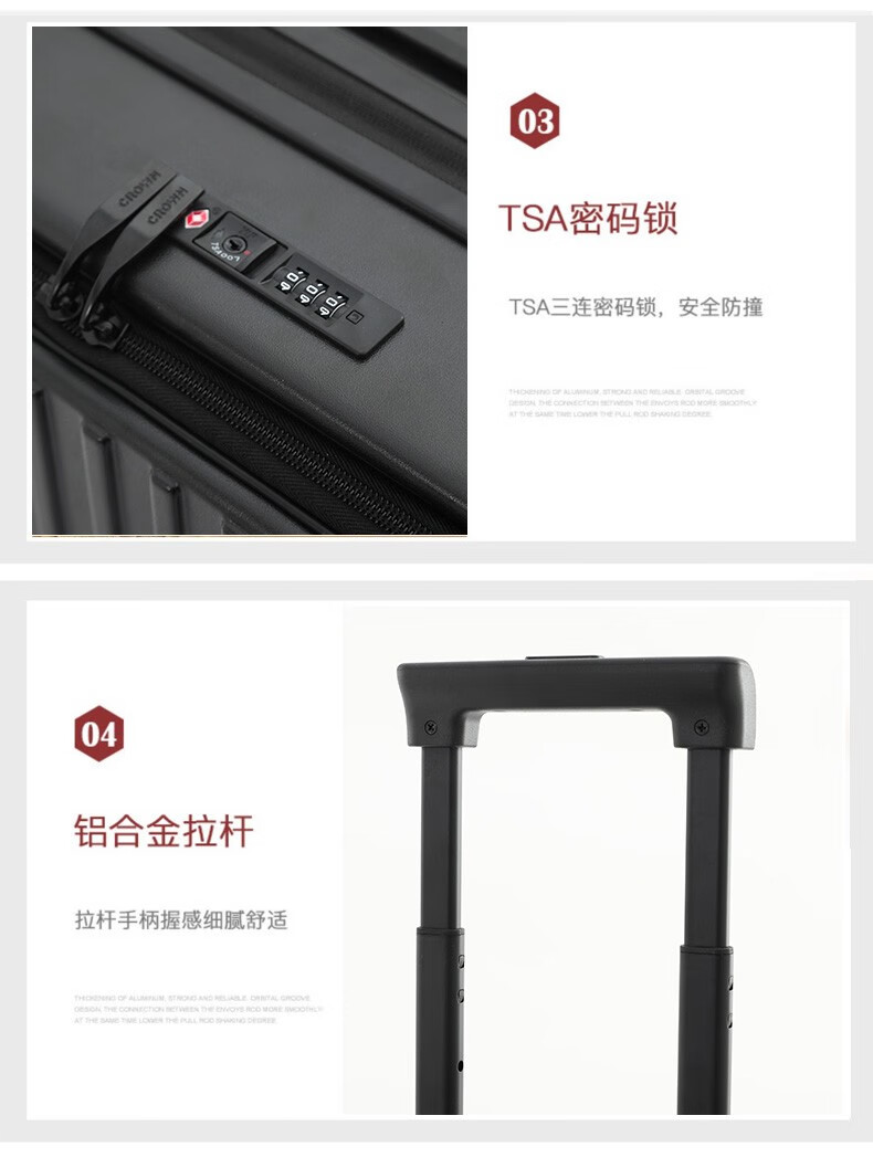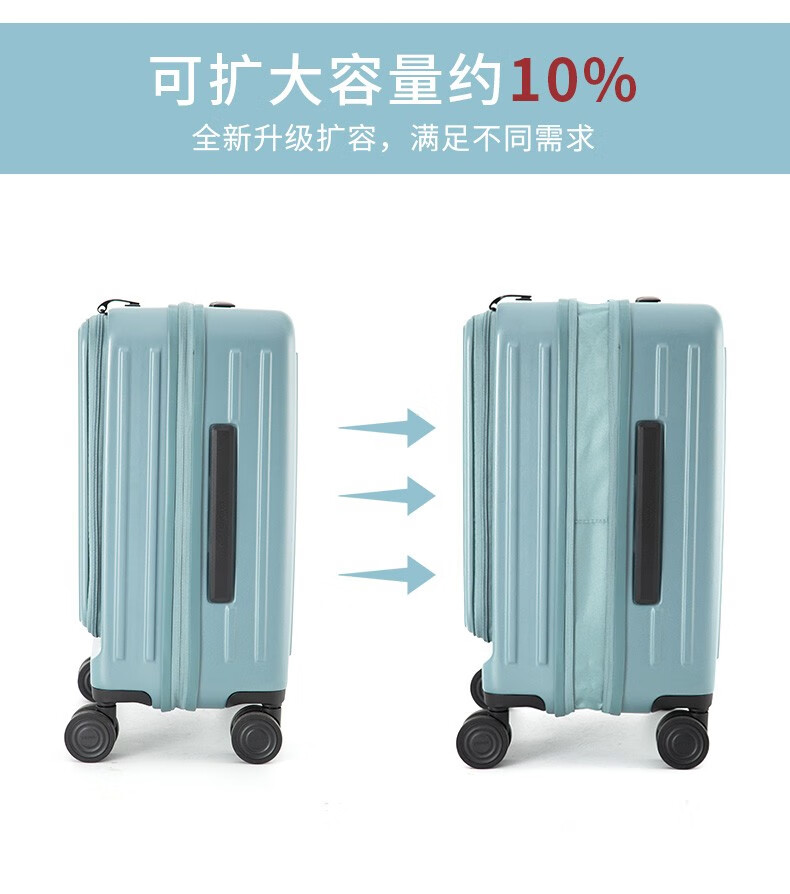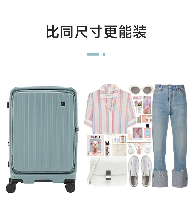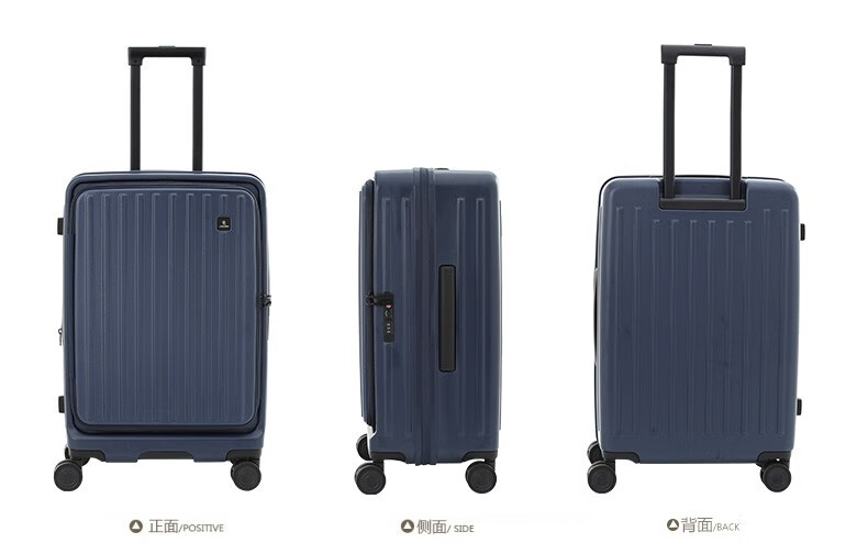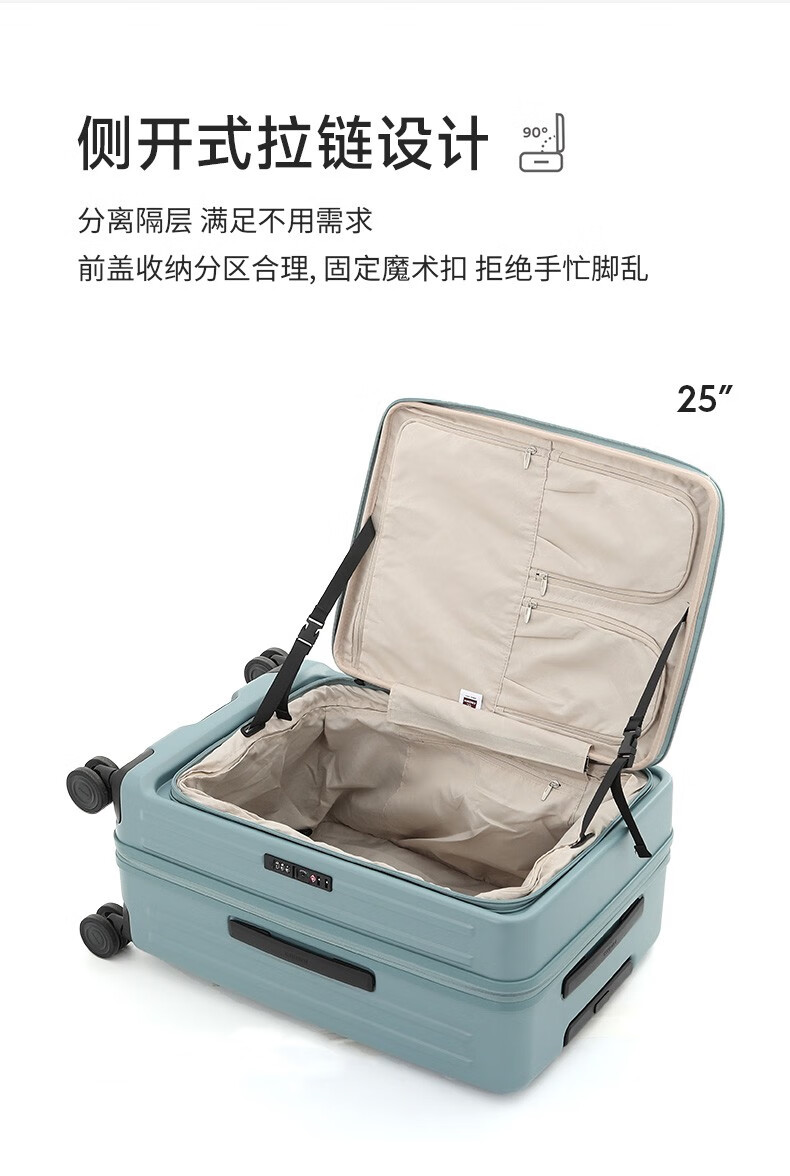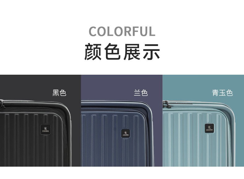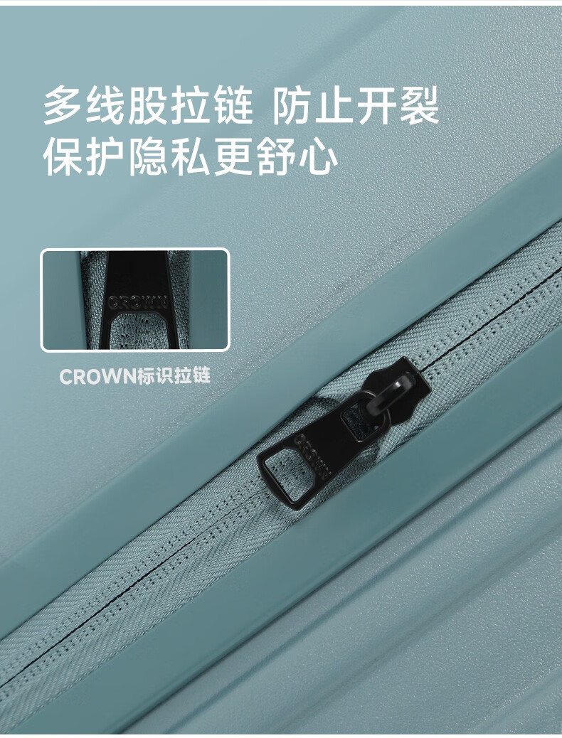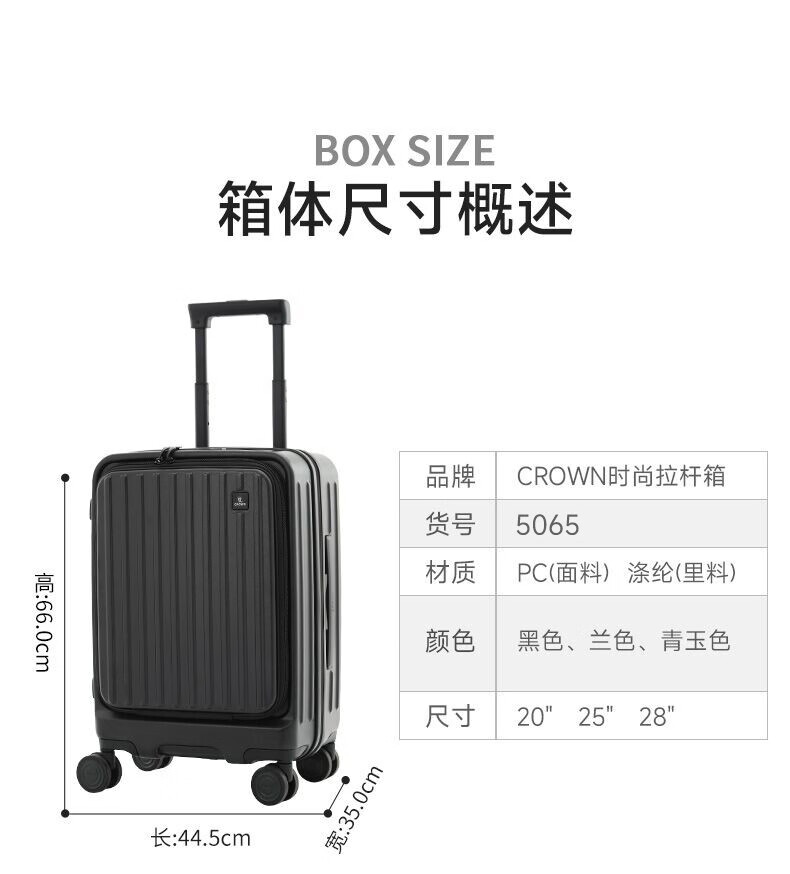 CROWN front-opening zipper suitcase, stylish travel lightweight extension trolley case 5065 sapphire color zipper 25 inches, checked luggage required