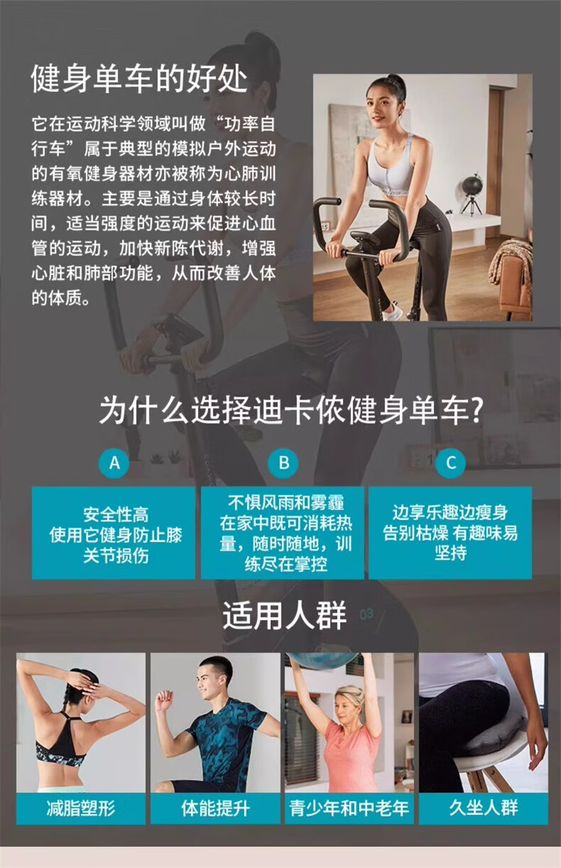 Decathlon exercise bike, aerobic fitness, comfortable and durable, home indoor silent exercise bike, exquisite black, no need to plug in, installation not included
