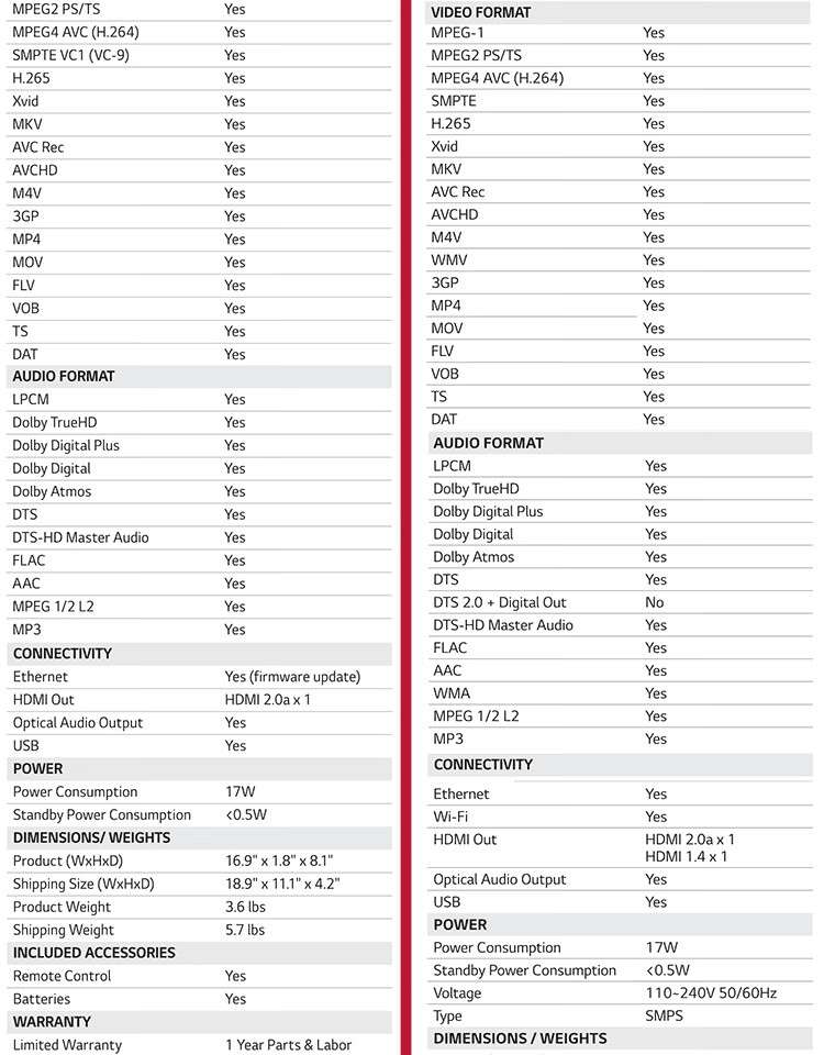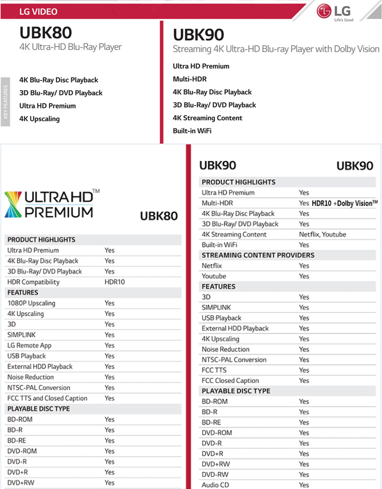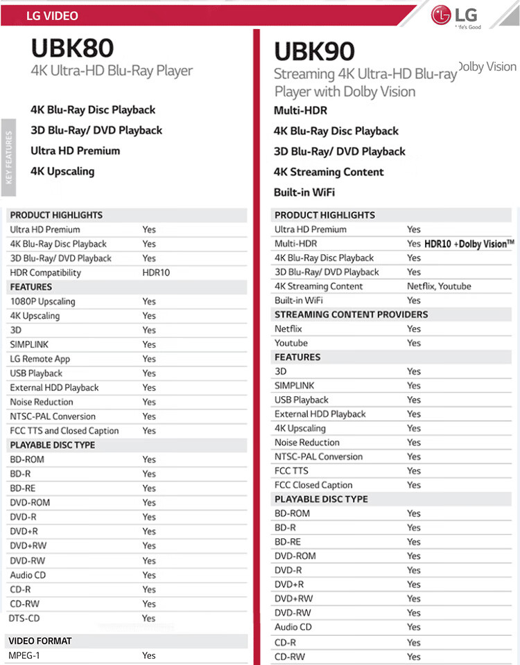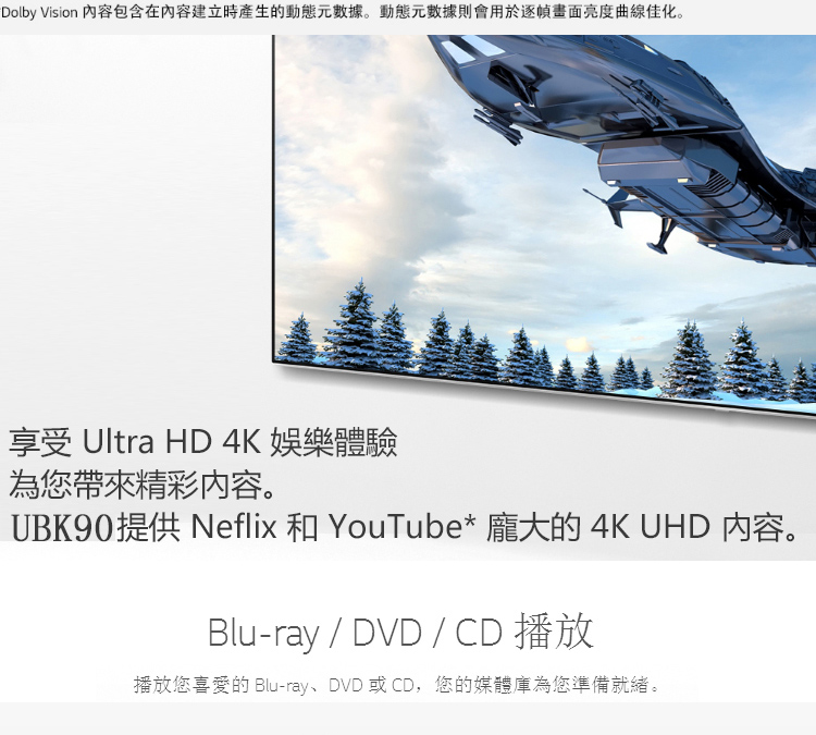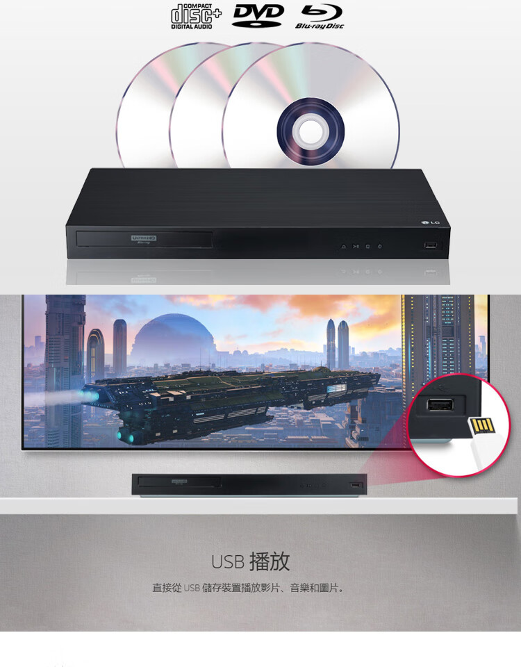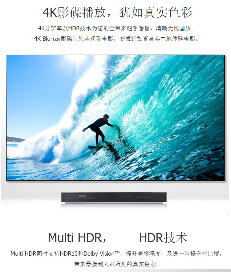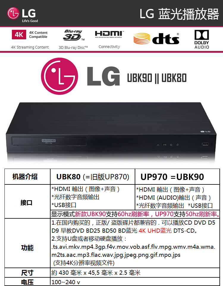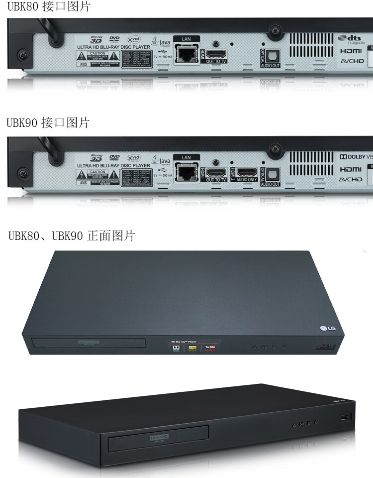LGUP970 UBK90 True 4K Blu-ray player for the elderly, 3D high-definition DVD player, CD player, standard configuration, dual HDMI optical fiber interface, official standard configuration