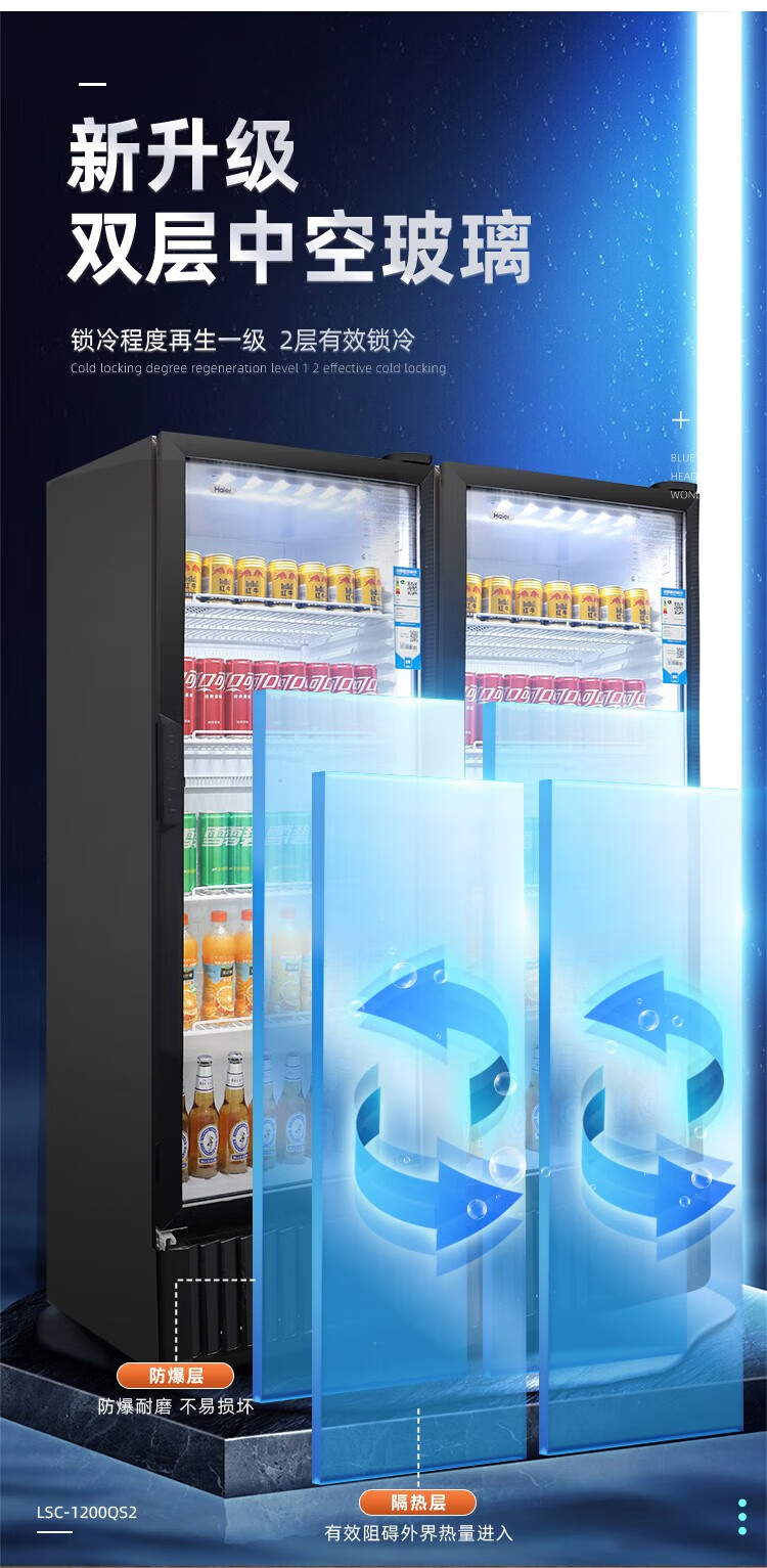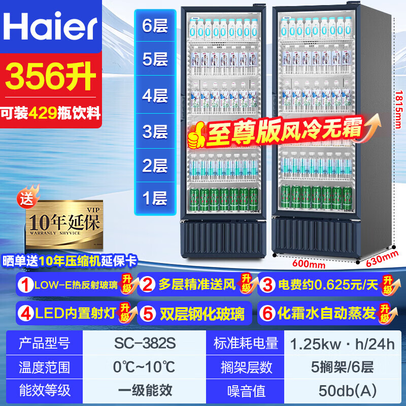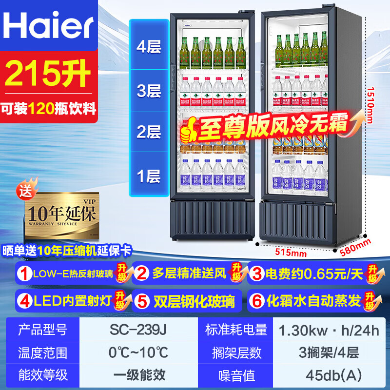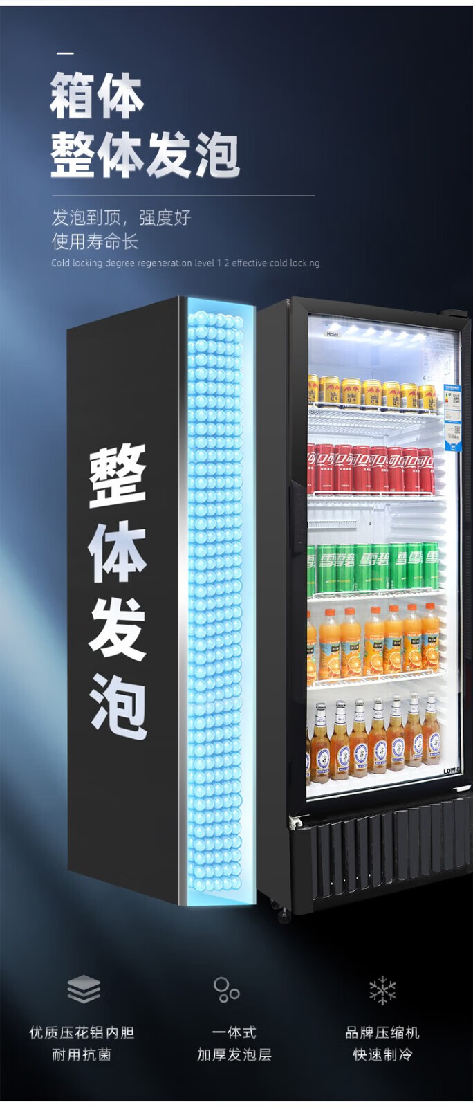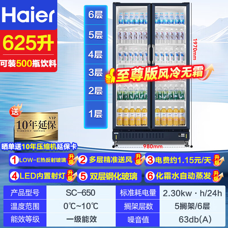 Haier Freezer Commercial Large Capacity Display Cabinet Vertical Beverage Cabinet Beer Refrigerator Air-cooled Frost-free First-Class Energy Efficiency Supermarket Fresh Cabinet Glass Door 607 Liters丨Air-cooled Frost-free丨First-Class Energy Efficiency丨Multi-layer Air Supply丨With Lights and Locks