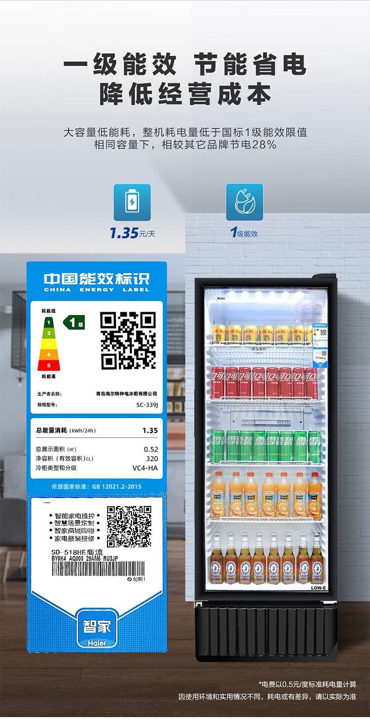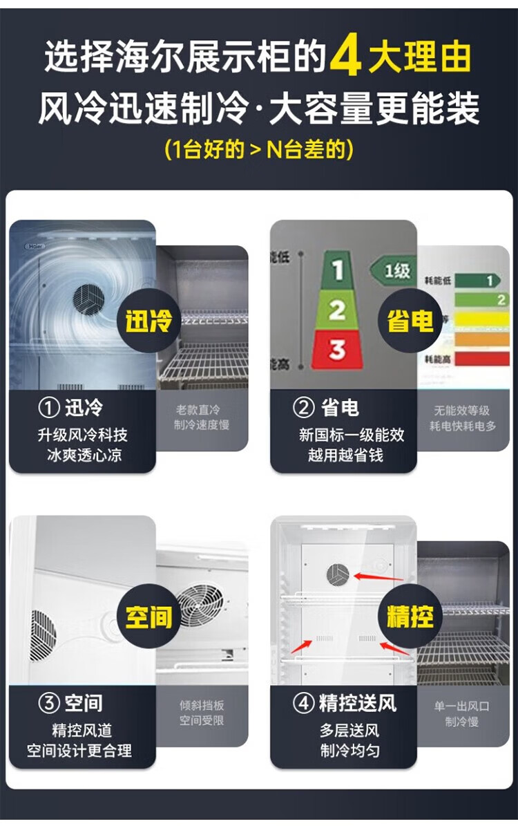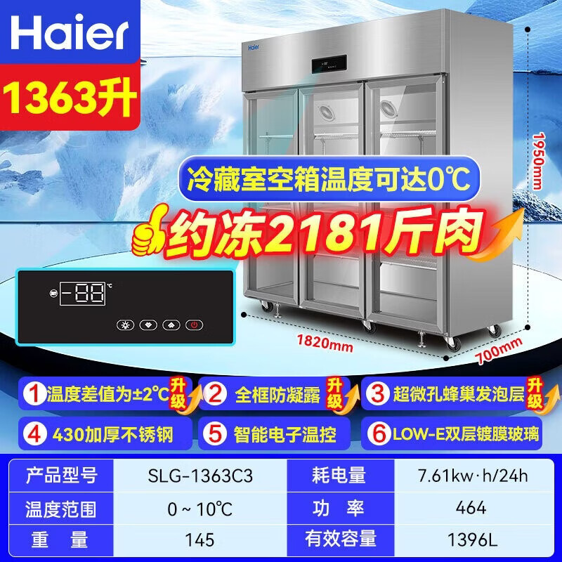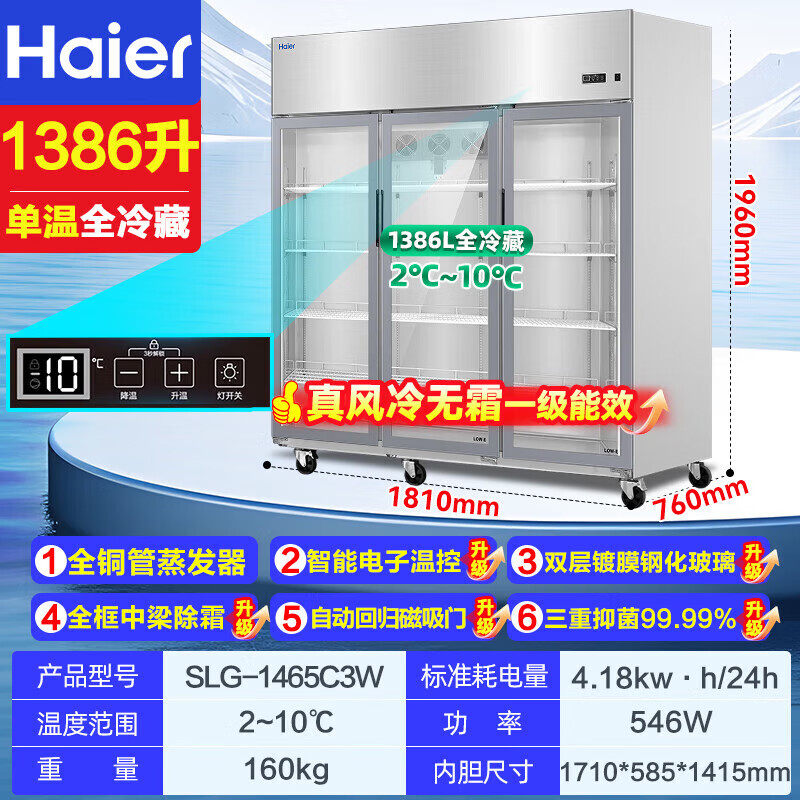 Haier Freezer Commercial Large Capacity Display Cabinet Vertical Beverage Cabinet Beer Refrigerator Air-cooled Frost-free First-Class Energy Efficiency Supermarket Fresh Cabinet Glass Door 607 Liters丨Air-cooled Frost-free丨First-Class Energy Efficiency丨Multi-layer Air Supply丨With Lights and Locks