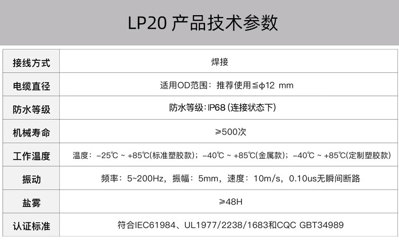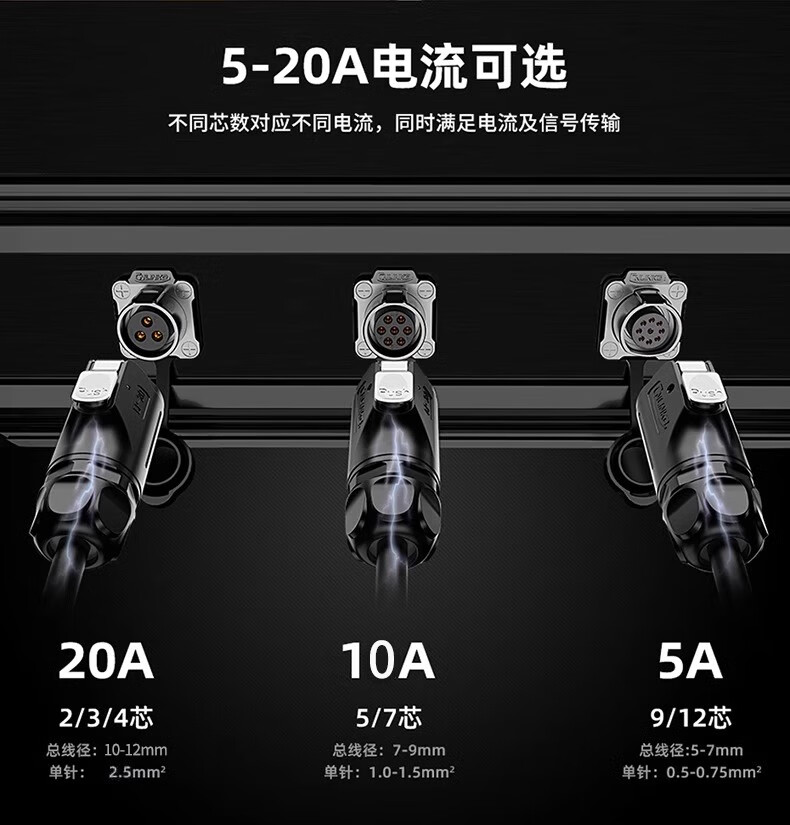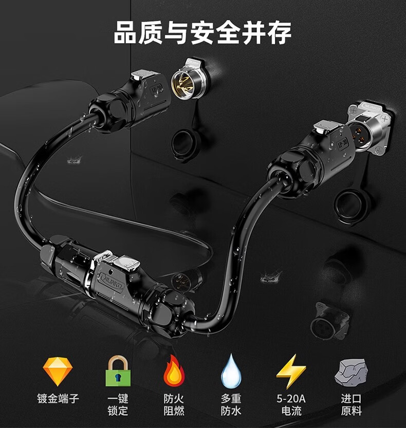 Lingke LP20 industrial waterproof connector 3-pin 2 4 5 9 12-pin male and female quick docking aviation plug socket IP68 LP20 type 2-pin male plug