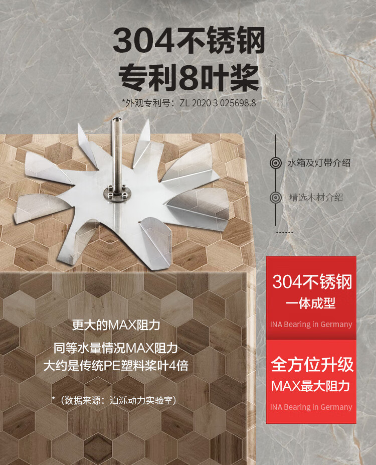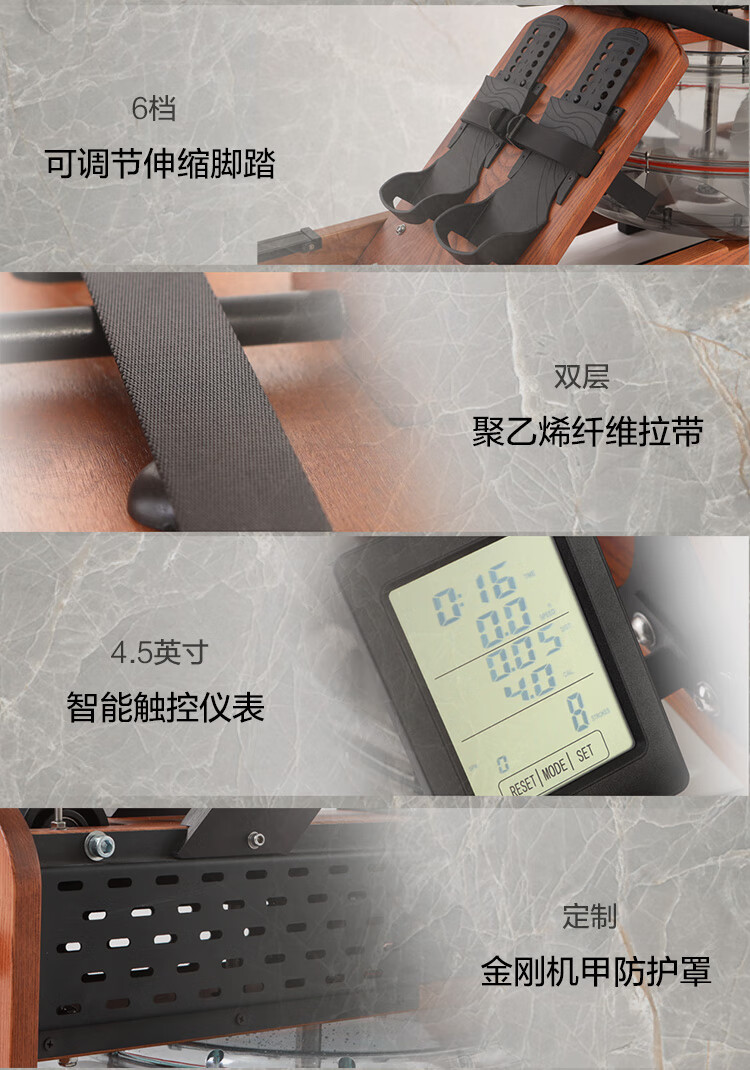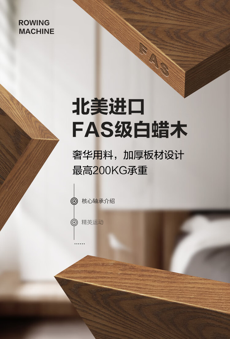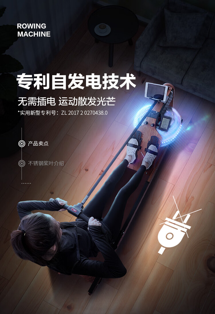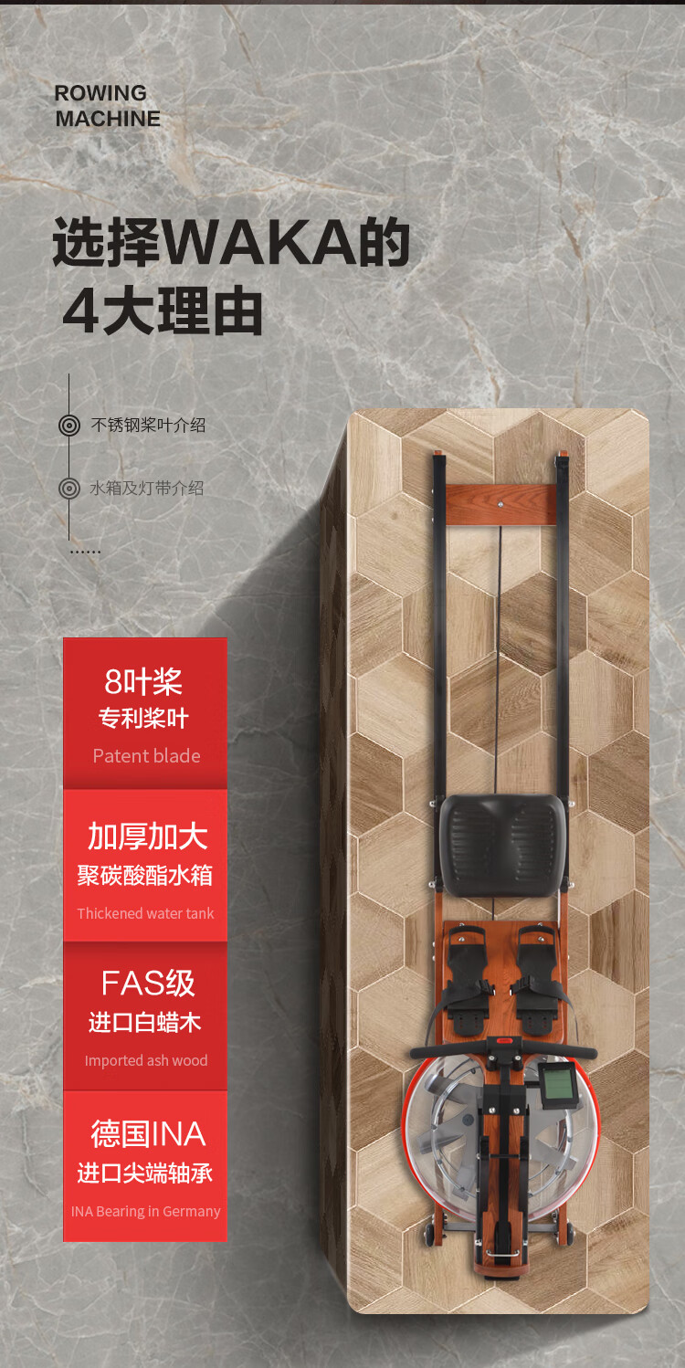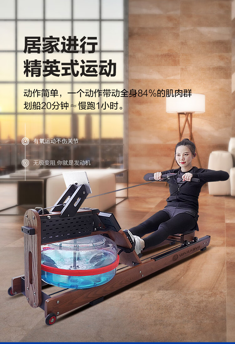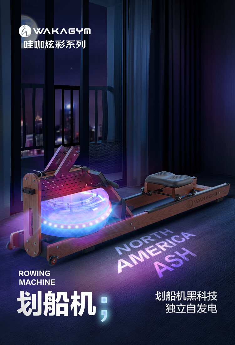 Wakagym self-generating atmosphere light rowing machine household water resistance intelligent APP imported solid wood double-track rowing machine ash self-generating atmosphere light WK-20