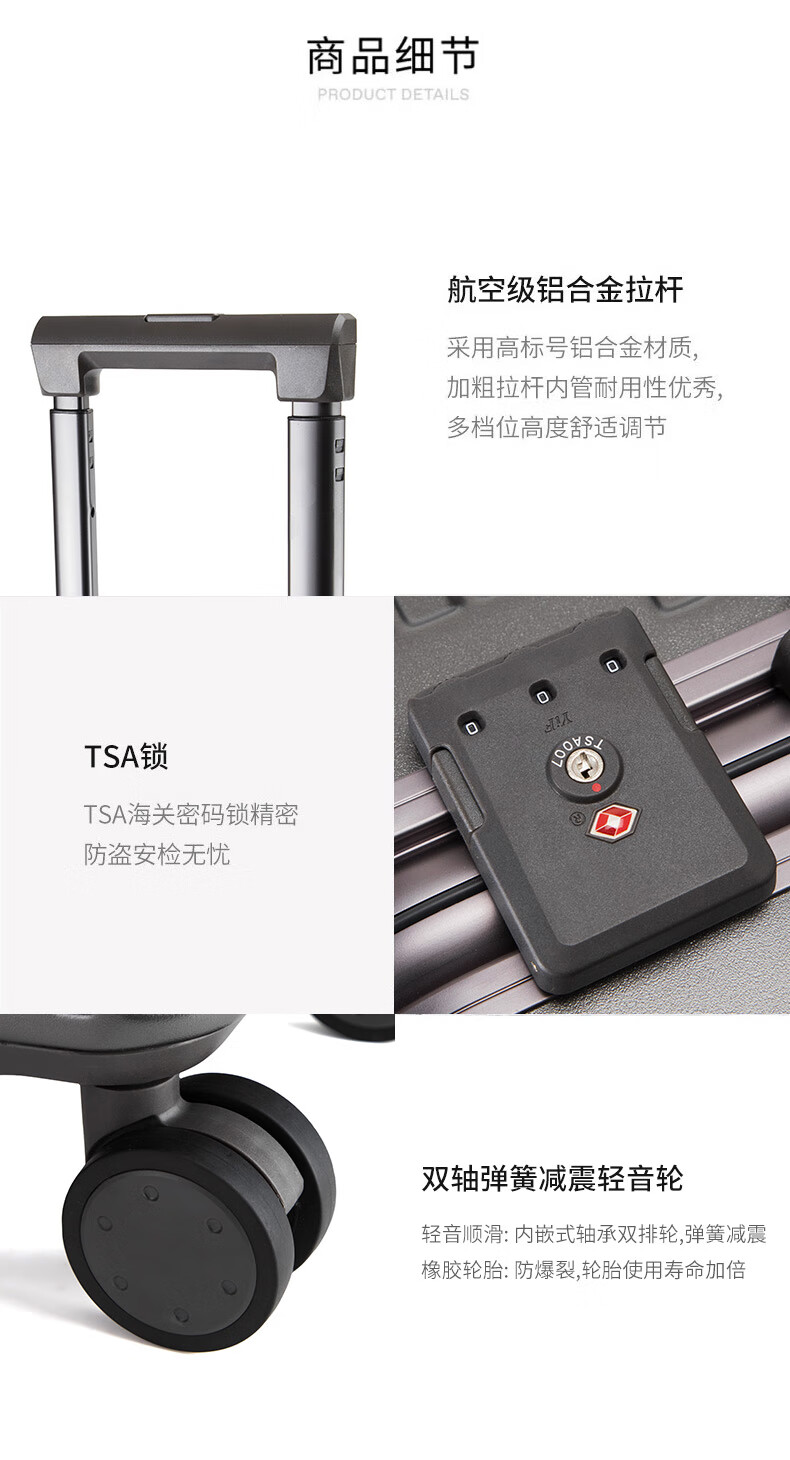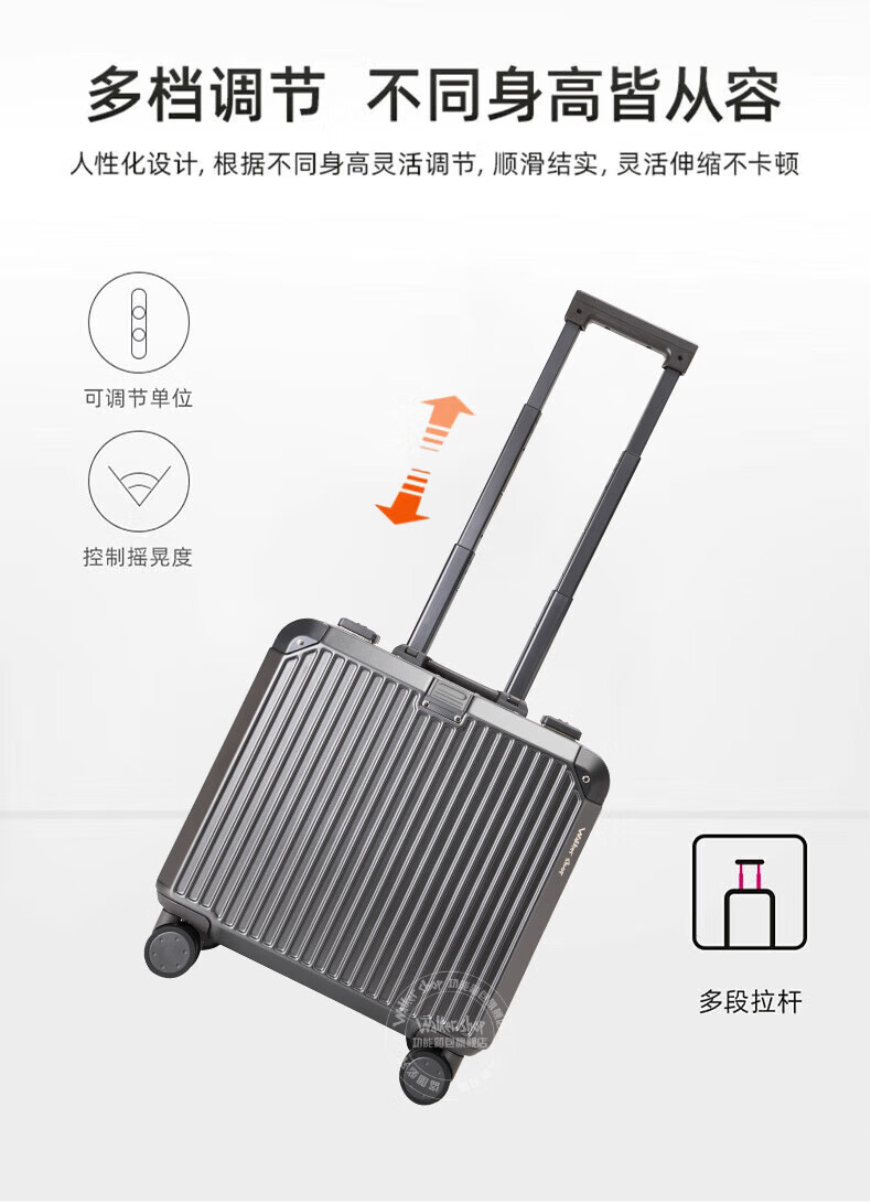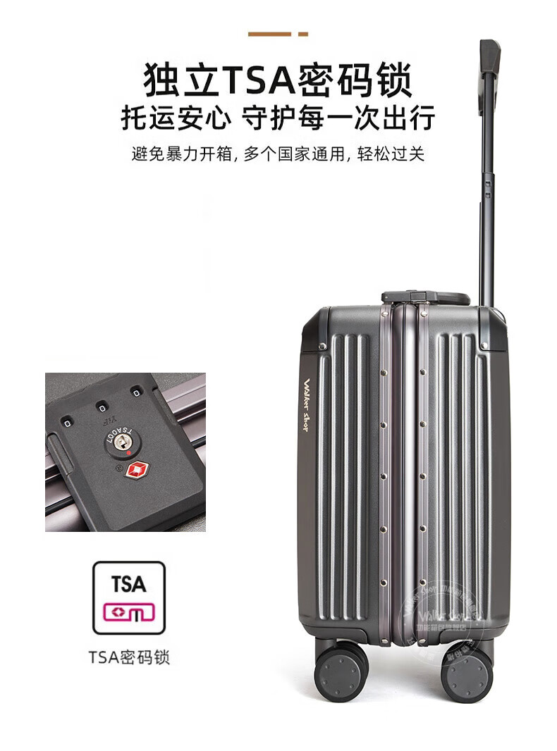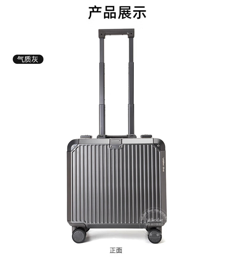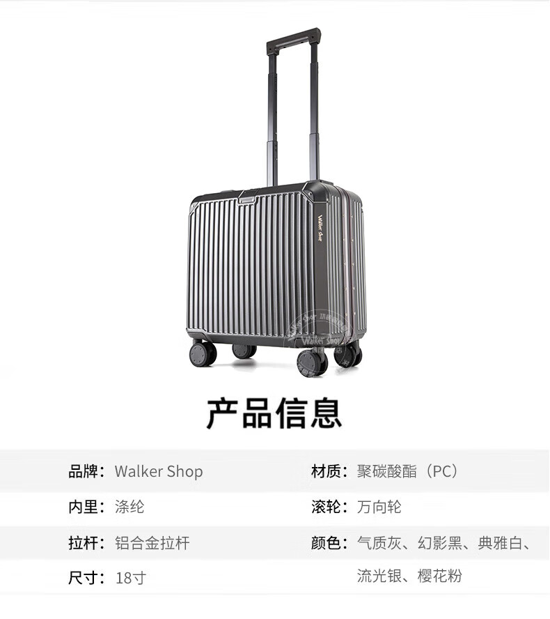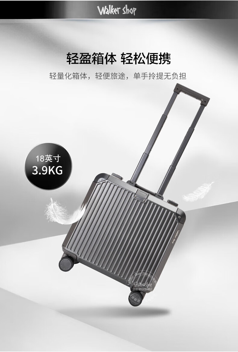 Walker Shop light luxury brand luggage small boarding suitcase trolley case 18 inches lightweight aluminum frame travel box temperament gray 18 inches