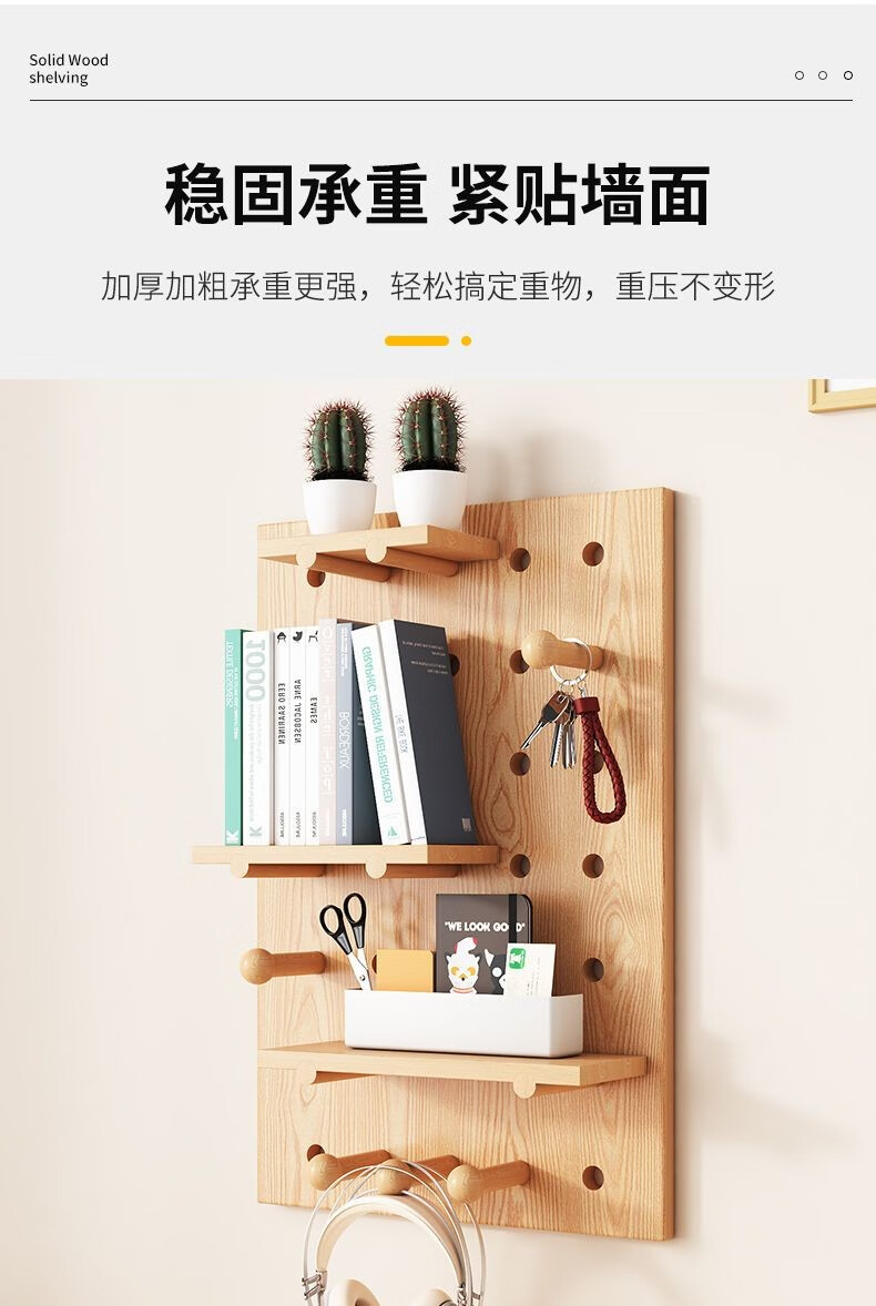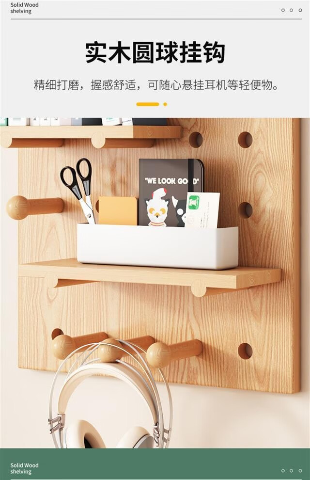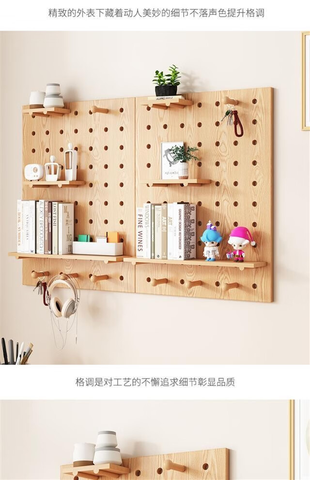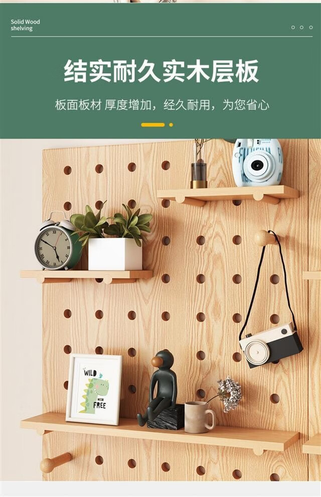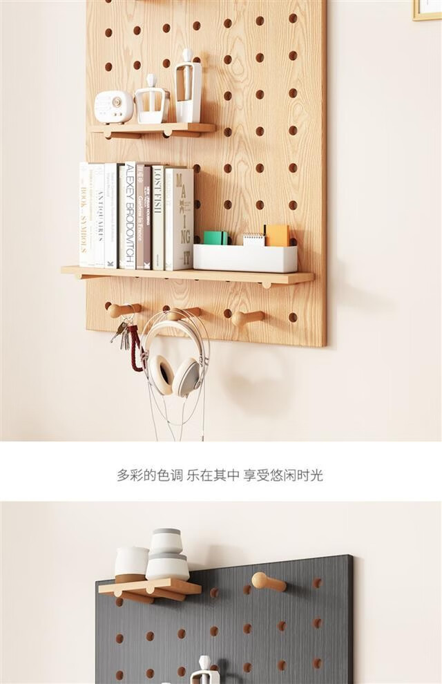 Musong hole board storage rack no punching custom solid wood color matchstick shape cartoon pattern storage rack hook accessory package 1 default