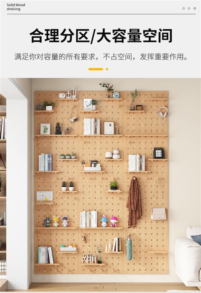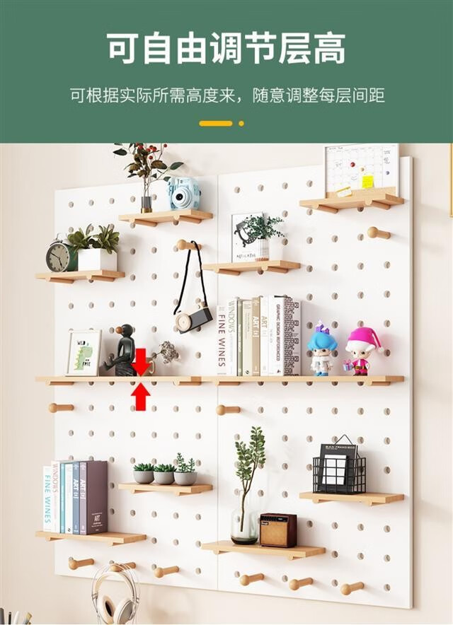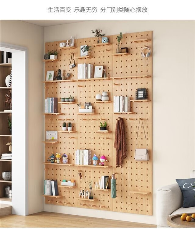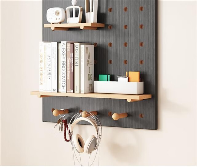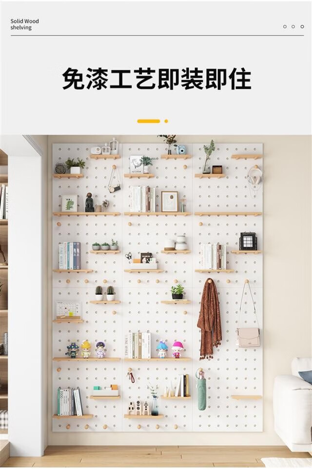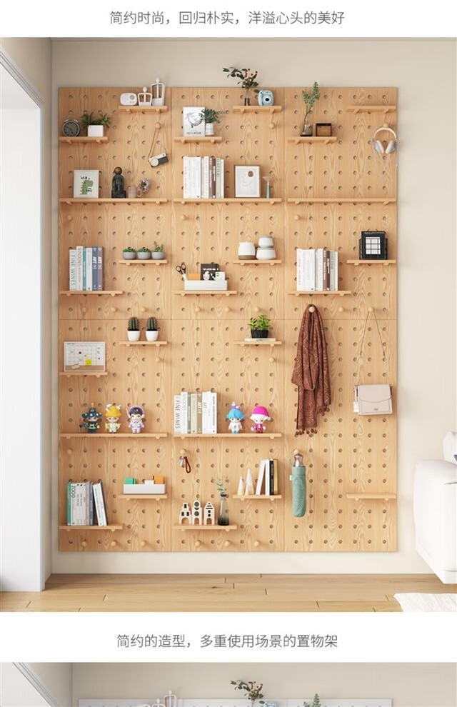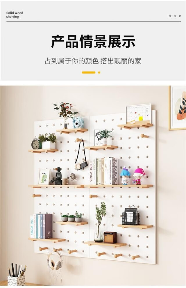 Musong hole board storage rack no punching custom solid wood color matchstick shape cartoon pattern storage rack hook accessory package 1 default