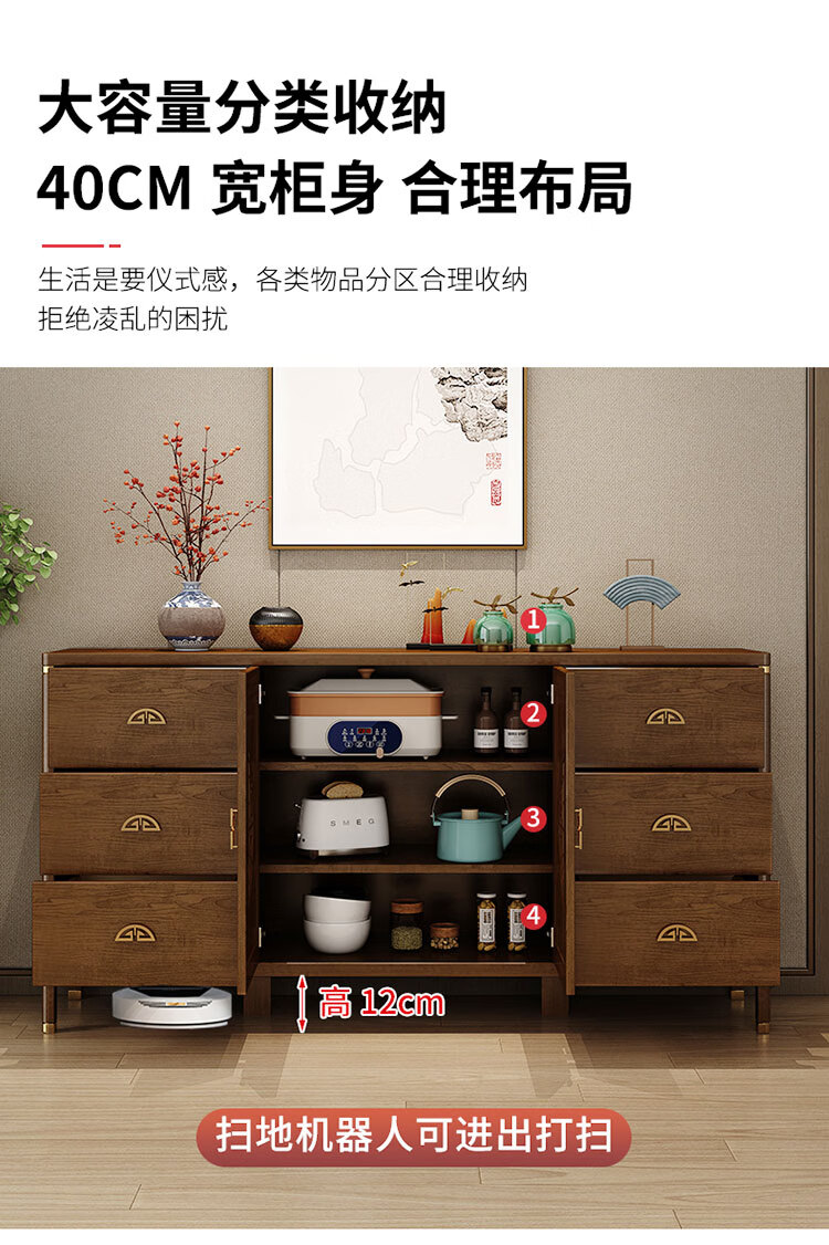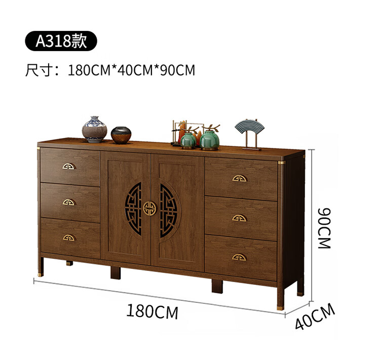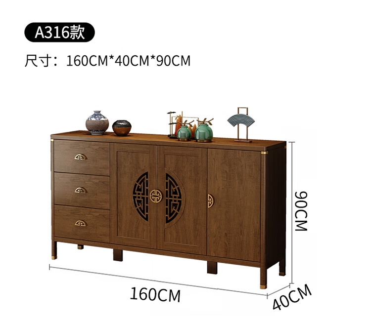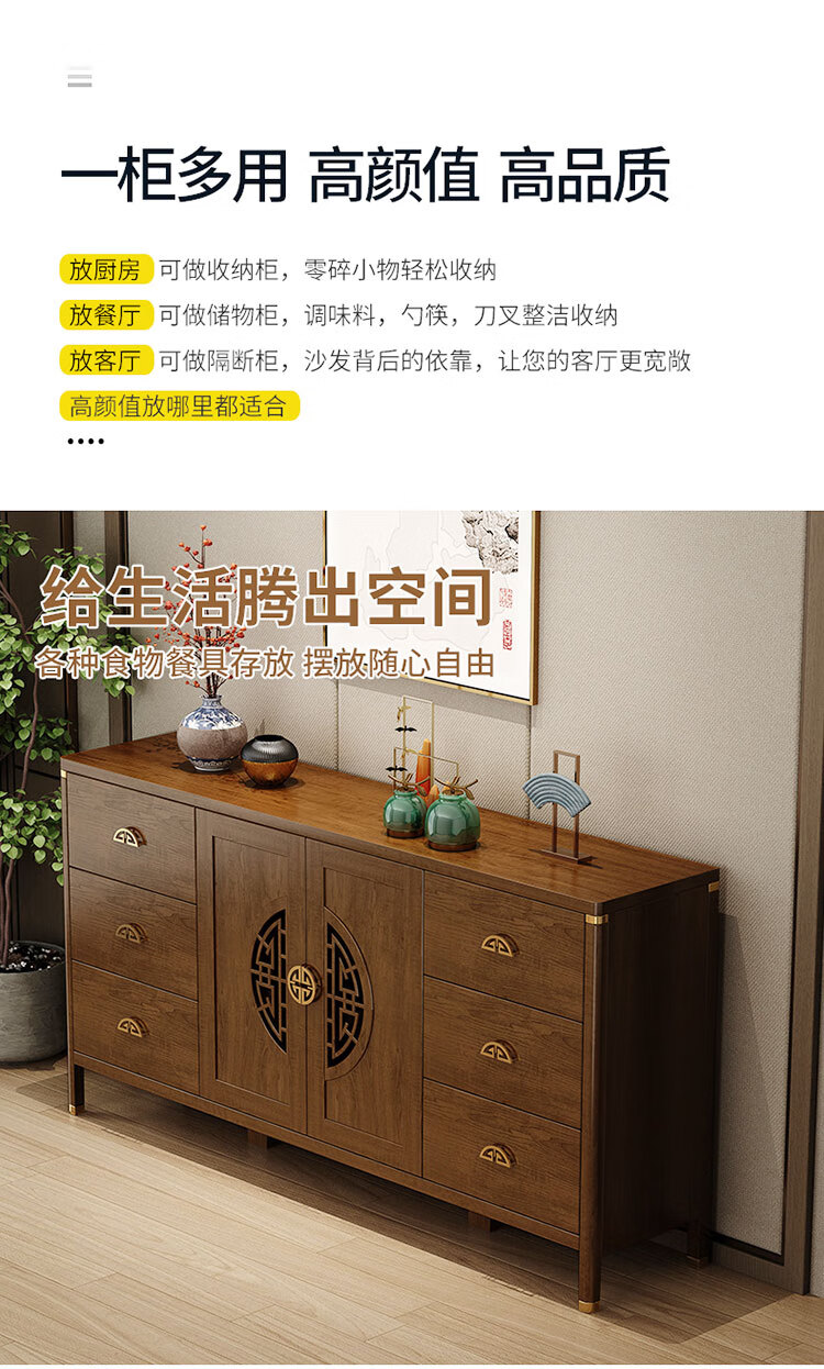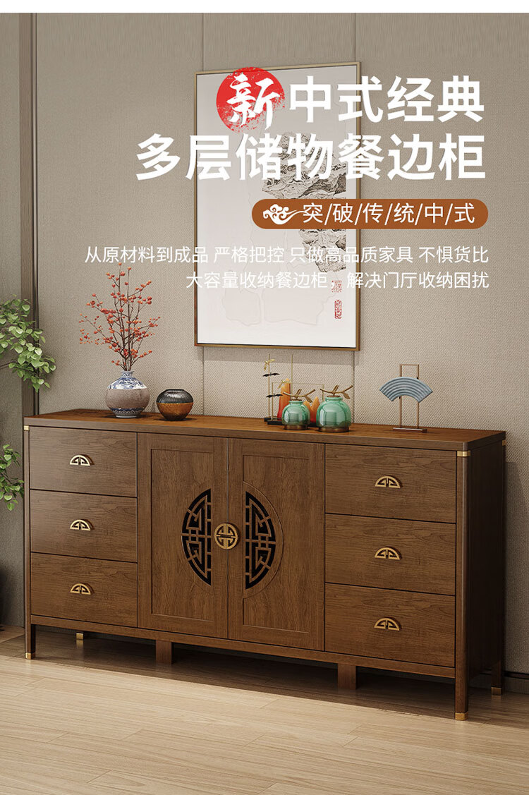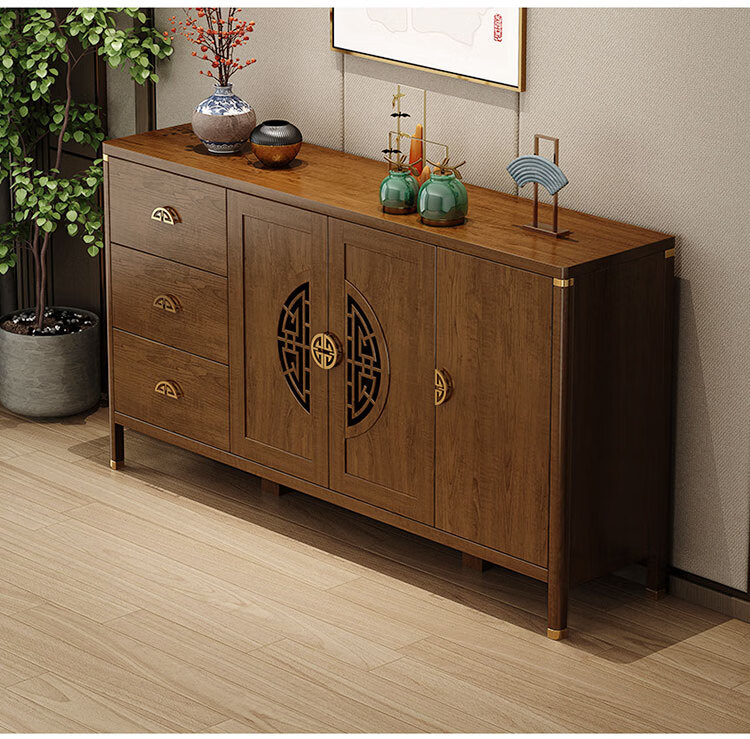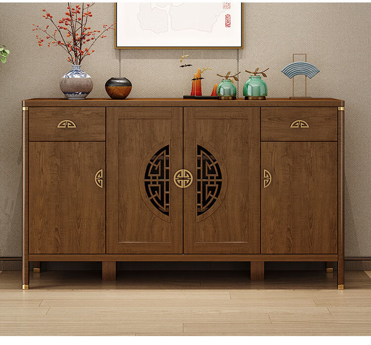 Aisifu new Chinese style sideboard storage cabinet solid wood frame living room wall wine cabinet multifunctional cupboard dining side tea cabinet A310