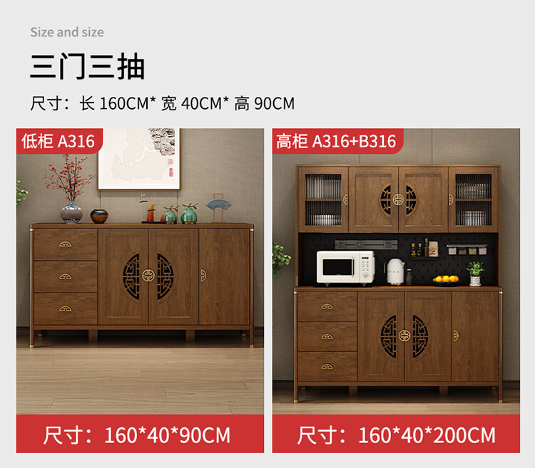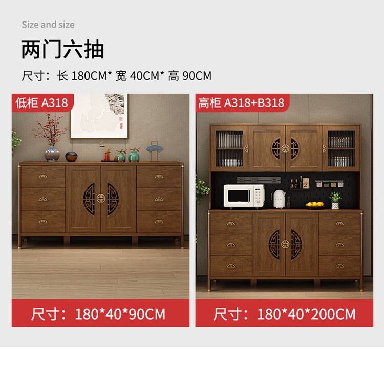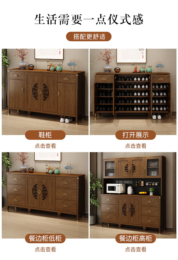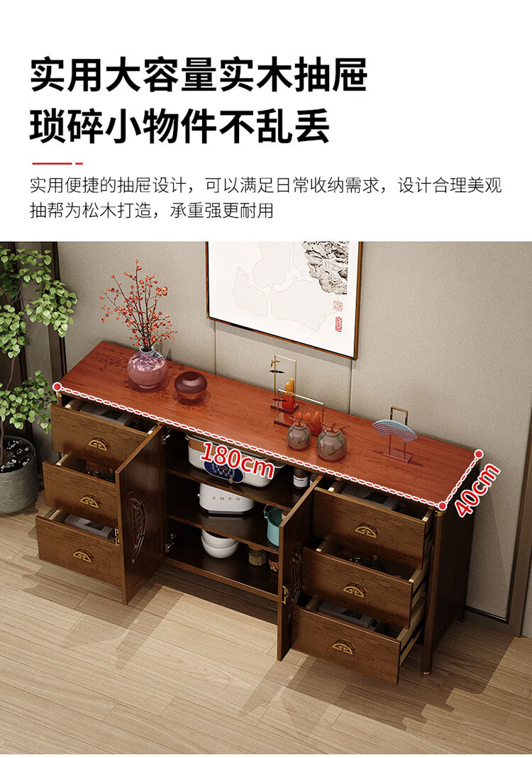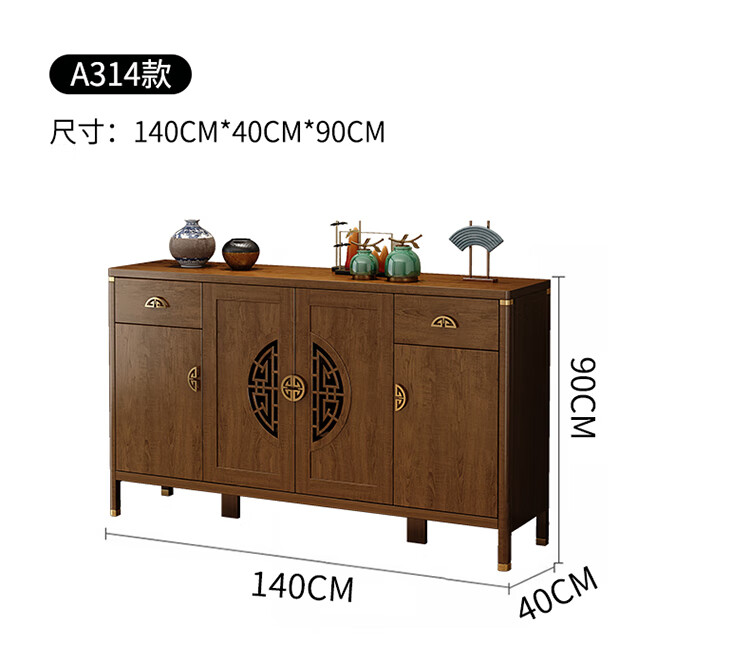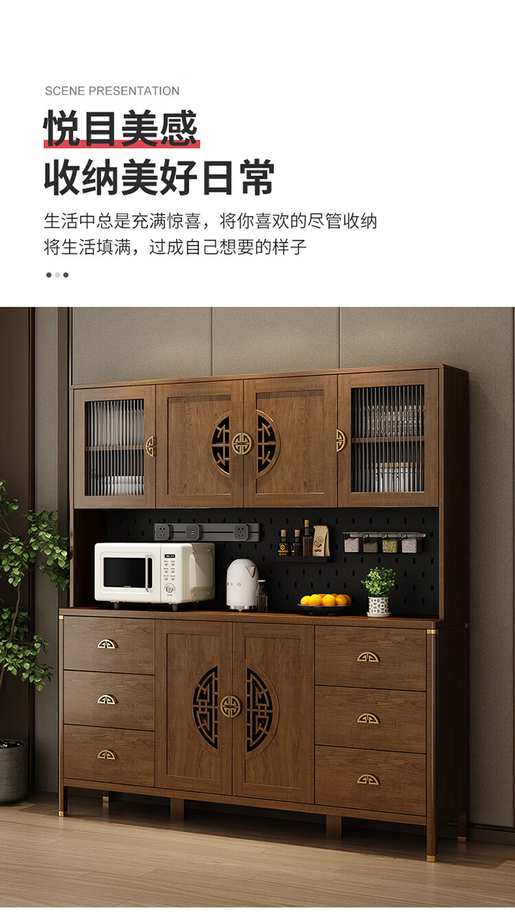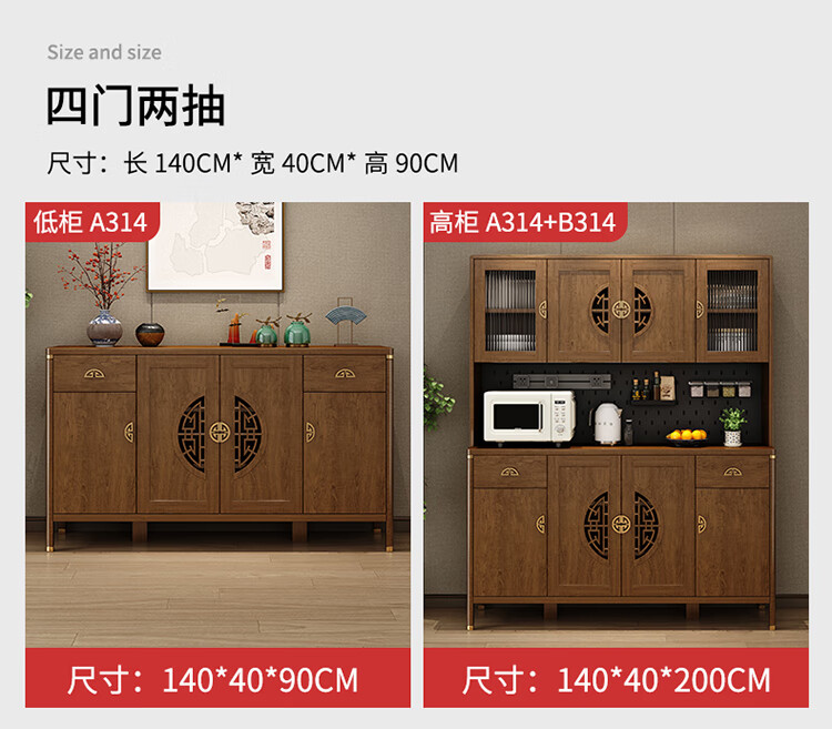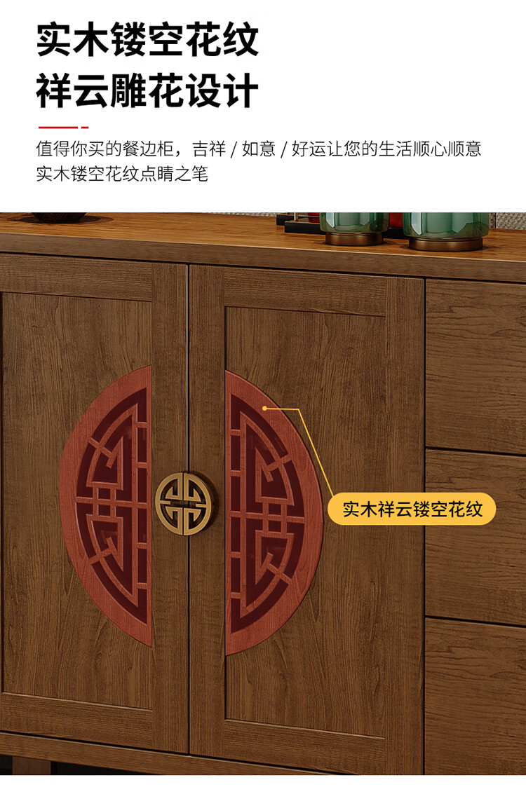 Aisifu new Chinese style sideboard storage cabinet solid wood frame living room wall wine cabinet multifunctional cupboard dining side tea cabinet A310