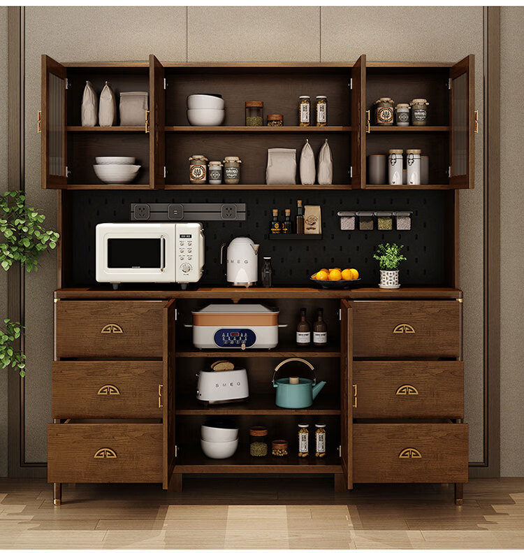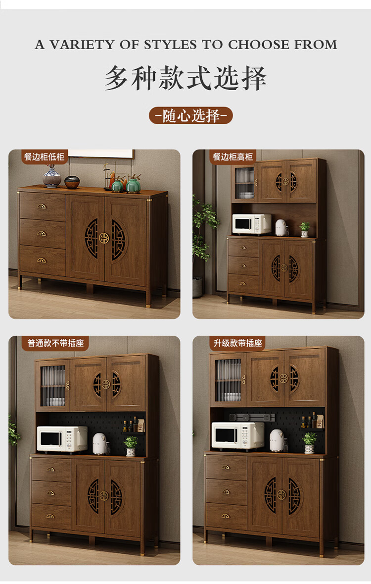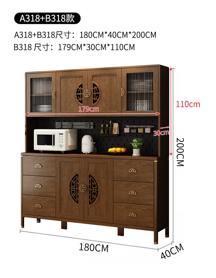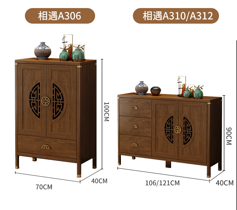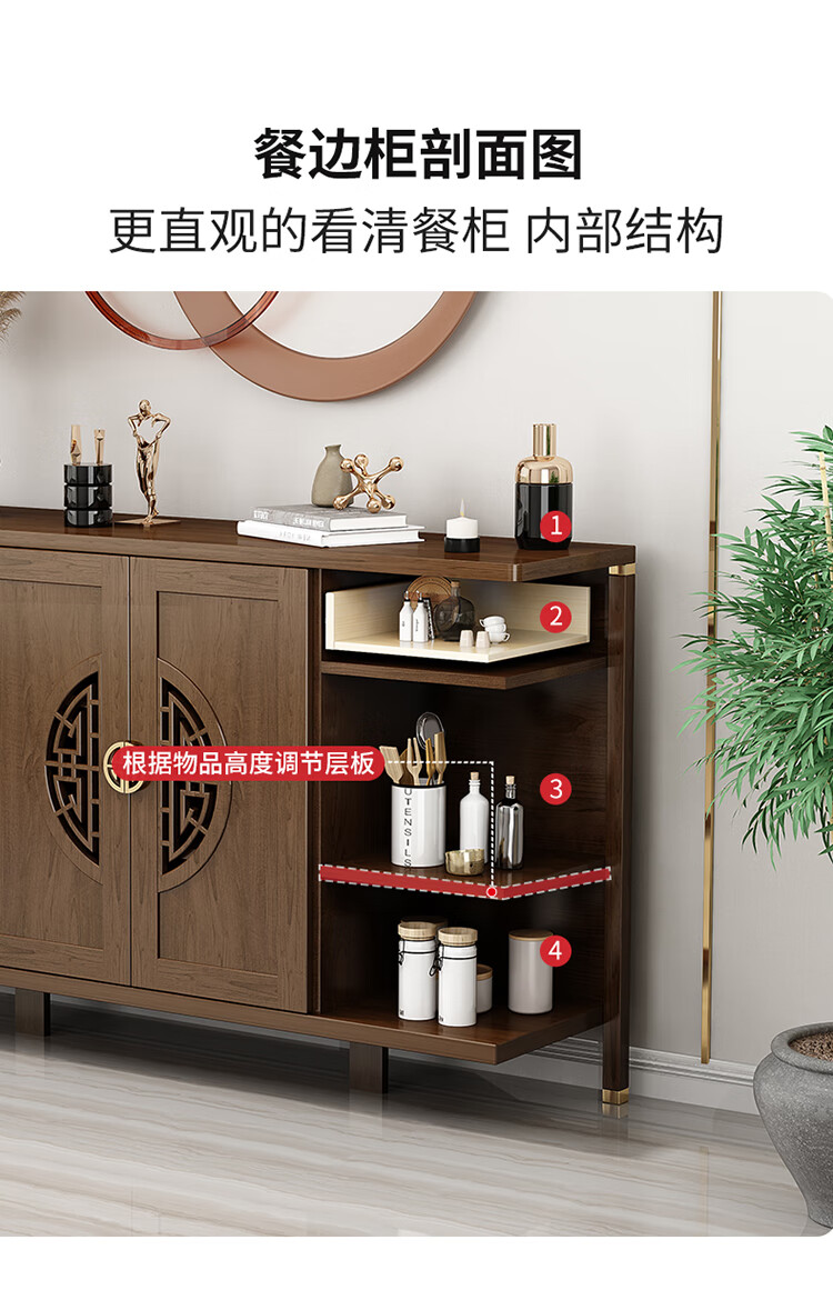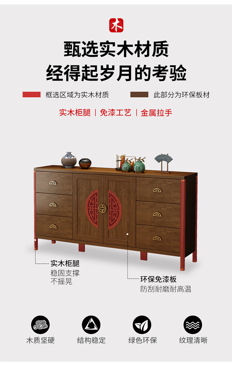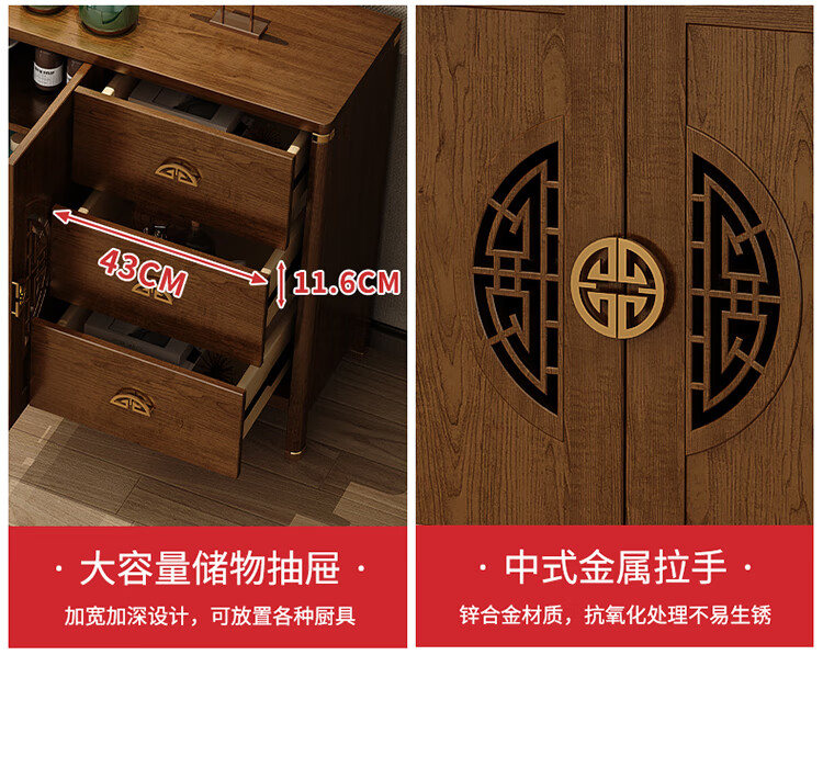 Aisifu new Chinese style sideboard storage cabinet solid wood frame living room wall wine cabinet multifunctional cupboard dining side tea cabinet A310
