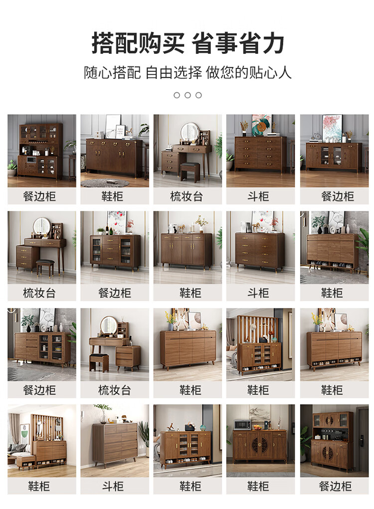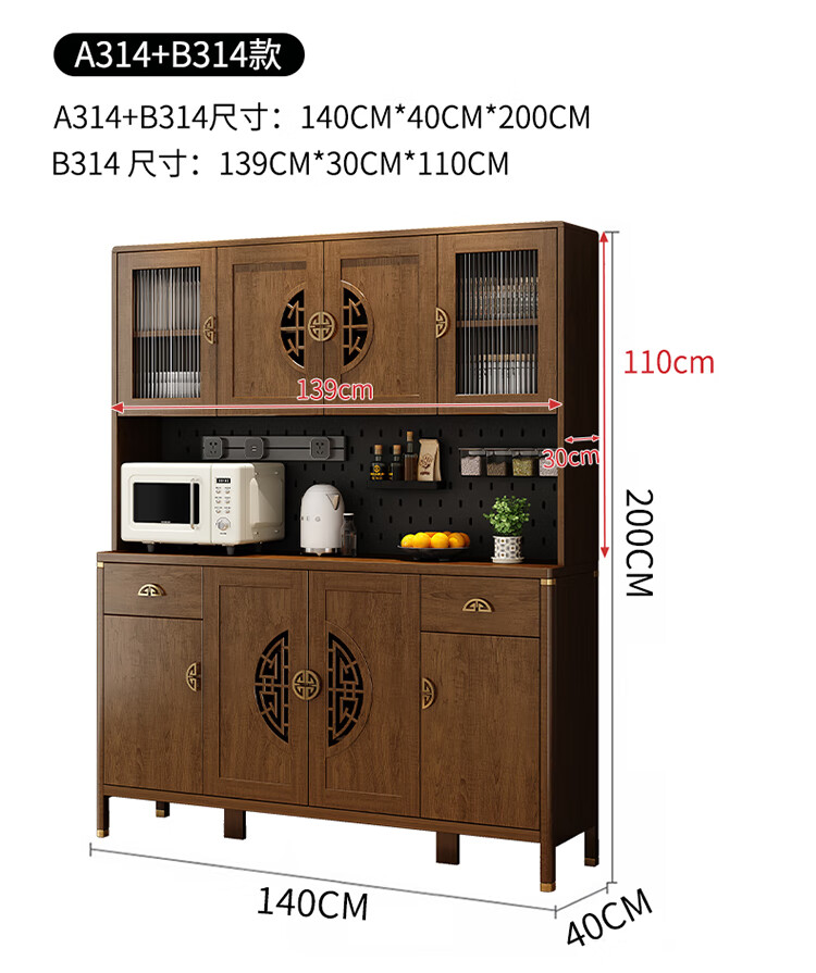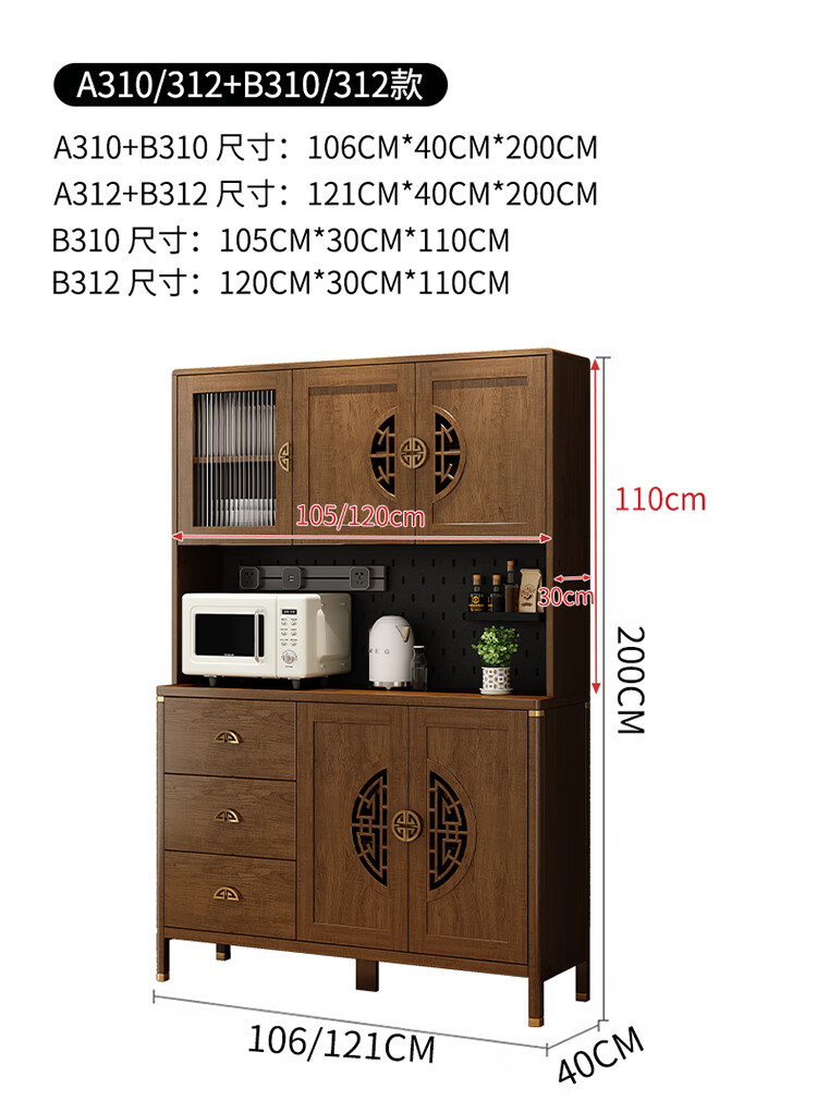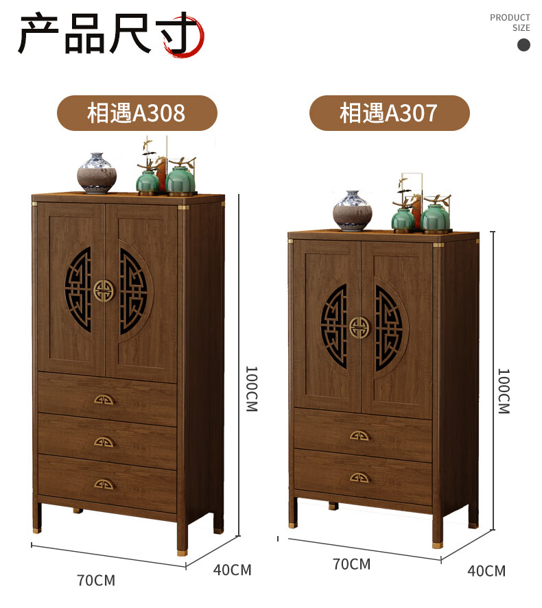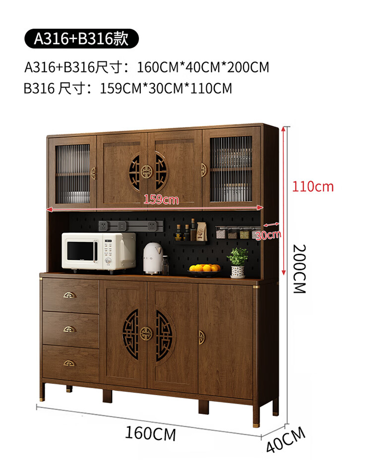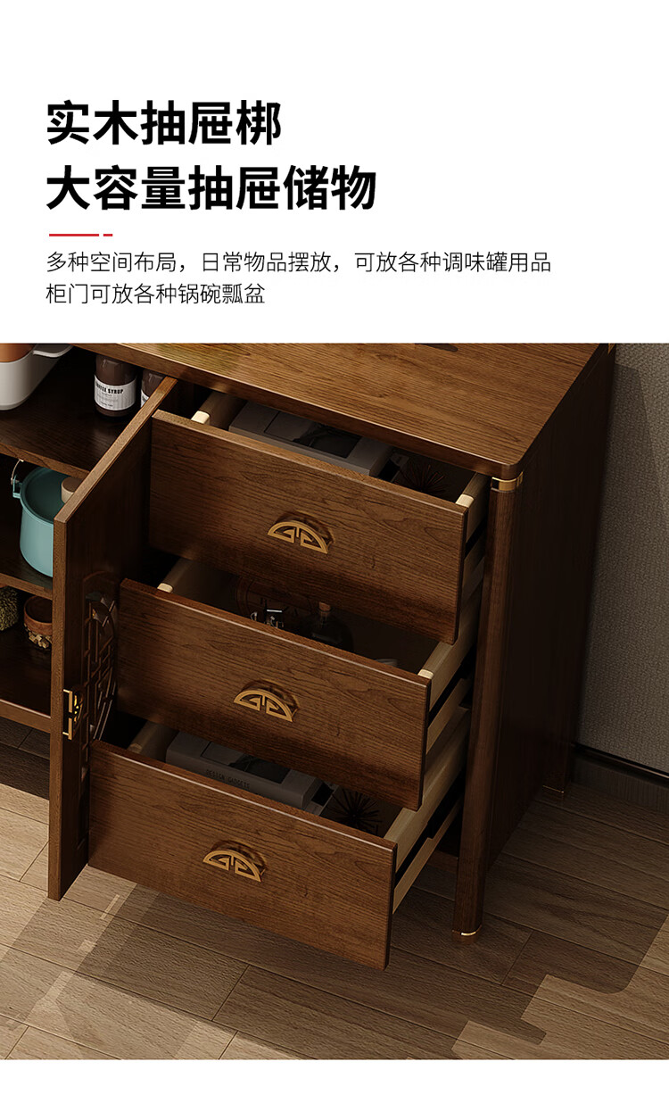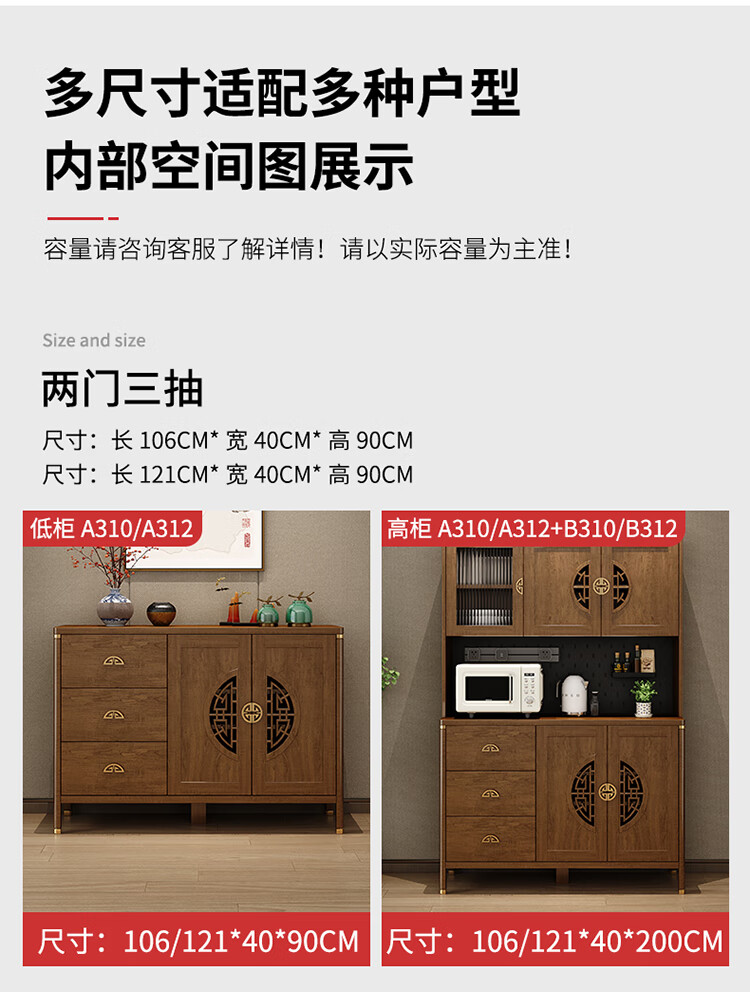 Aisifu new Chinese style sideboard storage cabinet solid wood frame living room wall wine cabinet multifunctional cupboard dining side tea cabinet A310