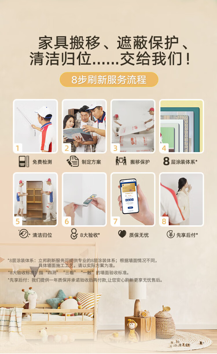 Nippon Paint refresh service children's room latex paint paint wall painting unit price per square meter children's room square meter quotation