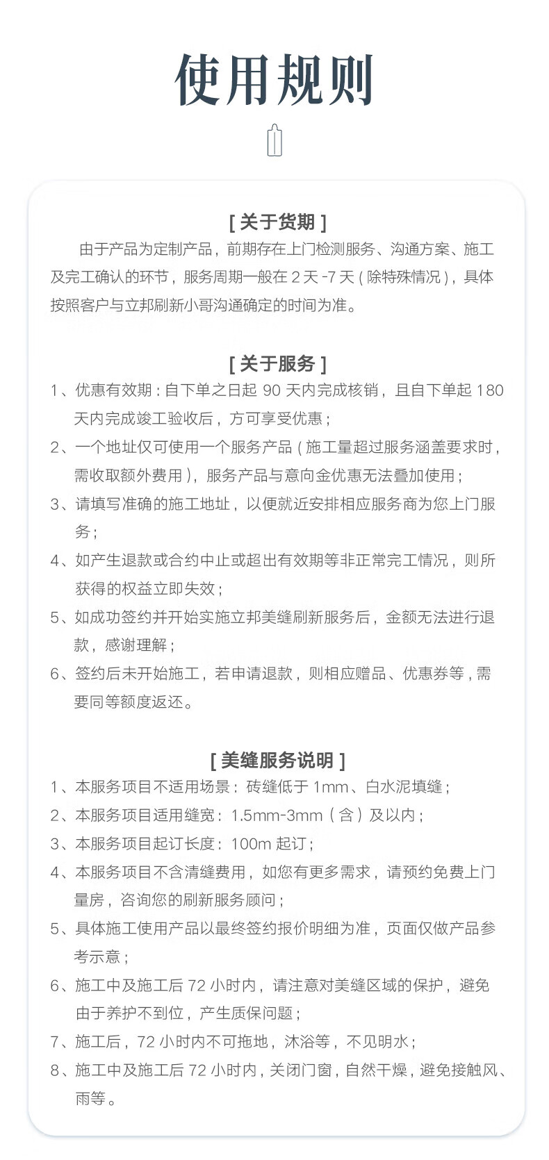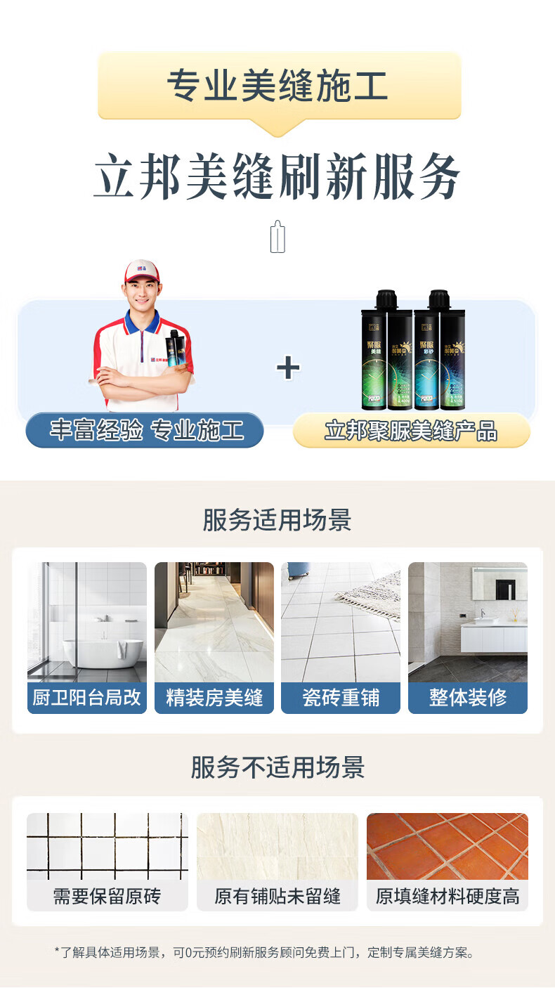Nippon Paint refreshes seam service. Polyurea seam refreshes ceramic tile and floor tile joint seam agent. Seam waterproofing door-to-door service. Polyurea seam 12 yuan/m (minimum order of 100m)