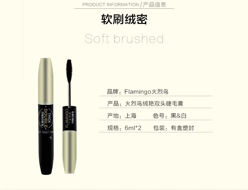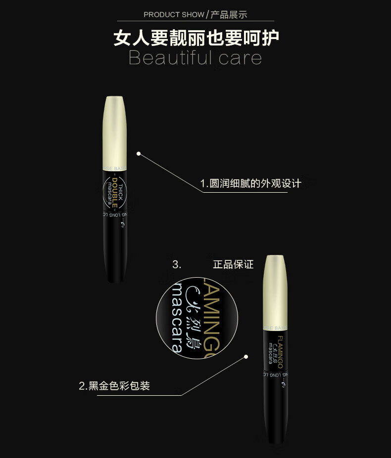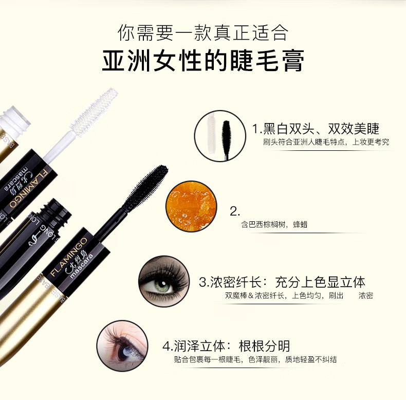 Flamingo double-ended mascara waterproof, long and non-smudged 6208, curling, not easy to remove makeup, extended and encrypted 1 pack