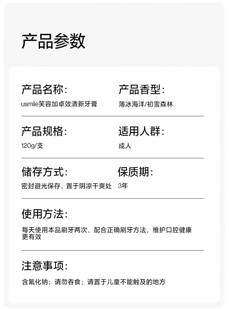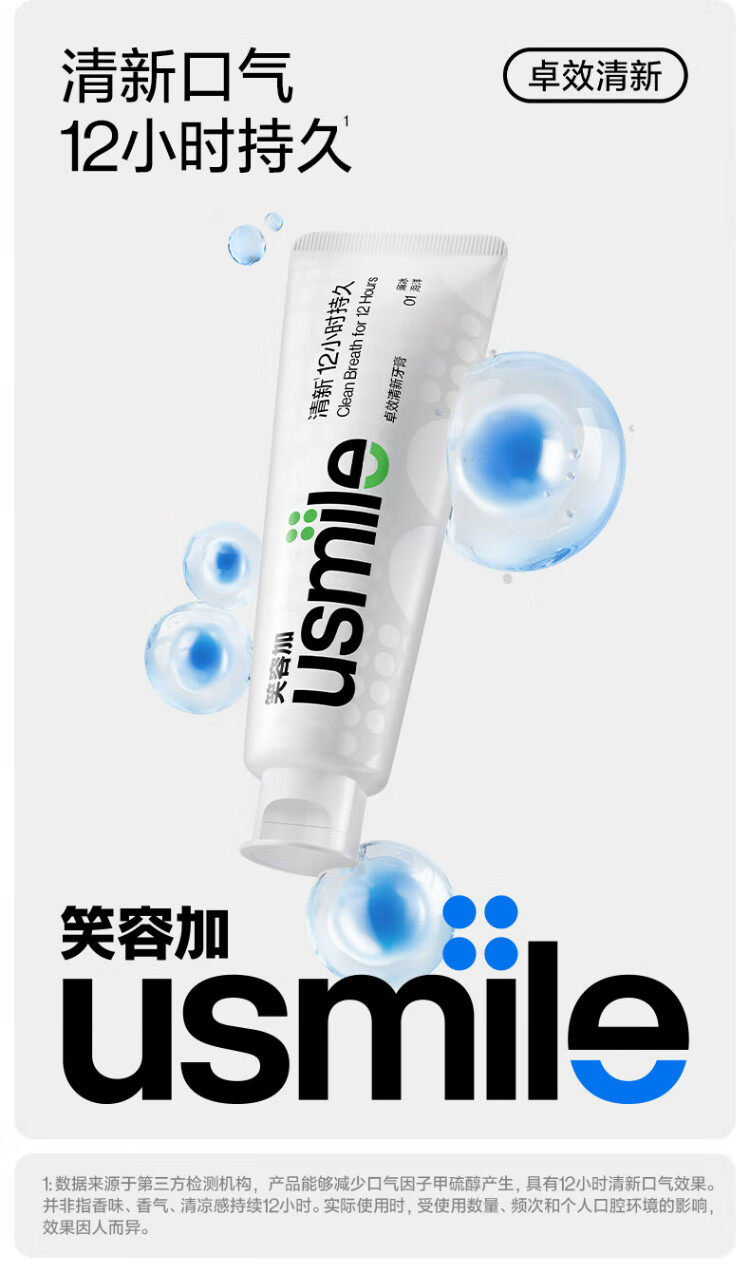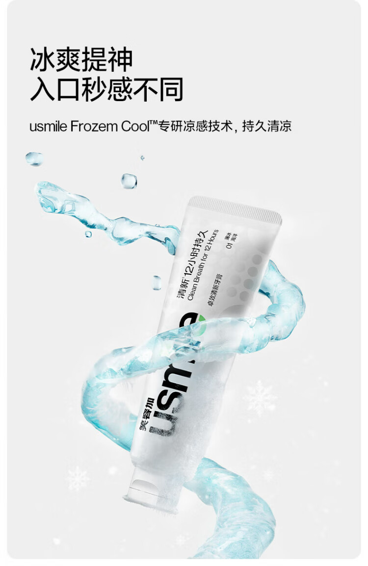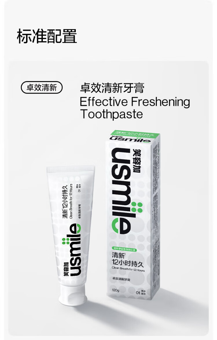 Usmile smile plus effective fresh toothpaste fresh breath anti-yellowing family size men and women 120g/tube thin ice ocean fresh