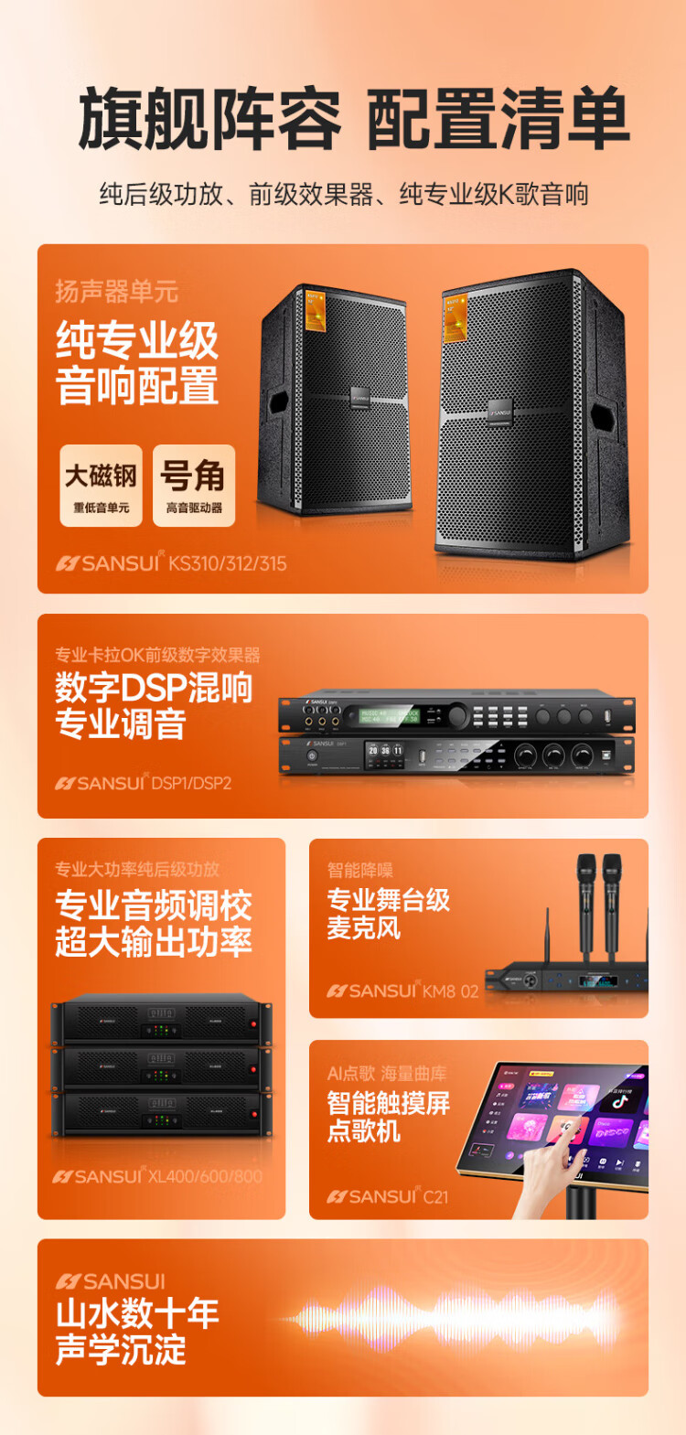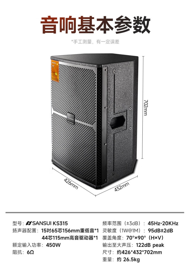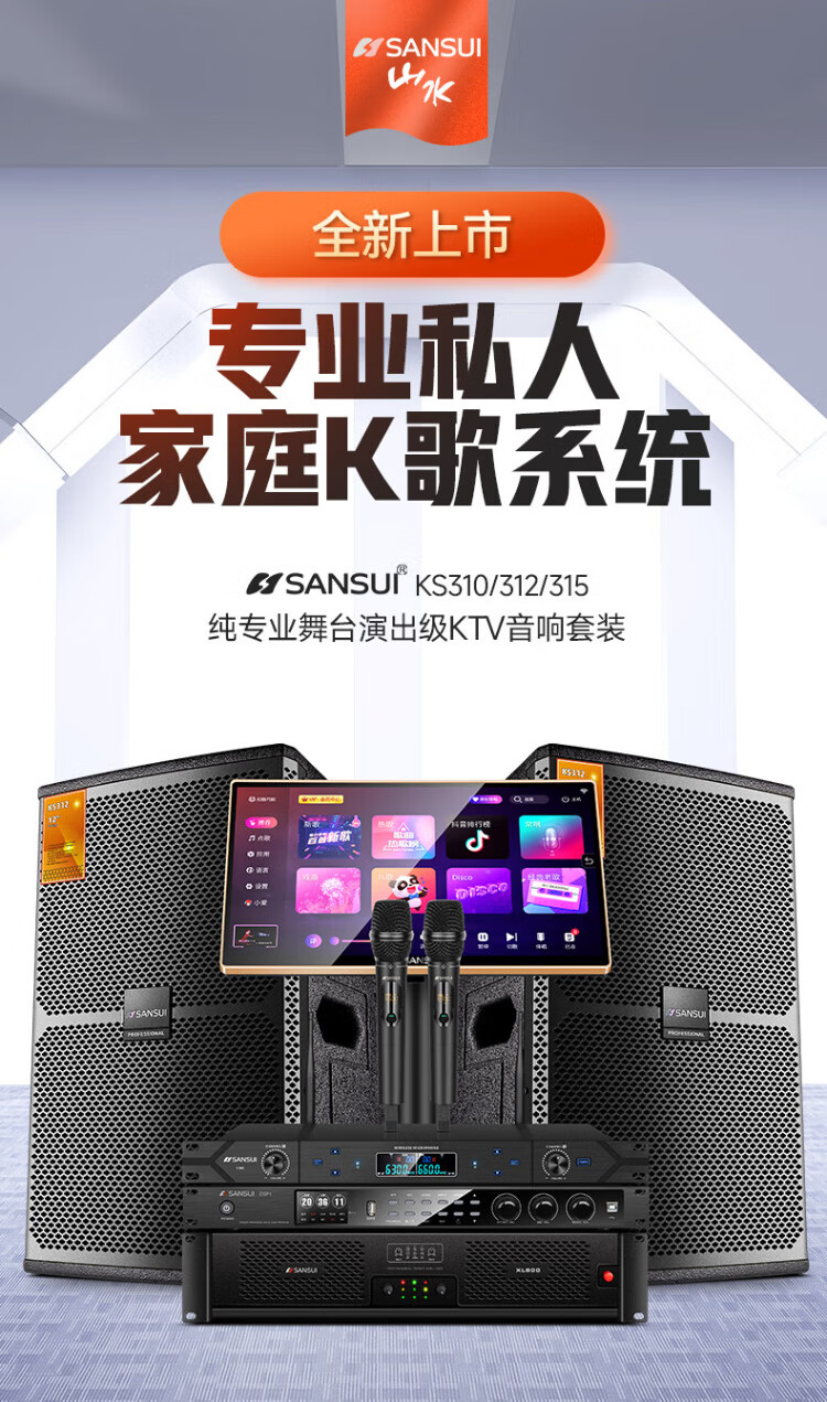 SANSUI KS315 home ktv audio set, power amplifier, karaoke machine, professional ktv singing complete set of equipment, karaoke speaker, stage performance, conference room speaker, 15-inch professional box + power amplifier + mixer + microphone