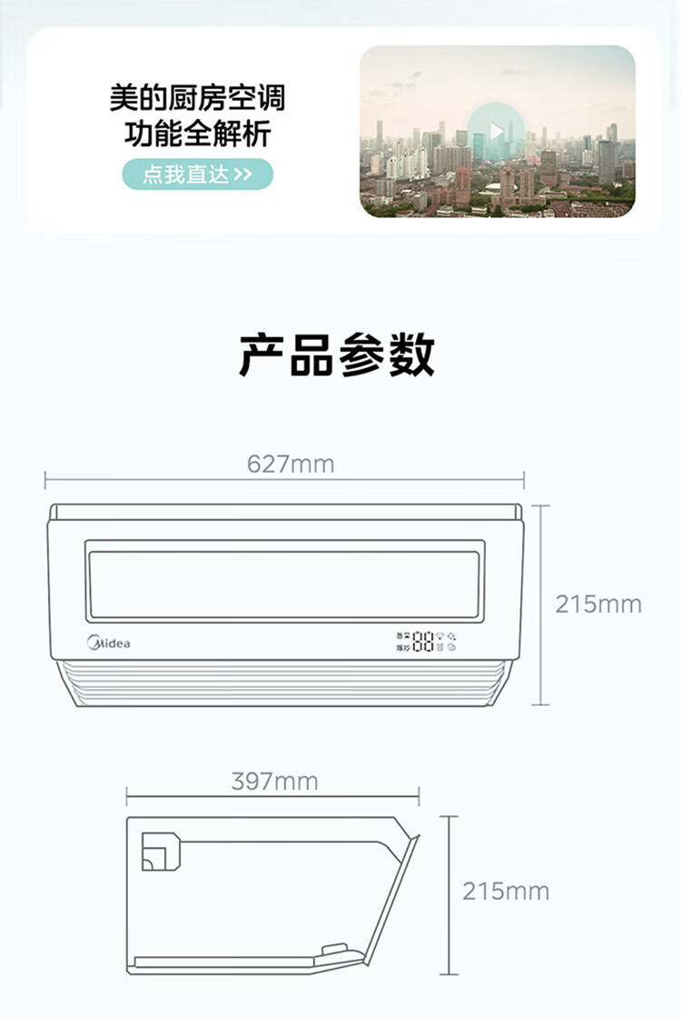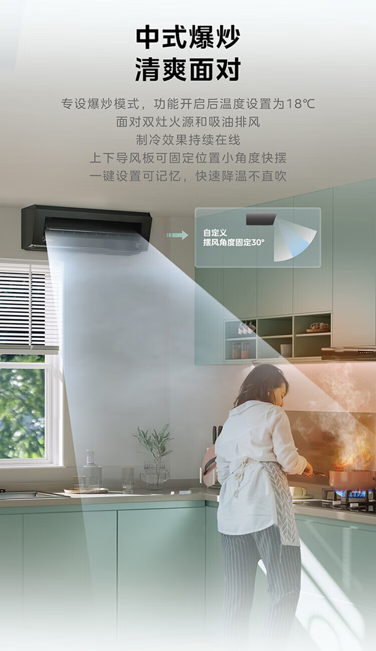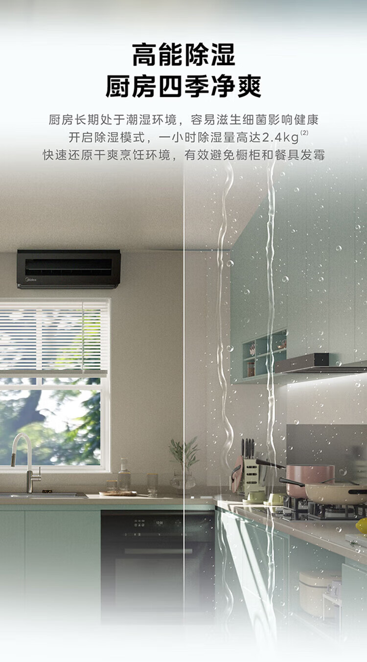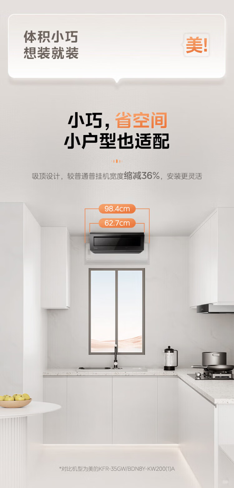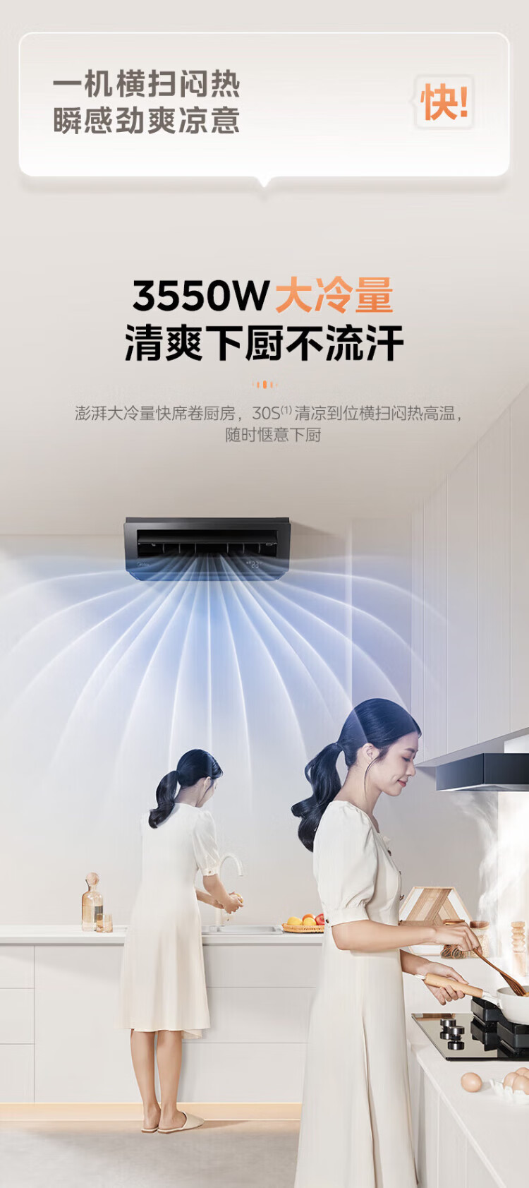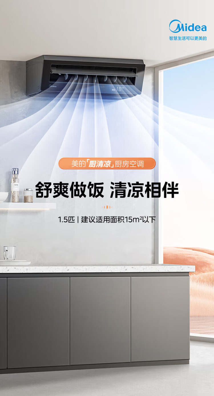 Midea 1.5 HP kitchen air conditioner, small cool square, special air conditioner for kitchen, new level energy efficiency, frequency conversion, energy saving, electricity saving, quick cooling, anti-oil fume, easy installation package, kitchen air conditioner, large 1.5 HP, top type XD200, white model