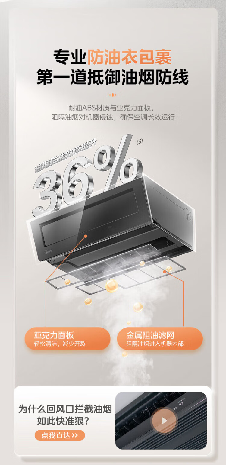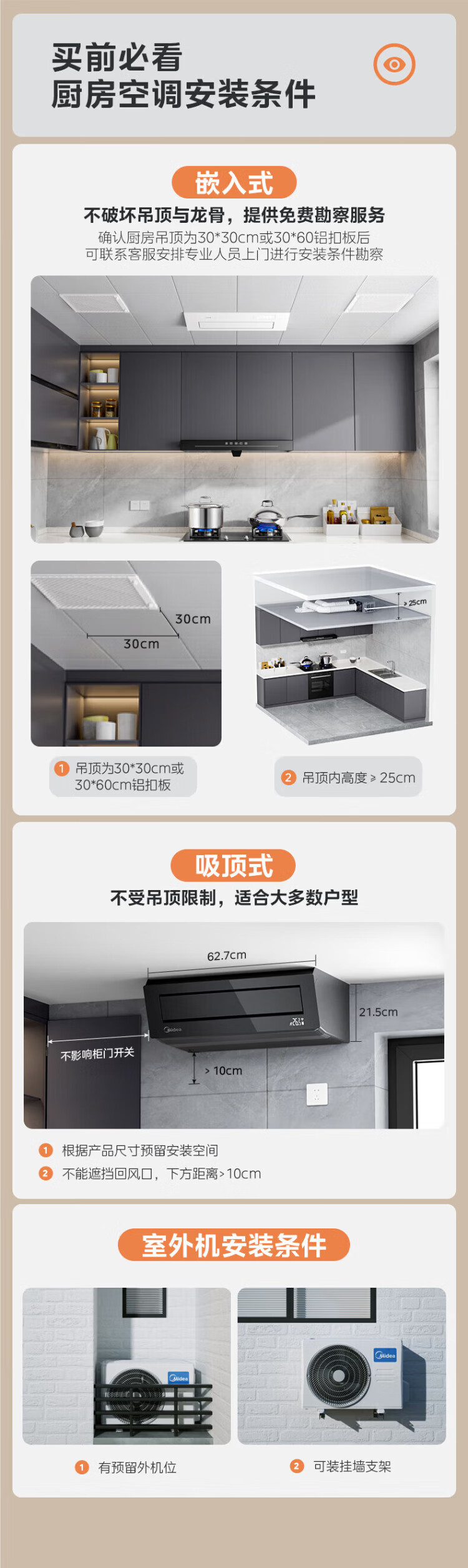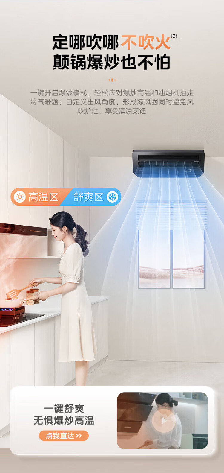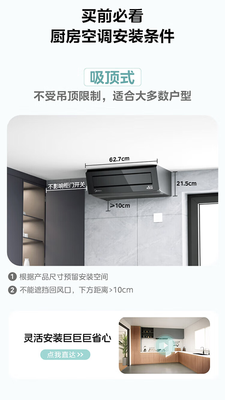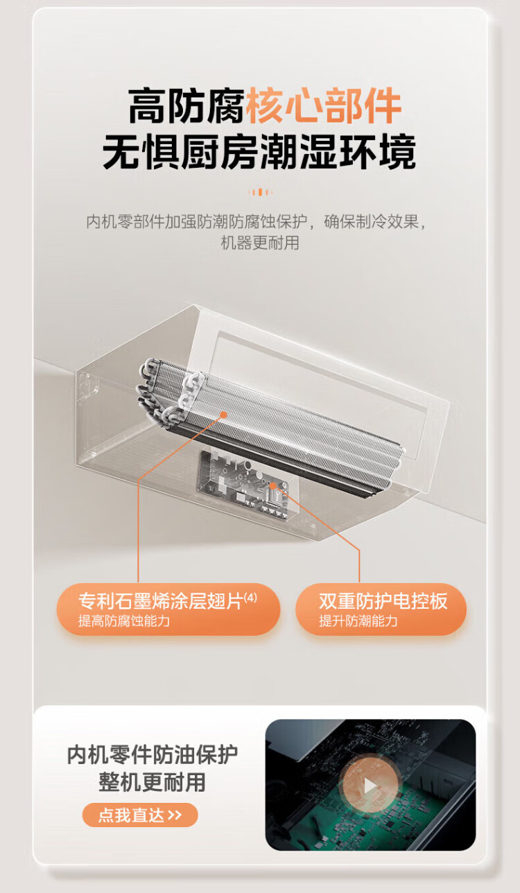 Midea 1.5 HP kitchen air conditioner, small cool square, special air conditioner for kitchen, new level energy efficiency, frequency conversion, energy saving, electricity saving, quick cooling, anti-oil fume, easy installation package, kitchen air conditioner, large 1.5 HP, top type XD200, white model