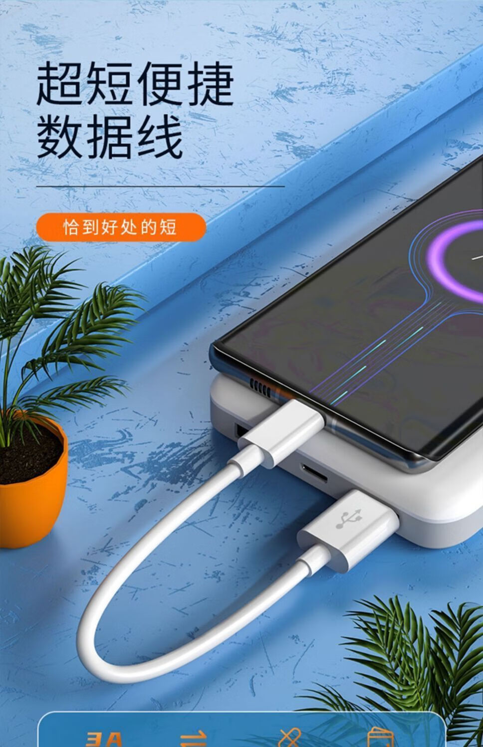 Maixian type-c data cable 6A fast charging power bank ultra short cable 25cm short portable mini charging cable for business trip portable car suitable for Huawei Honor vivo Xiaomi oppo 1 pack (6A super fast charging) Typec 25cm