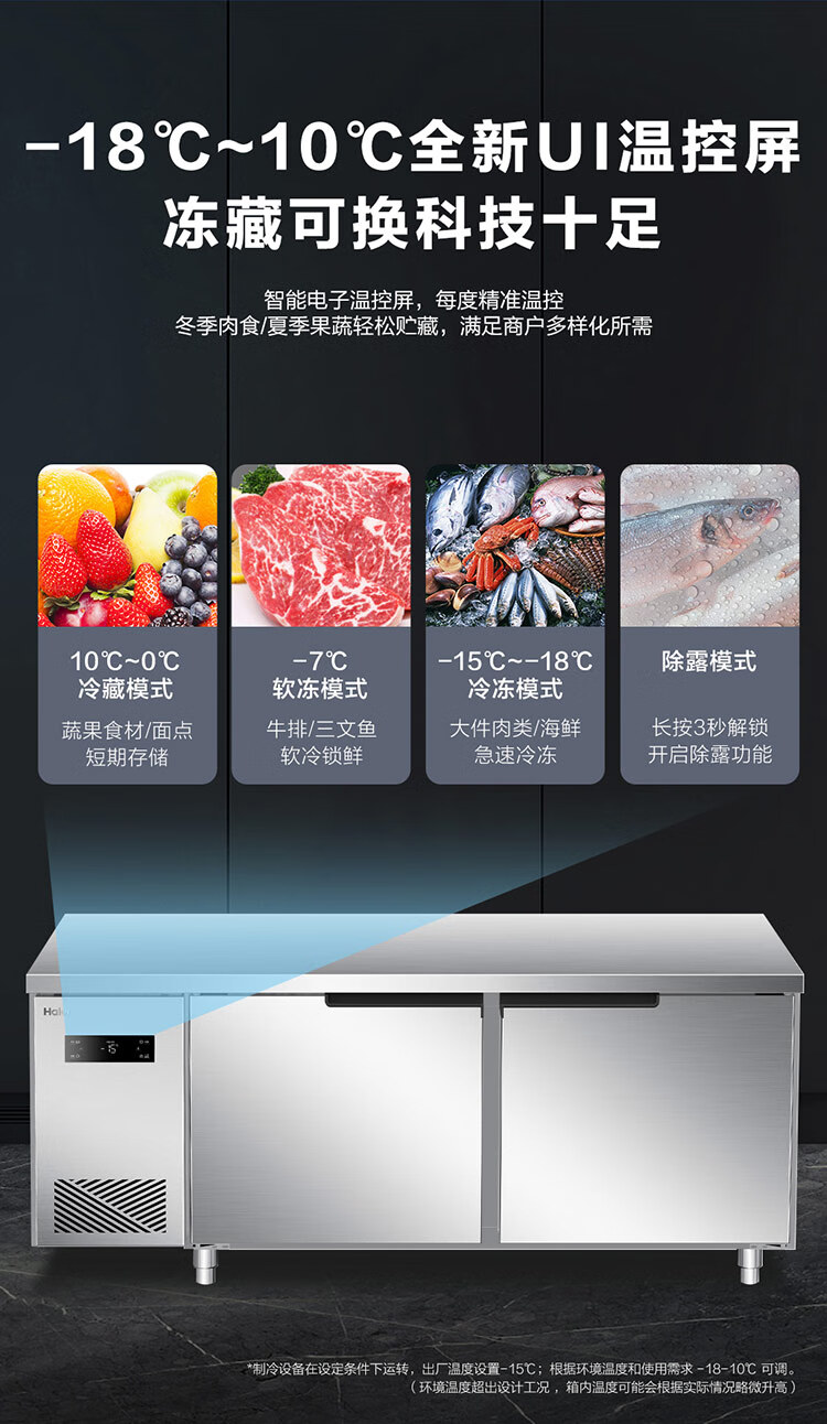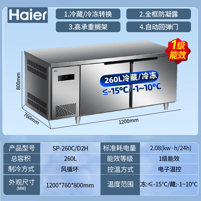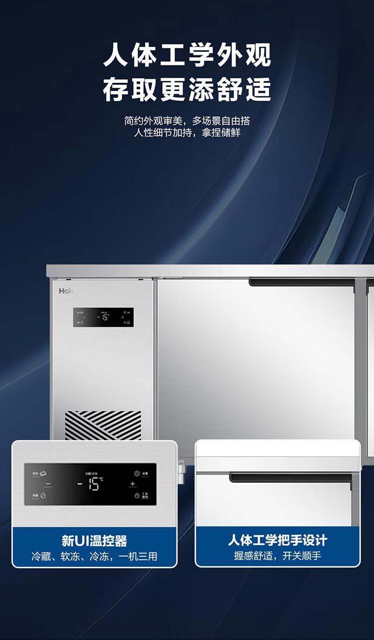 Haier Freezer Commercial Workbench Freezer Air Circulation Operation Table Refrigerator Cabinet Milk Tea Shop Water Bar Kitchen Cabinet Fresh Meat Quick Freezer Cabinet Stainless Steel Fresh Refrigerator 1.8 Meters Air Circulation Refrigeration Freezing First-Class Energy Efficiency Energy Saving